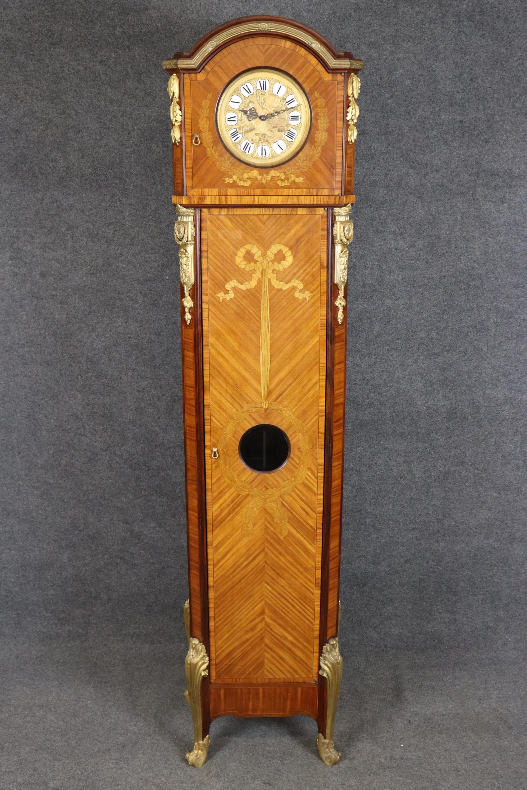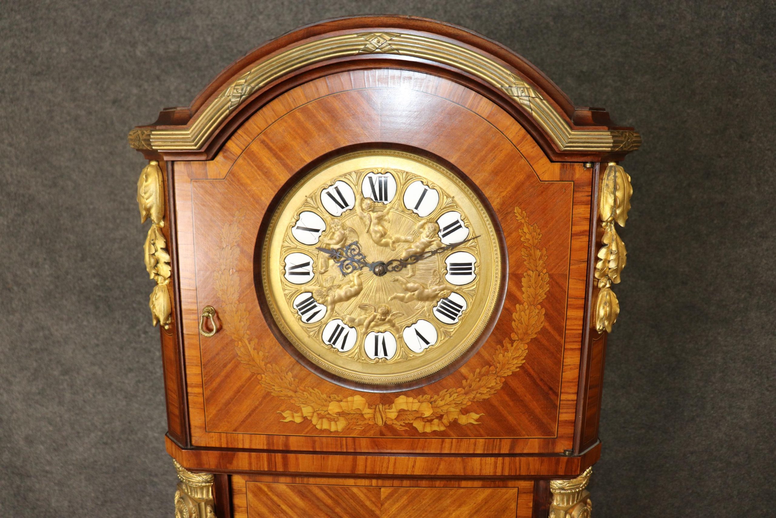 French Louis XV Style Bronze Ormolu Mounted Tall Case Clock Manner of Zwiener, Antique Clock