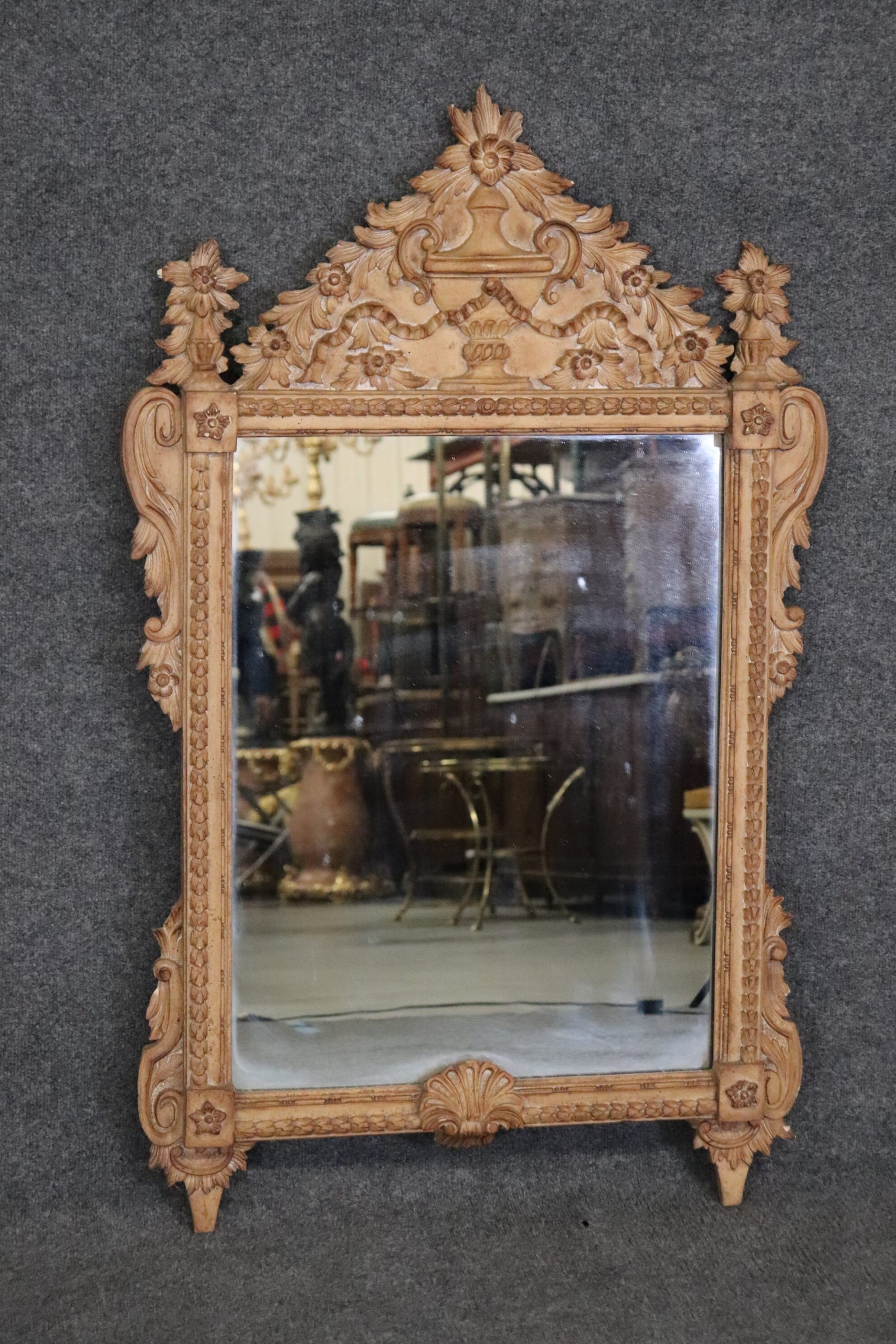 This RARE vintage Louis XV style carved accent wall hanging mirror is truly a luxurious piece that will bring a sense of luxury and character into your home or place of choosing! If you look at the photos provided, you will see the beautiful and intricate carvings with an intentionally distressed frame. This mirror is perfect for any living room, entryway, bathroom, or bedroom and can be paired with a variety of other styles you may already have in your home! Most mirrors with this amount of carvings are not in this good of condition due to their fragile nature. This piece is bound to bring a sense of character and sophistication into your home or place of choosing all while capturing a piece of history with every glance. The mirror is in good vintage condition with light surface scratches and minor chips. The mirror is in great condition considering age and has no significant imperfections to note.