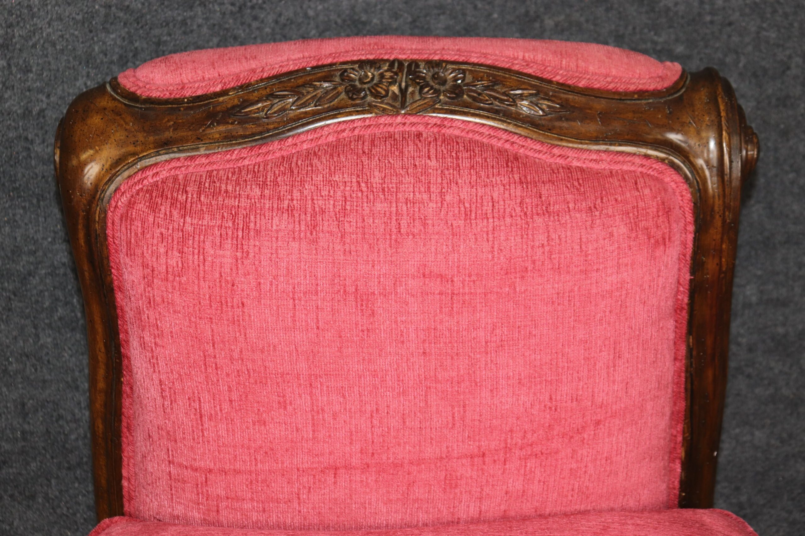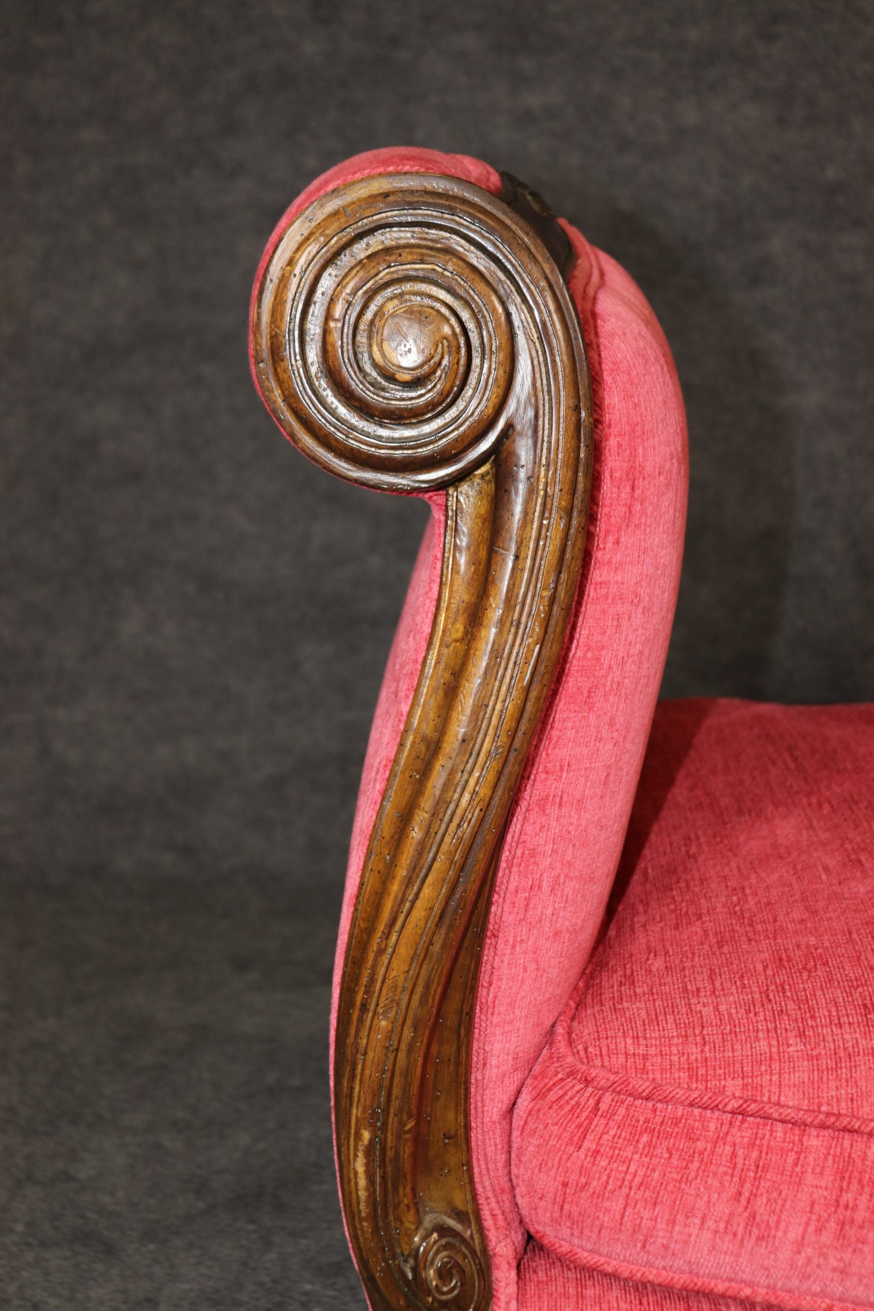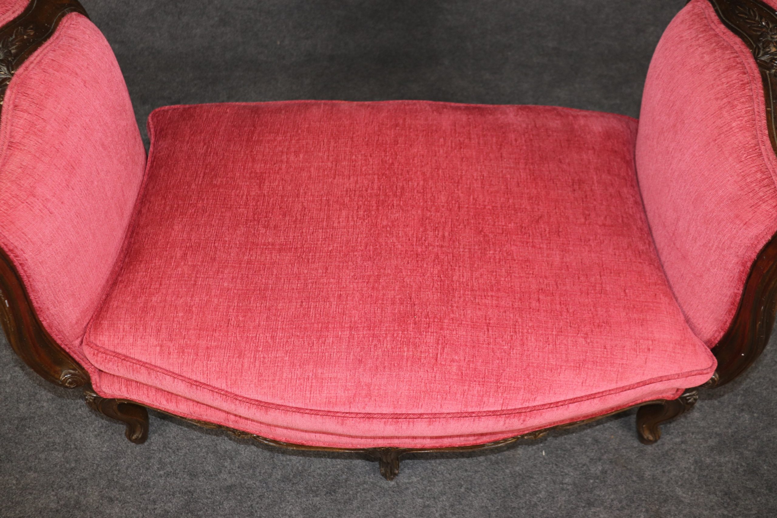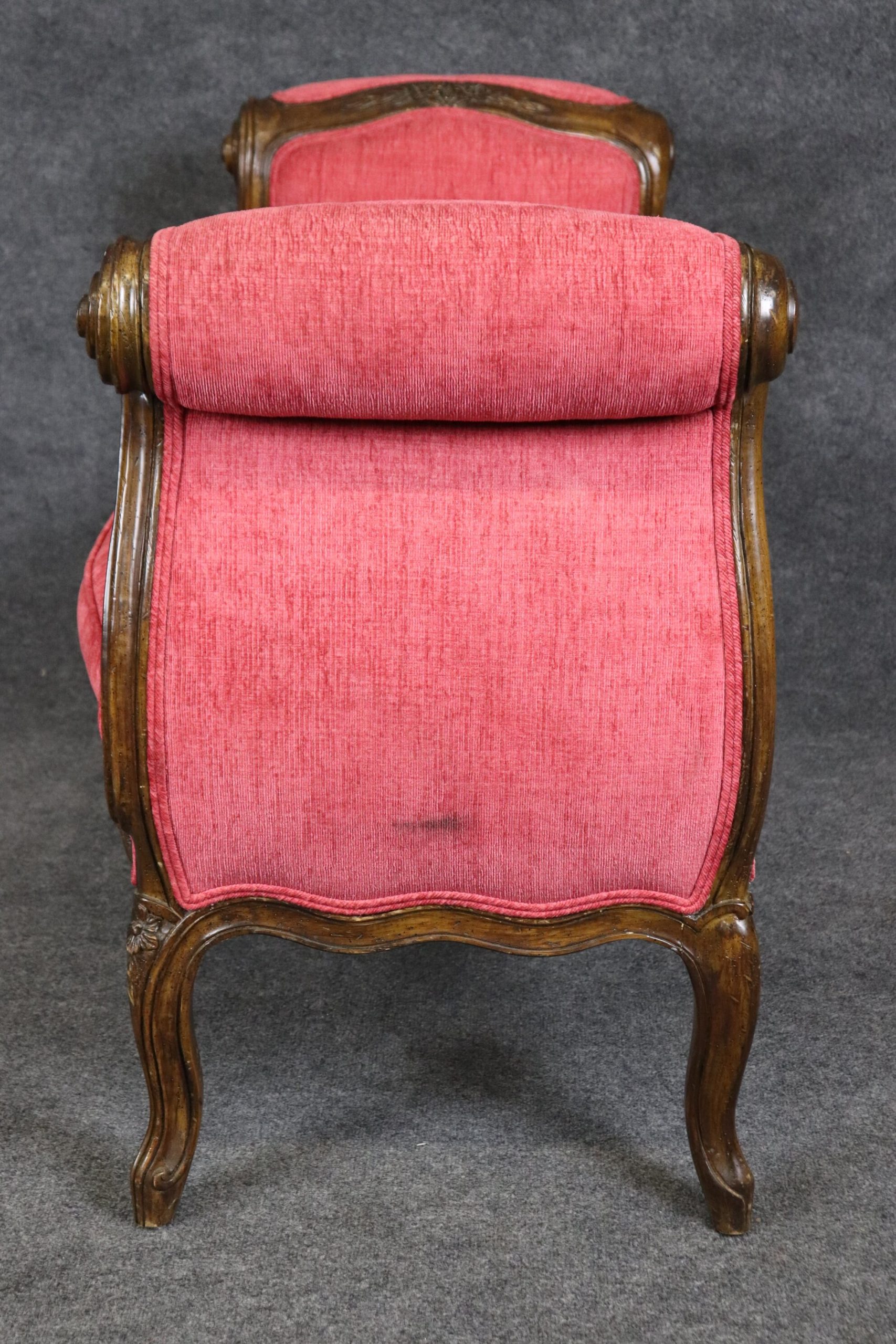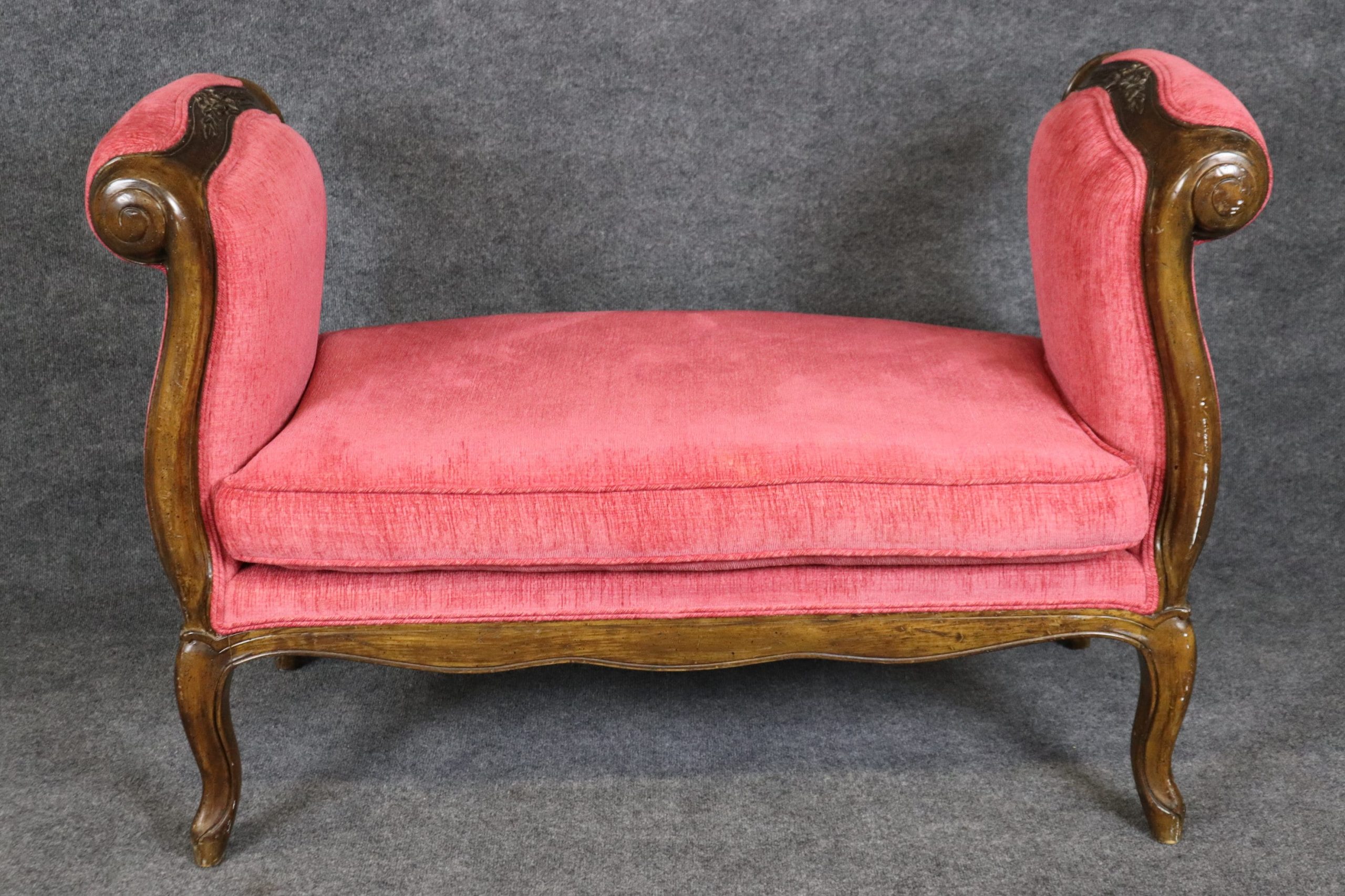 This vintage Country French Louis XV style window bench is a high quality piece! If you look at the photos provided, you can see the luxurious burgundy upholstery. This window bench will add a nice sense of luxury into your living room, bedroom, office or other place of your choosing! Antique furniture and vintage pieces have stood the test of time and this bench is no exception! With its quality materials and great craftsmanship this piece is bound to last you and your family for many years to come. The bench is in good vintage condition with light surface scratches to frame and minor finish loss, as to be expected for a bench from the 1970’s.