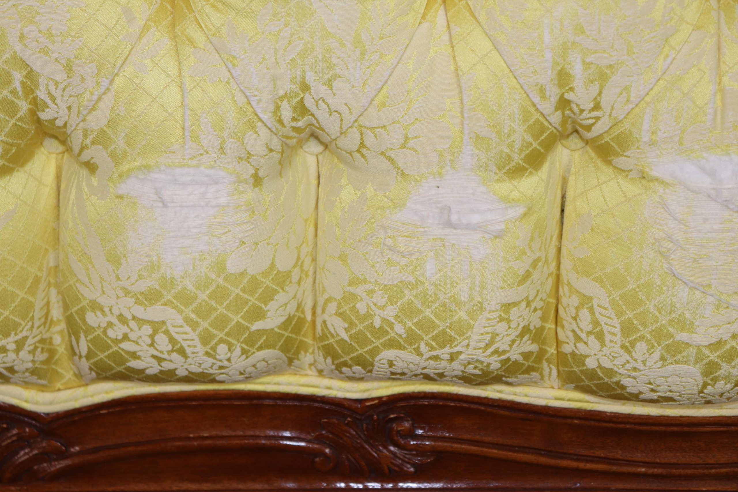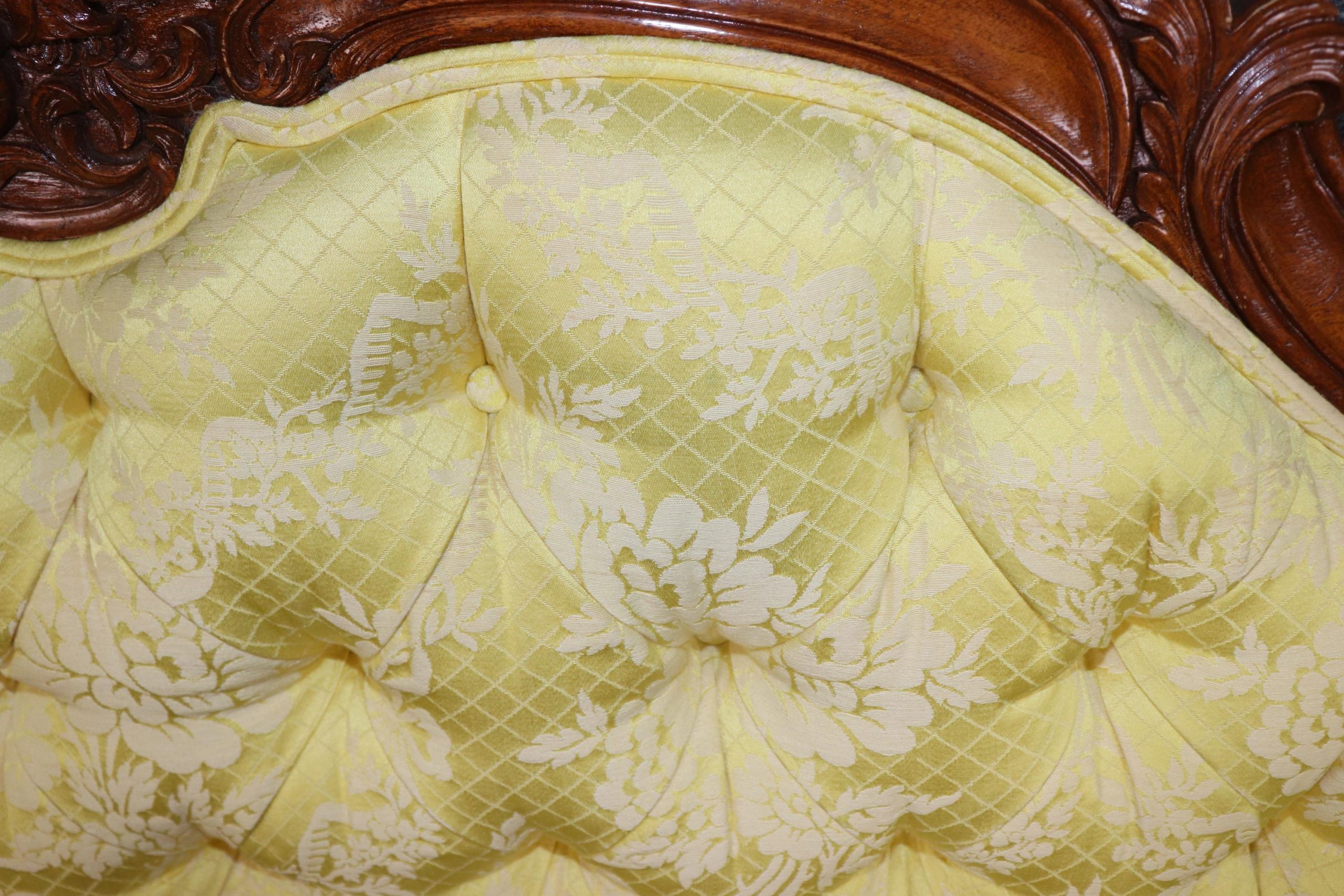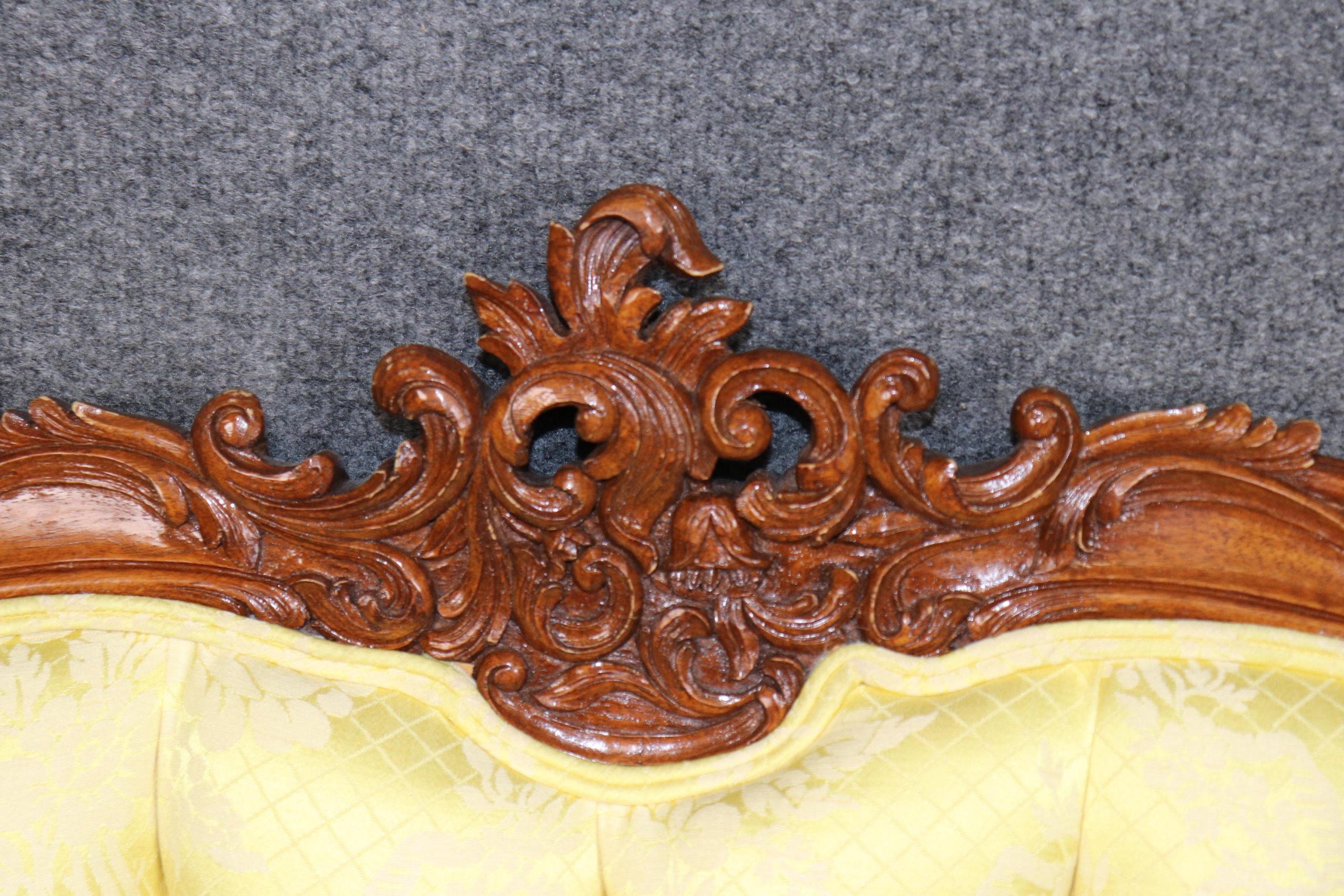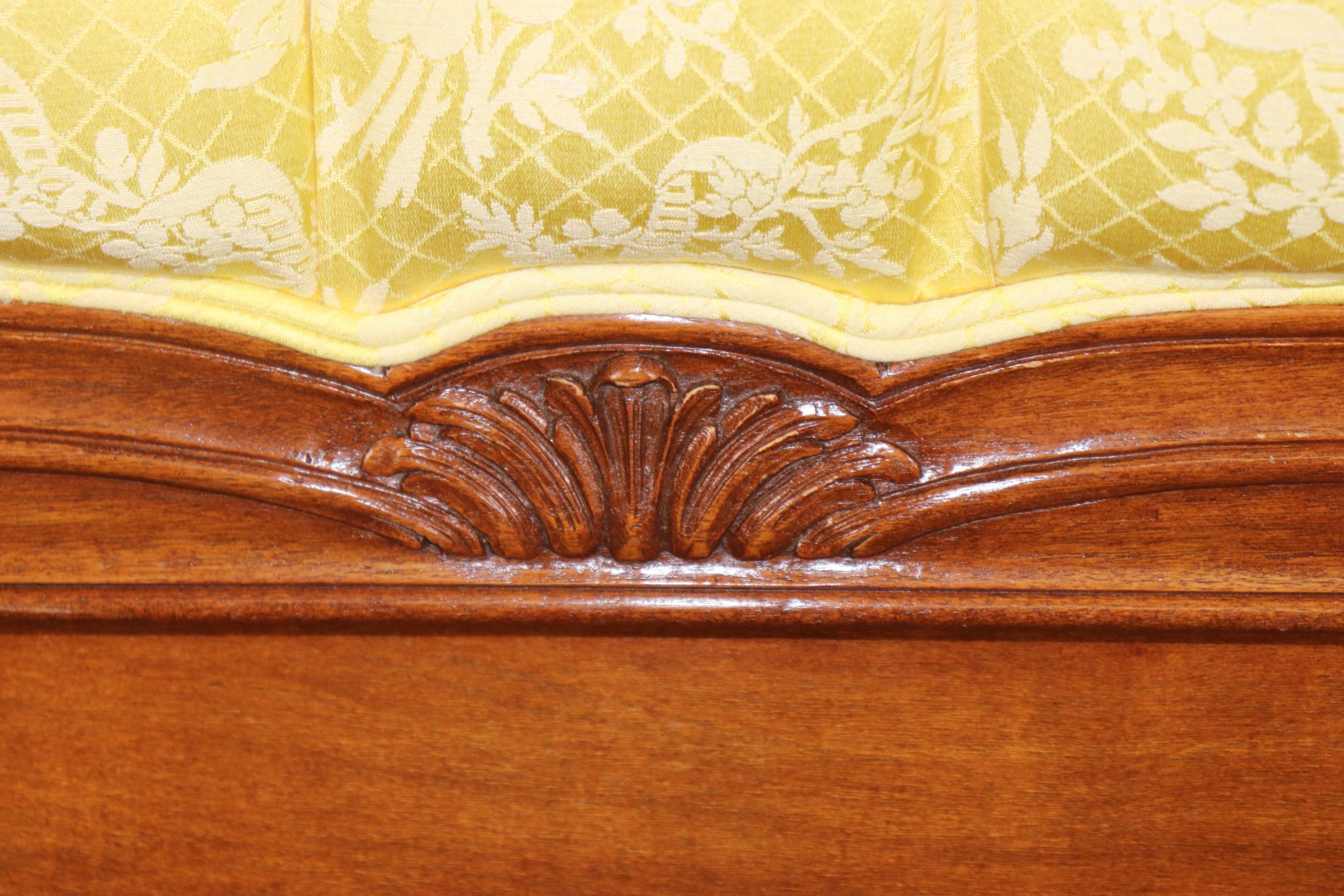 This vintage French Louis XV style carved upholstered headboard is made of the highest quality! If you look at the photos provided you can see the sophisticated upholstery. This piece is perfect for any bedroom or guest room as it can go with a variety of styles! This piece is will add a sense of luxury into your home and will definitely be a conversation starter! Antique furniture and vintage pieces have stood the test of time and this headboard is no exception! With its quality materials and great craftsmanship this piece is bound to last you and your family for many years to come. The headboard is in good vintage condition with the exception of some light surface scratches and minor imperfections as to be expected with vintage or antique items. The upholstery does show wear, and reupholstery is recommended.