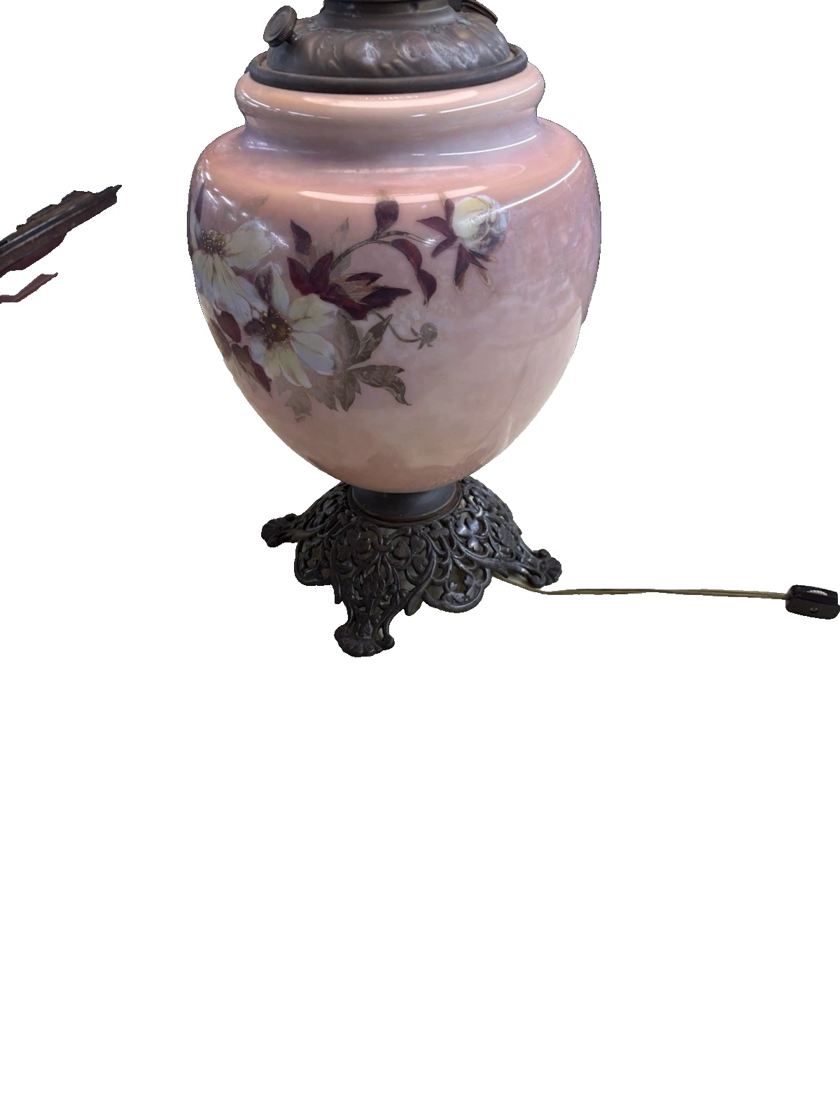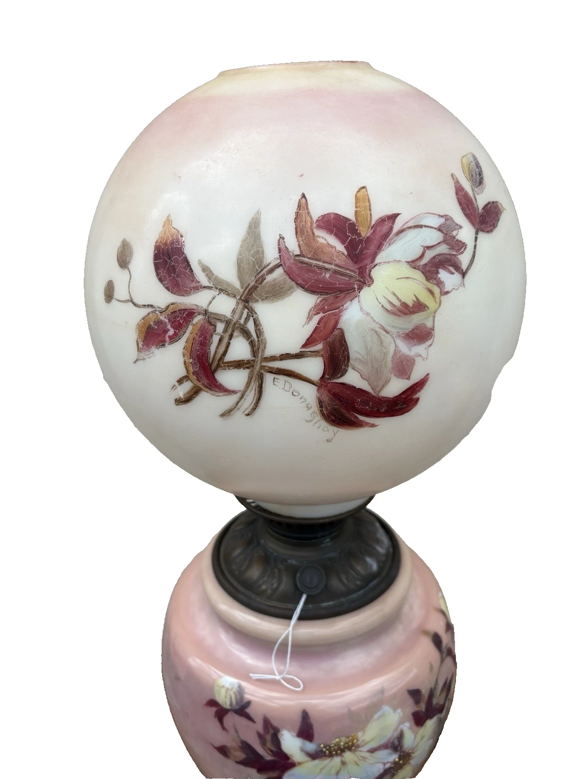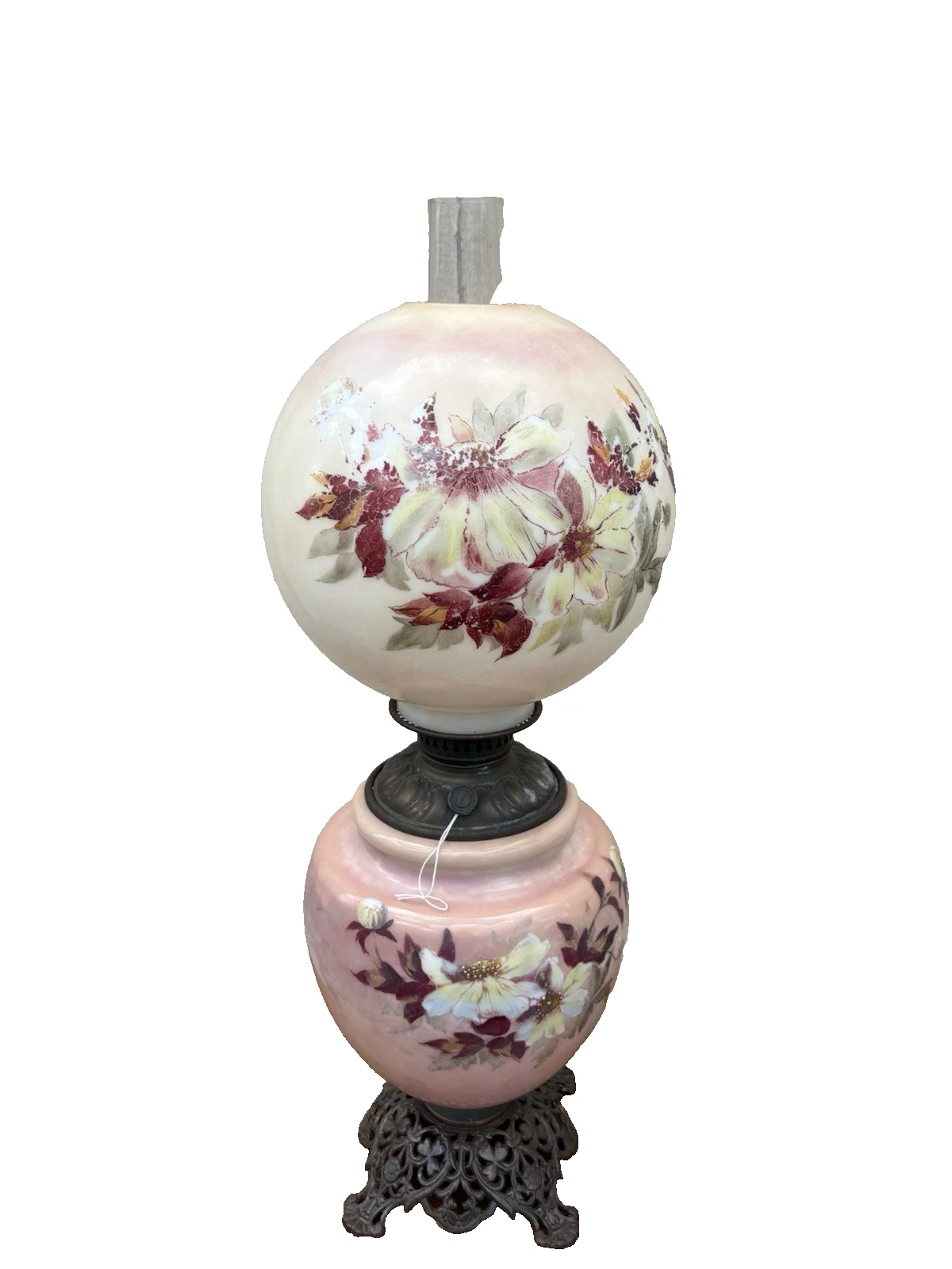 This exquisite Victorian electrified oil lamp, artist signed and crafted circa 1880, evokes a sense of nostalgia with its vibrant multicolor glaze and intricate design. The delicate glass globe showcases charming paintwork, revealing the craftsmanship of a bygone era. As a blend of history and functionality, this lamp not only illuminates a space but also serves as a stunning conversation piece, celebrating the artistry of the 19th century. Its gentle glow brings warmth to any room, making it a perfect addition to your home.