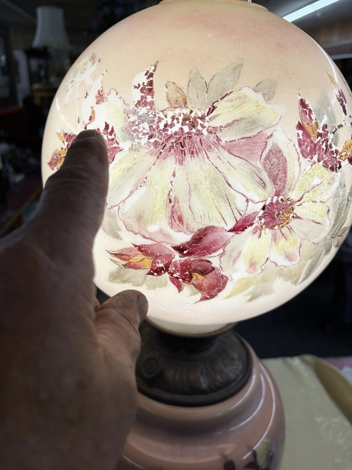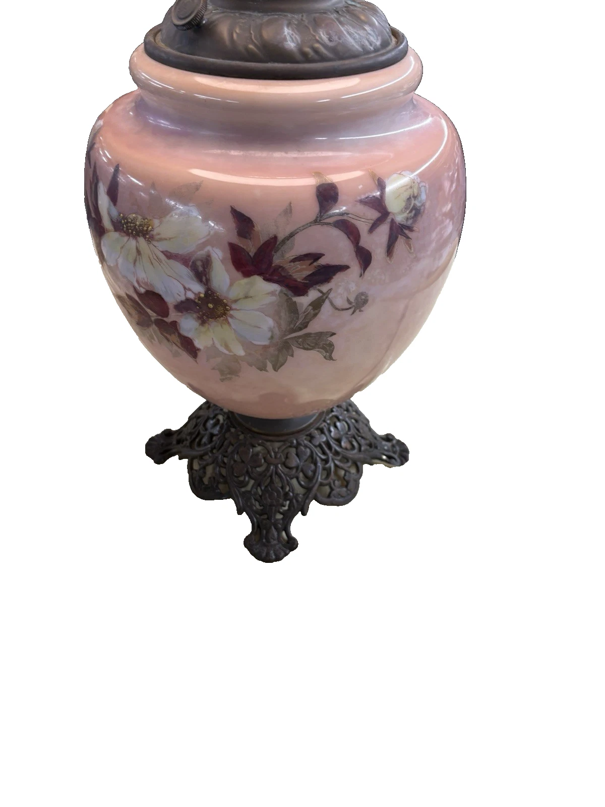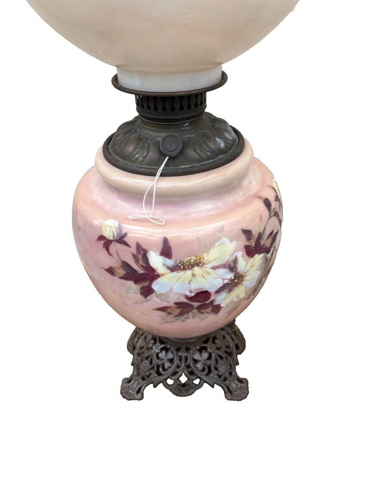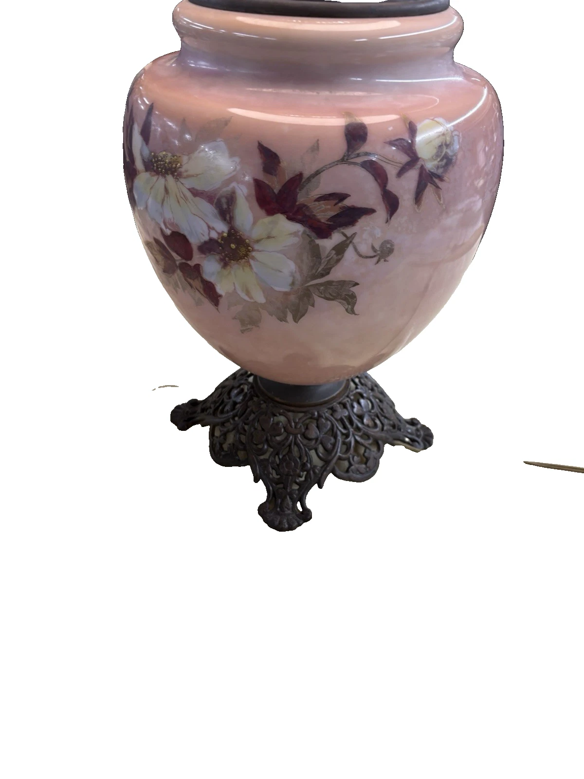 This exquisite Victorian electrified oil lamp, artist signed and crafted circa 1880, evokes a sense of nostalgia with its vibrant multicolor glaze and intricate design. The delicate glass globe showcases charming paintwork, revealing the craftsmanship of a bygone era. As a blend of history and functionality, this lamp not only illuminates a space but also serves as a stunning conversation piece, celebrating the artistry of the 19th century. Its gentle glow brings warmth to any room, making it a perfect addition to your home.