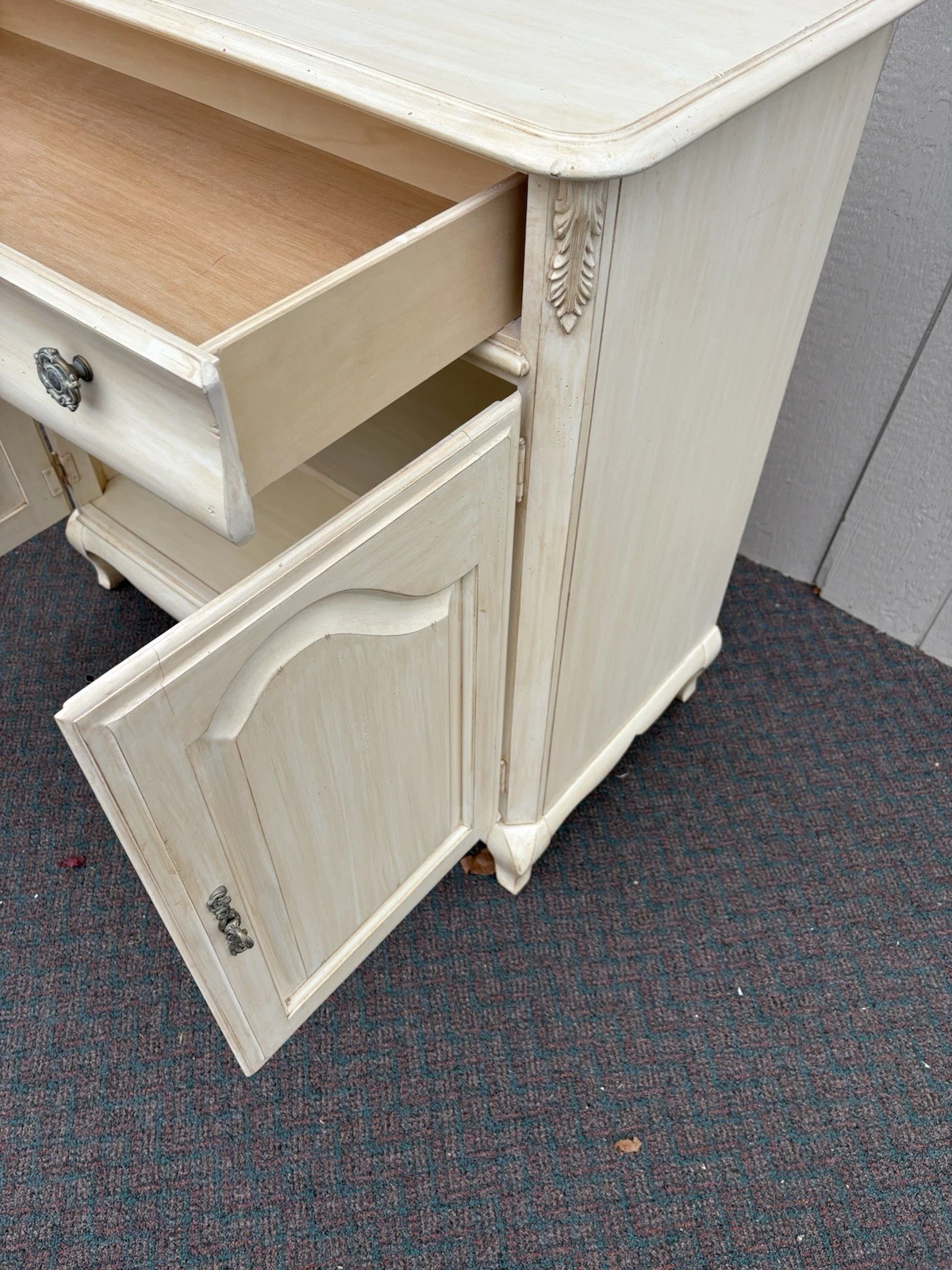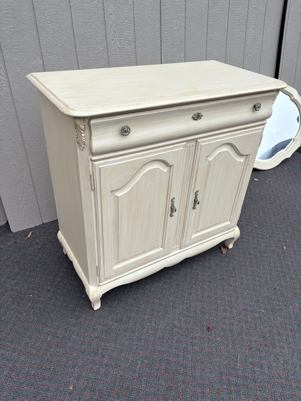 This charming dresser by Greenbaum Furniture beautifully embodies the elegance of French provincial design, making it a timeless addition to any home. Finished in a soft ivory hue, it features a graceful silhouette complemented by a stunning mirror that enhances its vintage appeal. With a single spacious drawer, this piece offers both functionality and style, showcasing the quality craftsmanship that Greenbaum is known for. Perfect for adding a touch of sophistication to your space, it invites you to appreciate its history and artistry.
