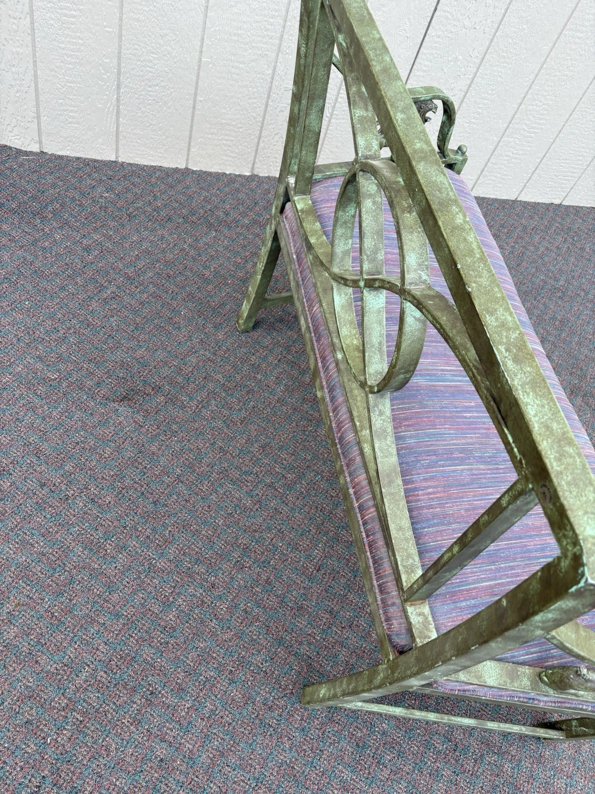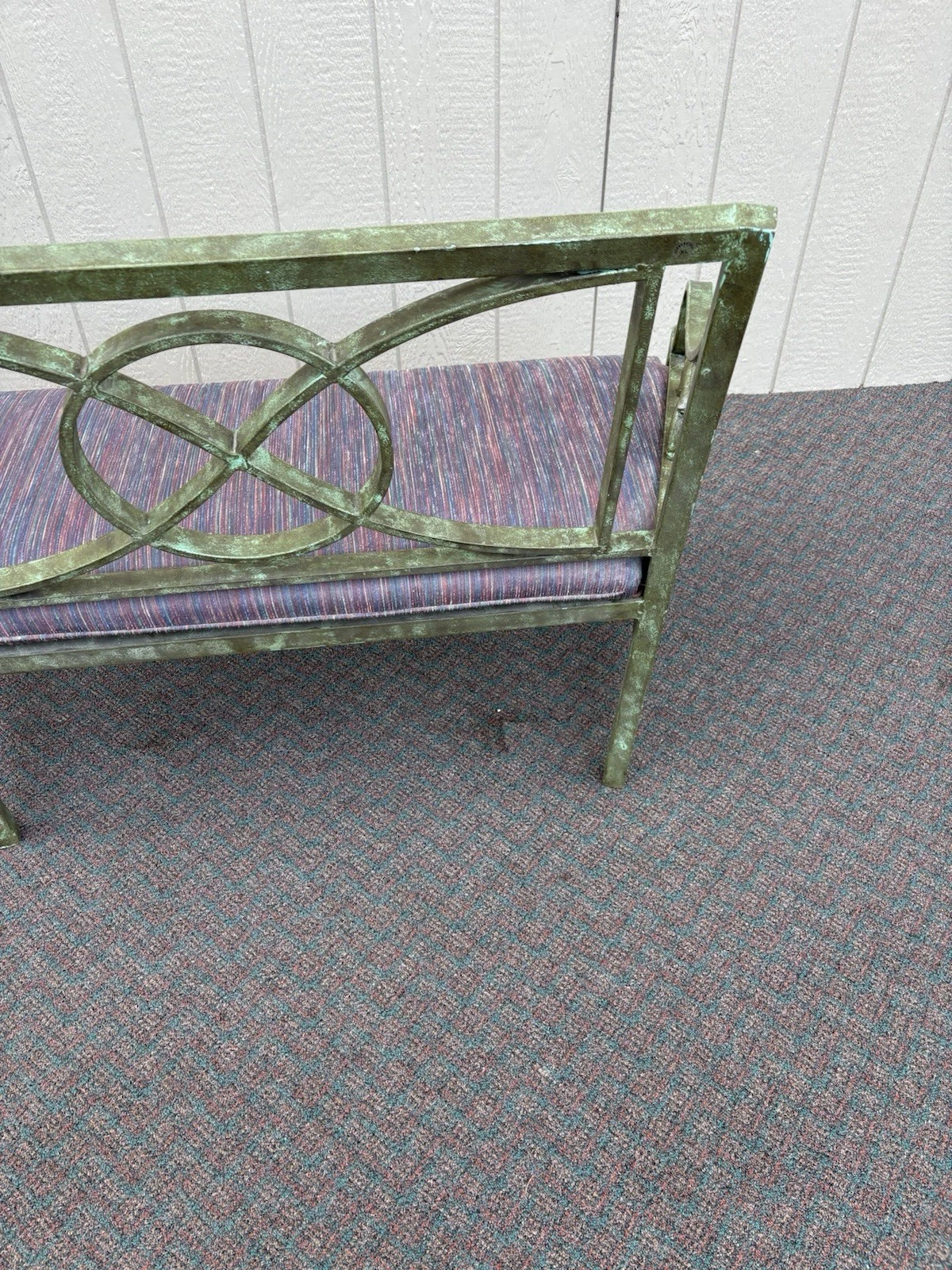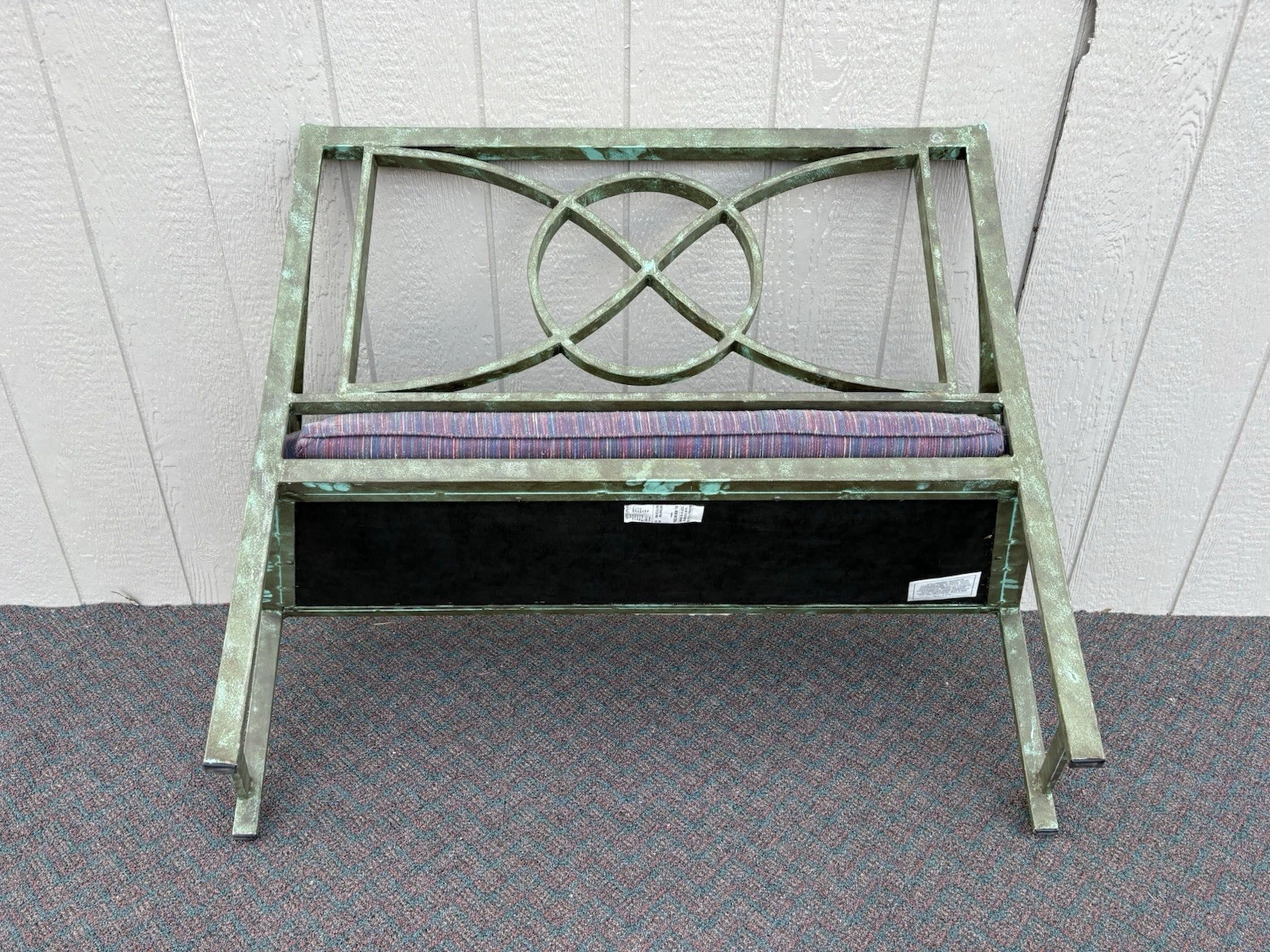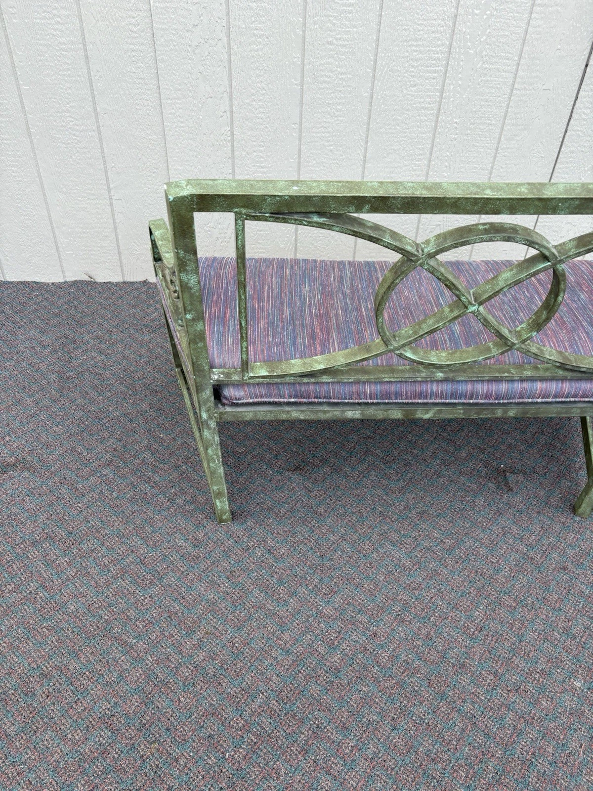 This charming metal settee, crafted in a delightful Victorian style, brings a touch of timeless elegance to any space. Its sturdy construction and vibrant multicolor finish showcase both durability and artistic flair, making it a perfect accent for your garden, porch, or living room. With enough seating for two, it invites cozy conversations and leisurely moments. Each curve and detail reflects the craftsmanship of its era, offering a unique piece that combines functionality with a warm sense of nostalgia. There a small piece of the gryphons tail missing as per pictures.