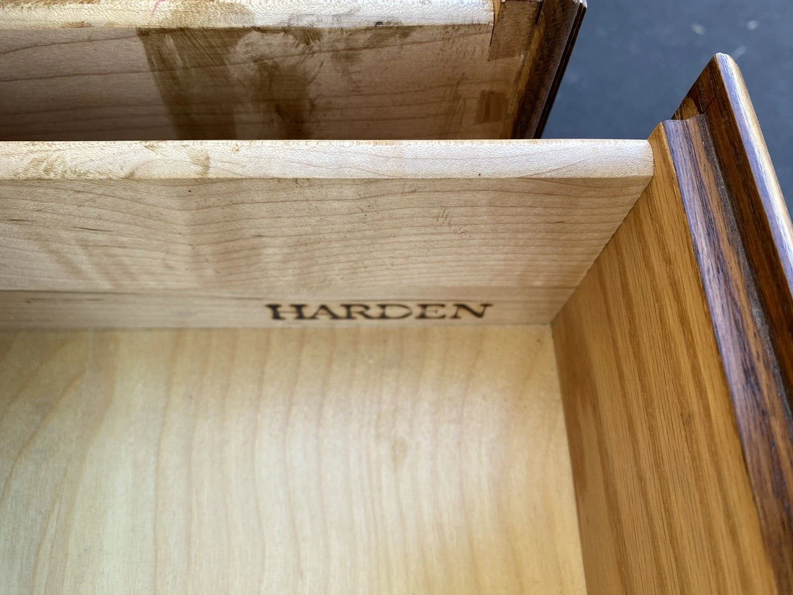 This charming dropside server by Harden Furniture showcases the enduring beauty of solid oak, blending traditional craftsmanship with functional design. With four spacious drawers and a versatile dropside feature, it offers both storage and serving capabilities, making it a perfect addition to your dining or entertaining space. Its warm patina and sturdy construction speak to its quality and history, inviting stories and gatherings for years to come. This piece not only enhances your home but also carries the spirit of family gatherings and shared moments.