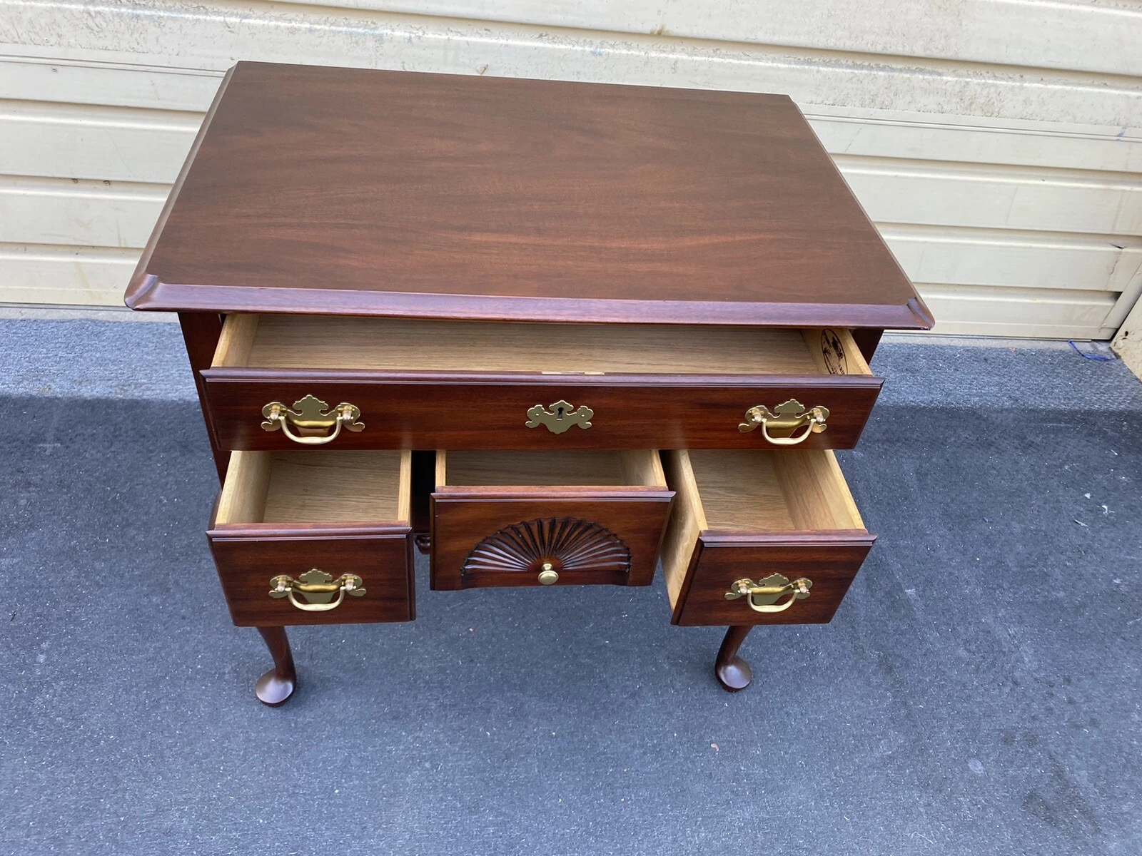This exquisite Henkel Harris Virginia Galleries Low Boy Dresser showcases the timeless elegance of Chippendale design, crafted from rich mahogany that radiates warmth and sophistication. With its gracefully curved lines and four spacious drawers, this piece not only offers functionality but also serves as a stunning accent in any room. The meticulous craftsmanship and attention to detail reflect the storied tradition of American furniture making, making it a cherished addition to your home. Embrace the charm of this well-loved dresser, a true testament to quality and style that will be treasured for generations.