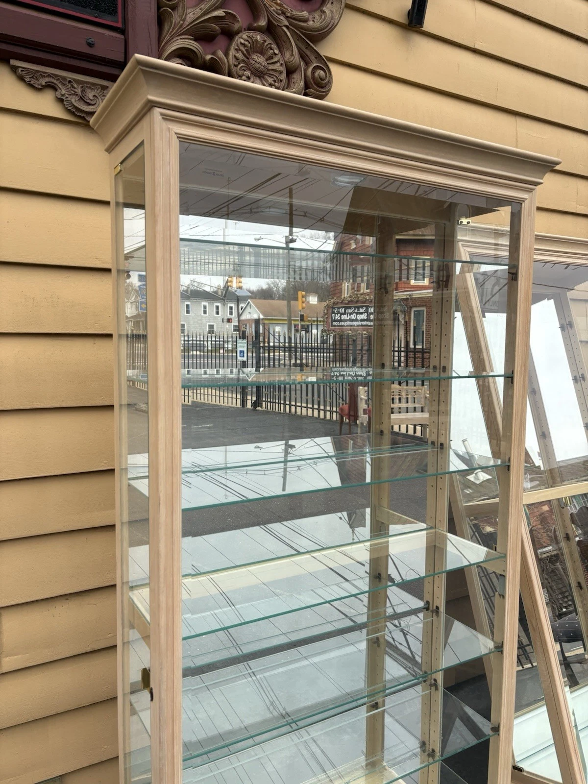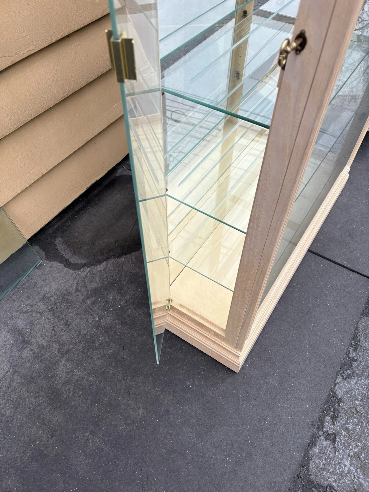 This elegant Howard Miller curio cabinet is a beautiful blend of functionality and artistry, perfect for showcasing your cherished collectibles. Featuring six exquisite plate glass shelves, it allows light to illuminate your treasures while the traditional design adds a timeless charm to any room. Handmade in the United States, this cabinet speaks to the craftsmanship of its era, making it not just a storage solution but a statement piece that invites warmth and nostalgia into your home. With its graceful silhouette and inviting presence, it’s sure to become a treasured part of your family’s story. We do have a second matching curio also available for sale on ebay as per pictures.