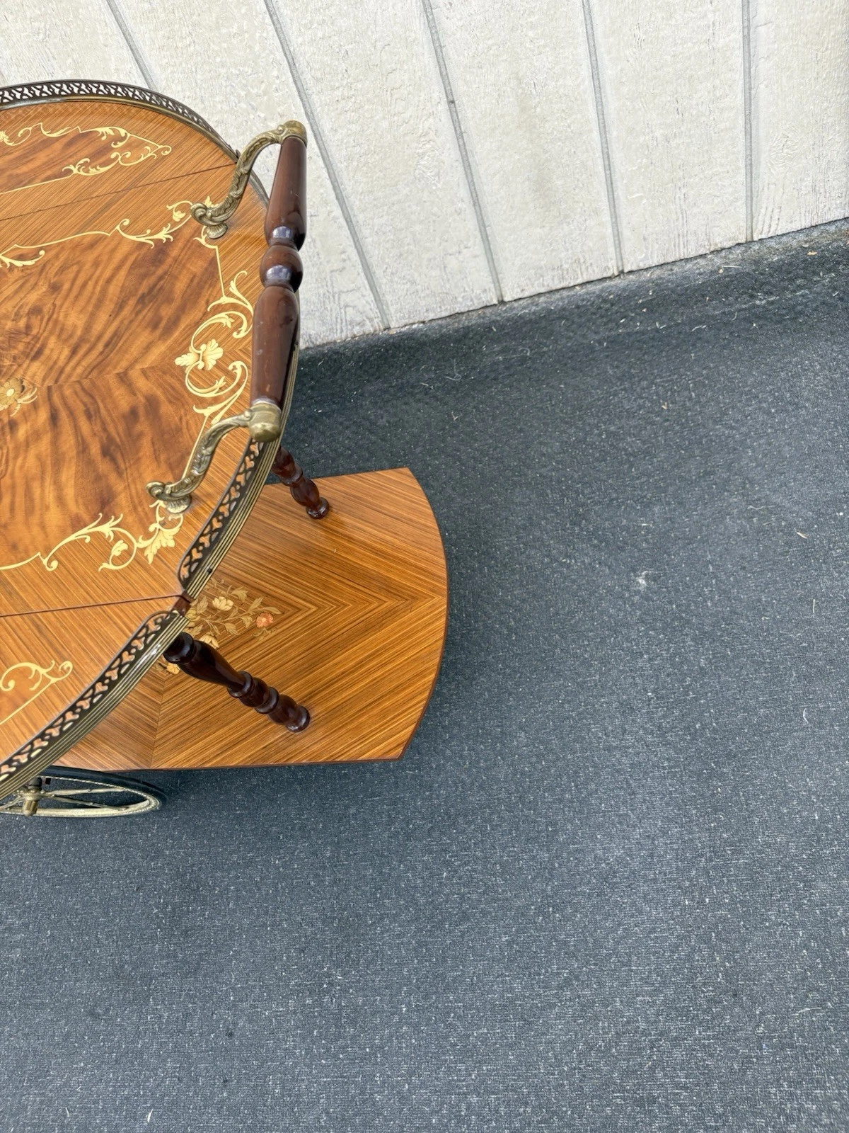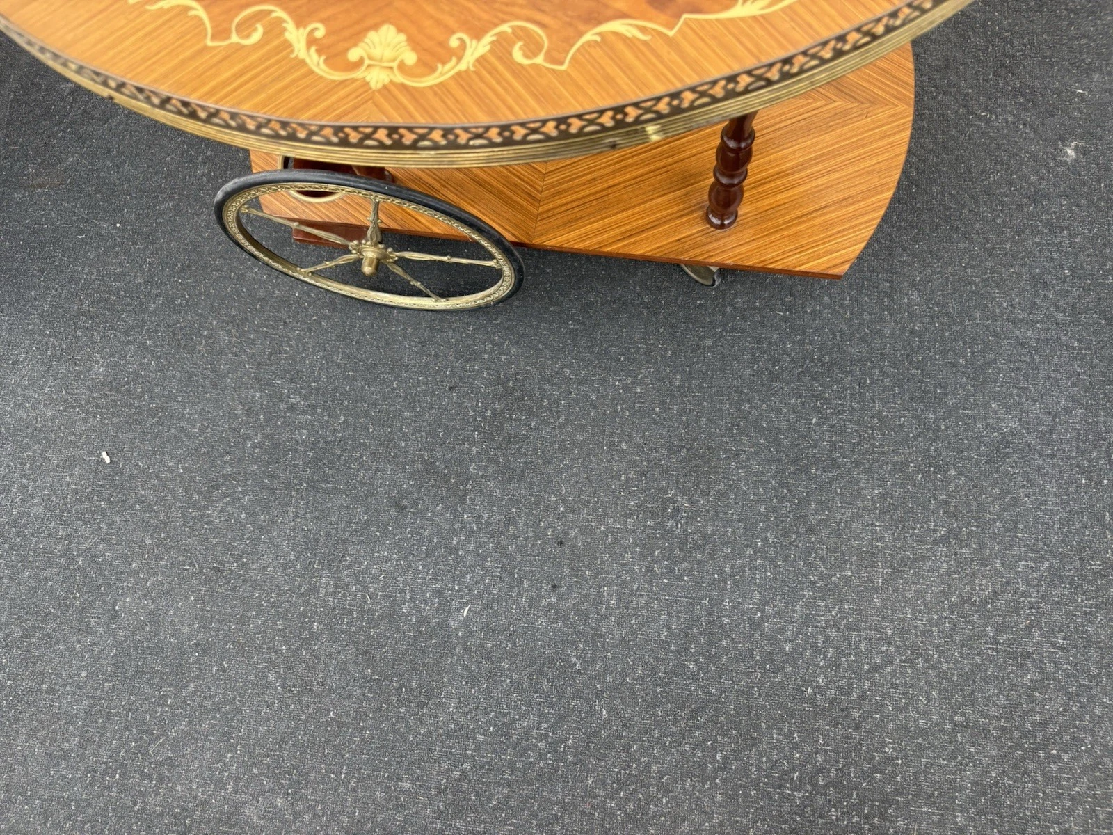 This charming Italian inlaid bar cart exemplifies exquisite craftsmanship and timeless elegance, making it a delightful addition to any home. With its intricate inlay work and multi-colored design, this piece not only serves as a functional liquor cabinet but also as a stunning focal point for entertaining guests. Its sturdy construction ensures it will roll smoothly wherever you need it, while the unique style reflects the rich heritage of Italian artistry. Perfect for serving tea or cocktails, this bar cart seamlessly blends practicality with an undeniable sense of sophistication.