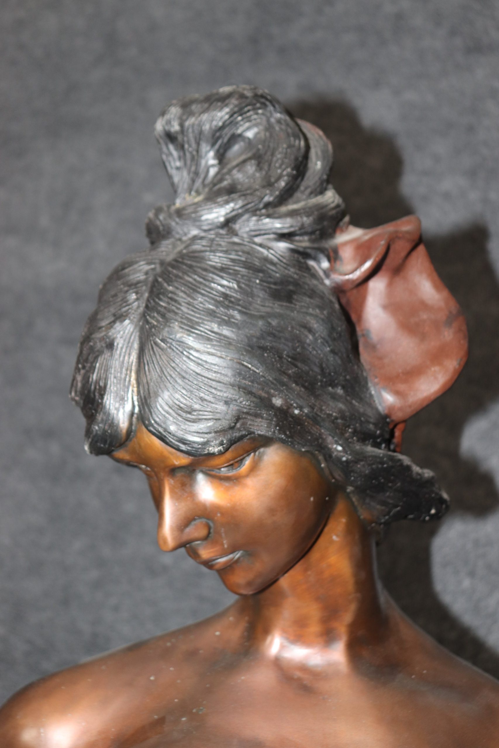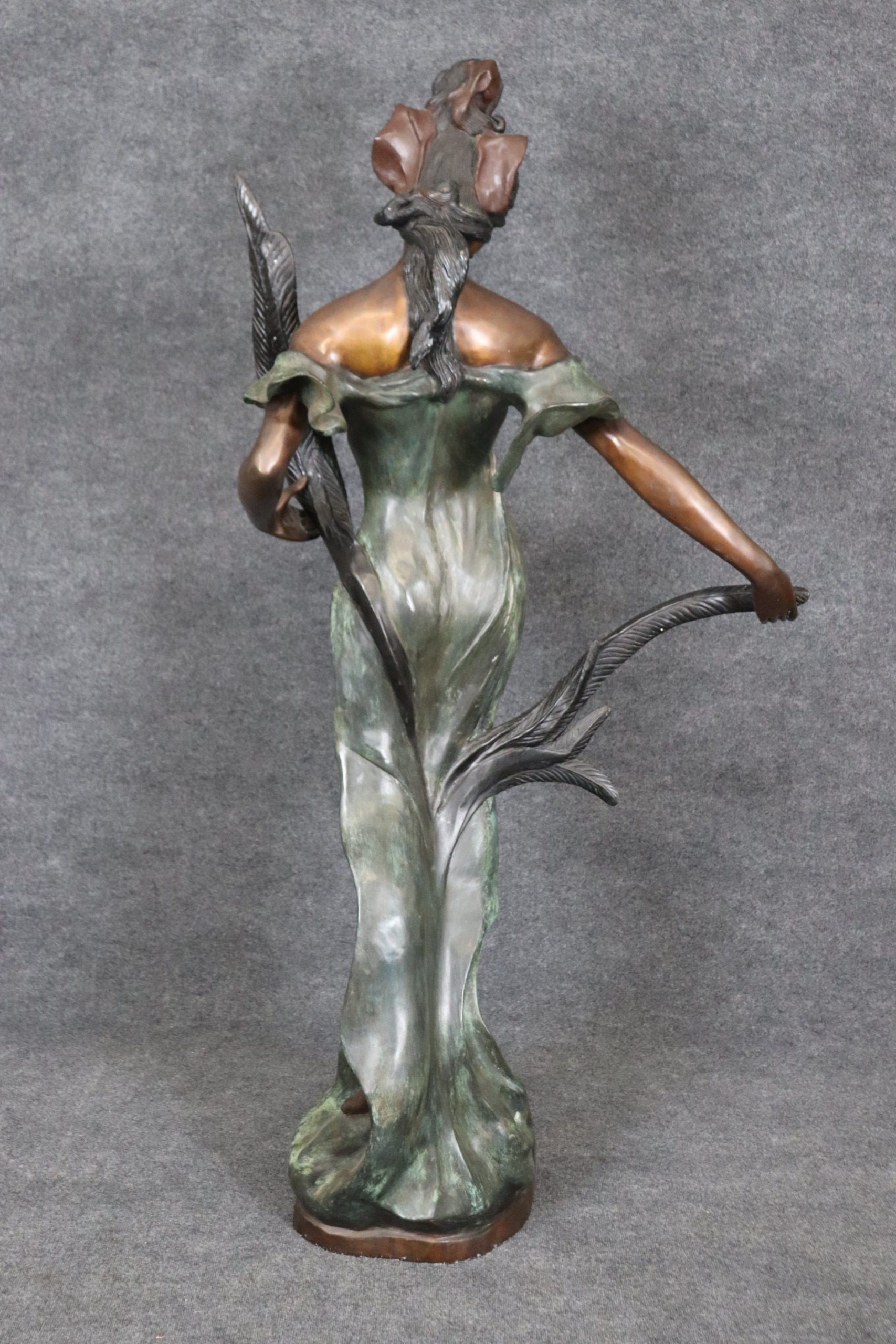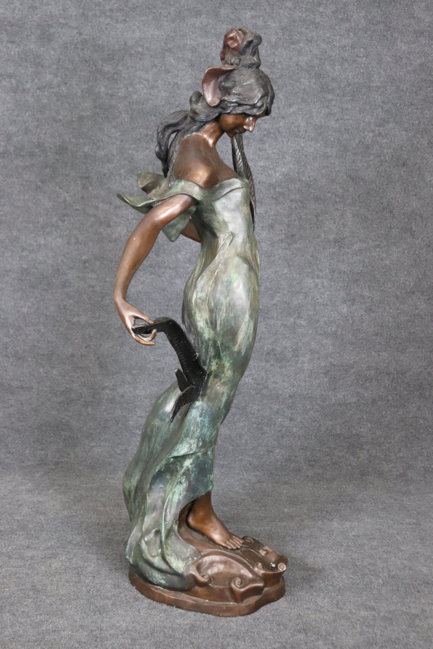 This Italian signed Eduardo Rossi (1867-1926) Art Nouveau life size bronze sculpture of a woman is an exceptional sculpture and was made with quality in mind! If you look at the photos provided, you can see it is signed “E Rossi” on the base. This sculpture is bound to bring a sense of sophistication and luxury to your living room, dining room, entryway or place of your choosing! The sculpture is in good vintage condition with minor surface scratches as to be expected of an item of this age.