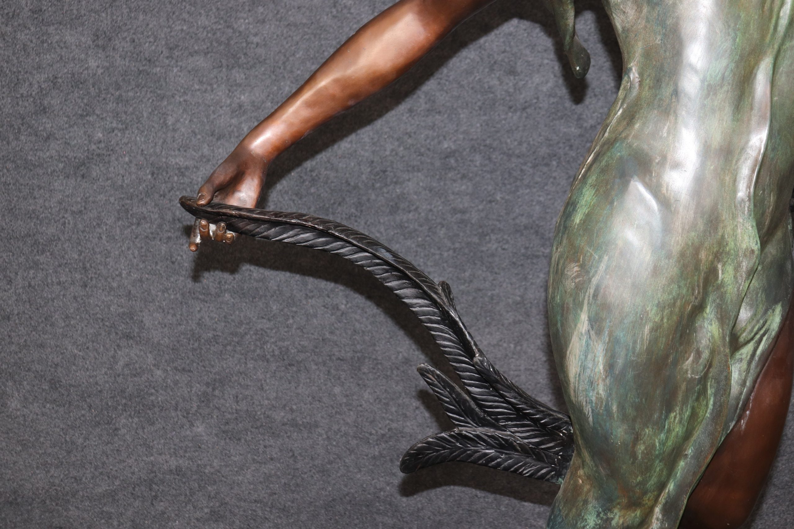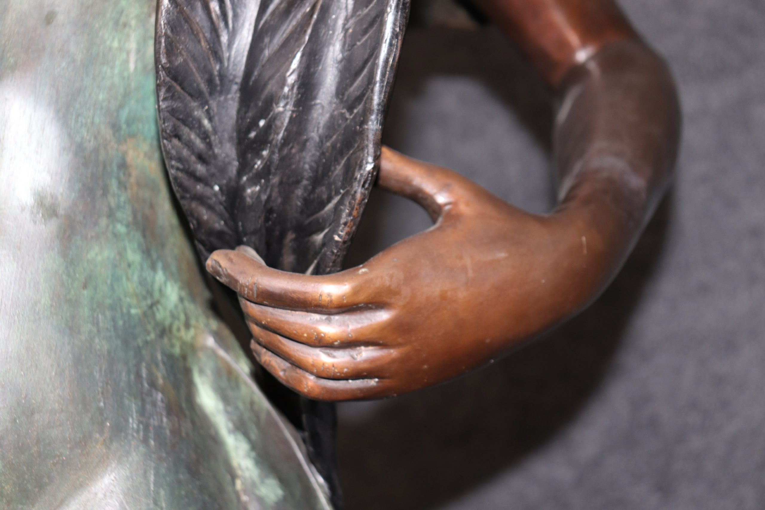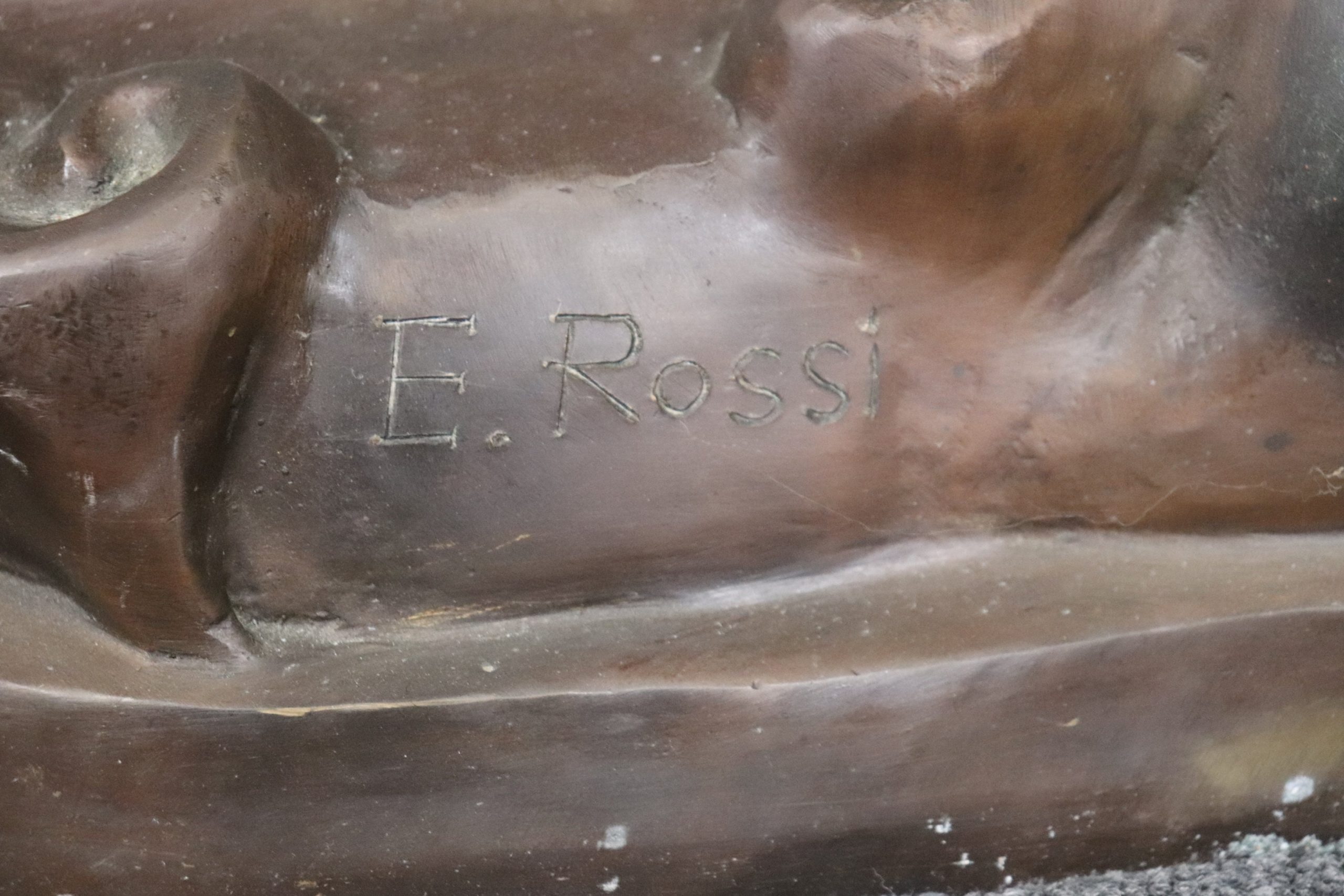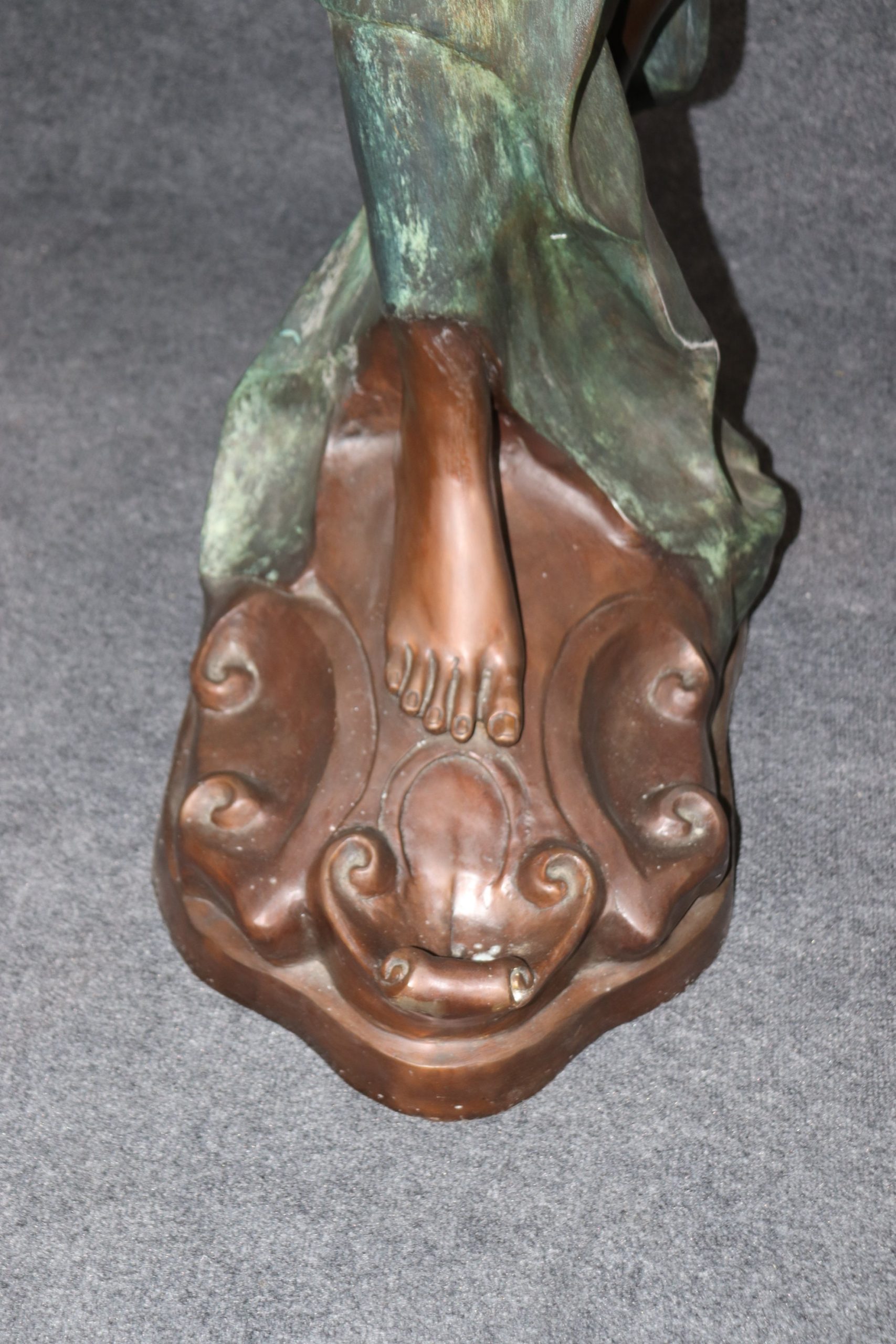 This Italian signed Eduardo Rossi (1867-1926) Art Nouveau life size bronze sculpture of a woman is an exceptional sculpture and was made with quality in mind! If you look at the photos provided, you can see it is signed “E Rossi” on the base. This sculpture is bound to bring a sense of sophistication and luxury to your living room, dining room, entryway or place of your choosing! The sculpture is in good vintage condition with minor surface scratches as to be expected of an item of this age.