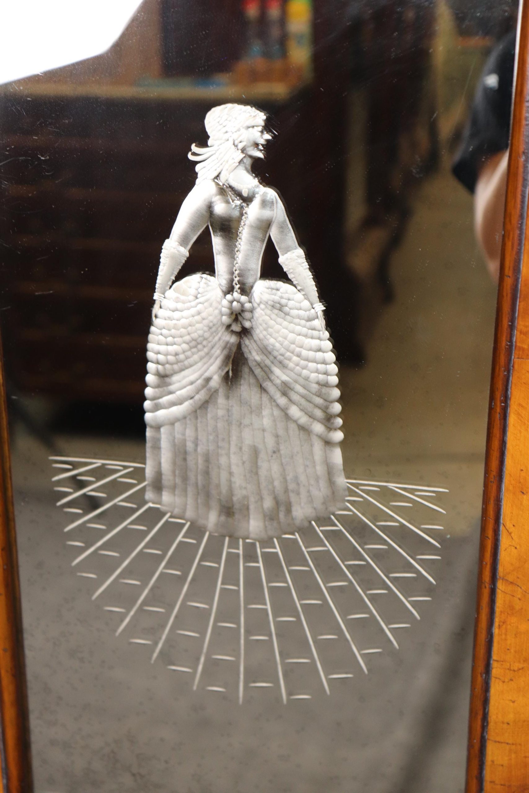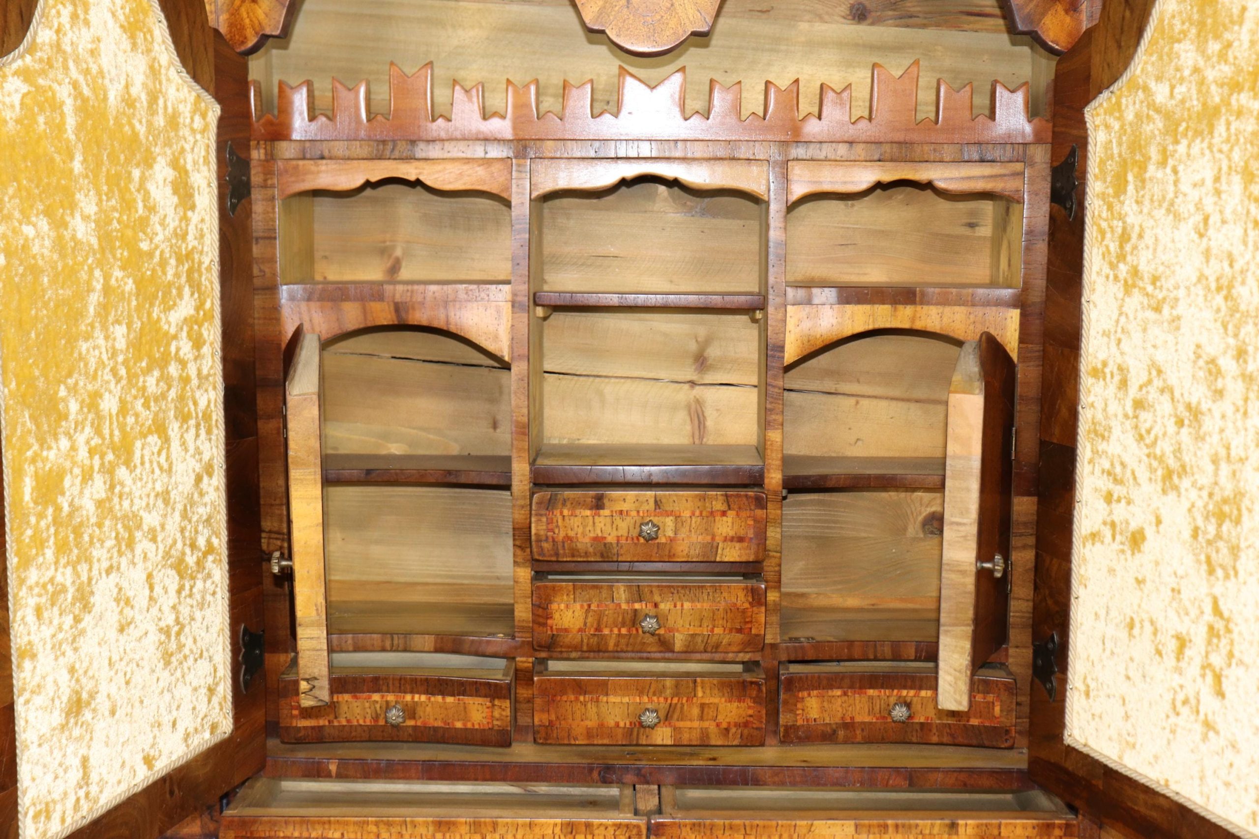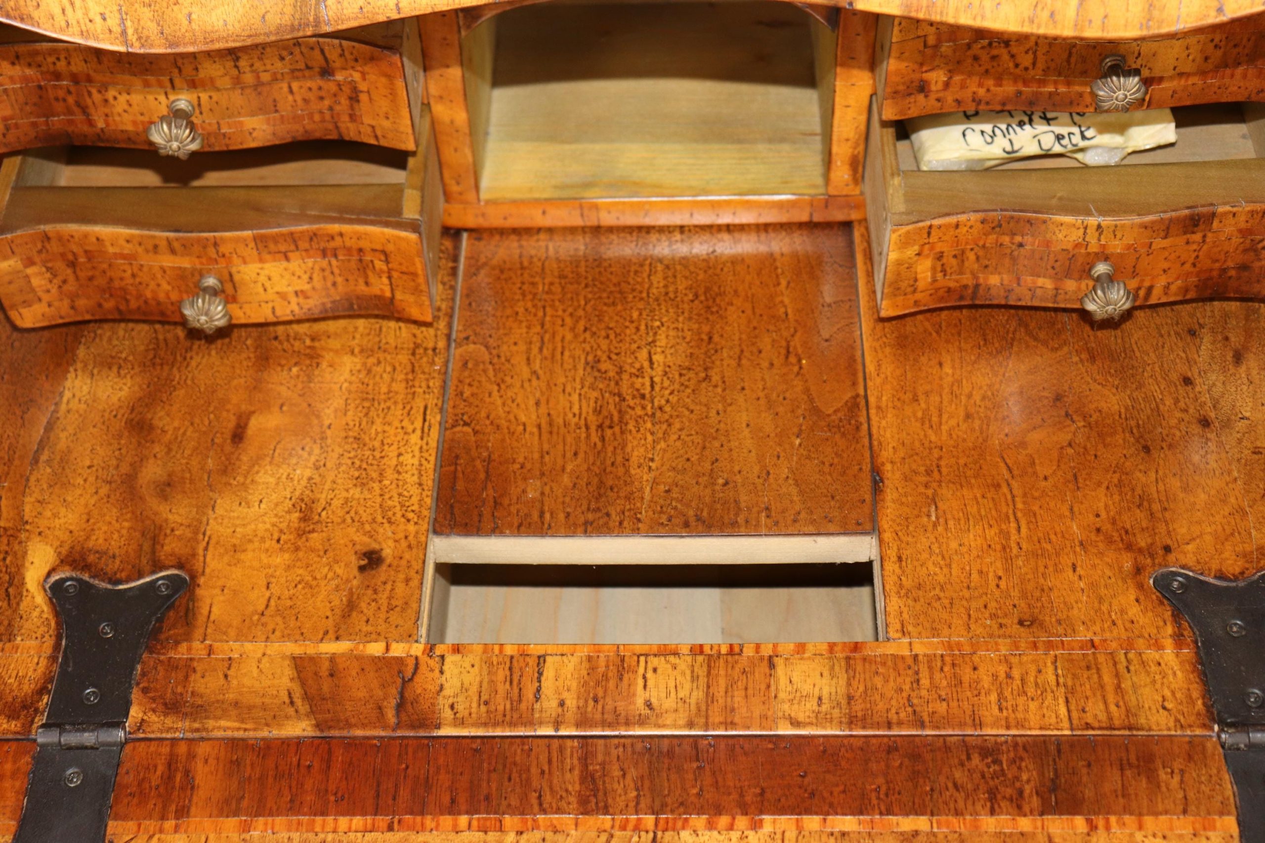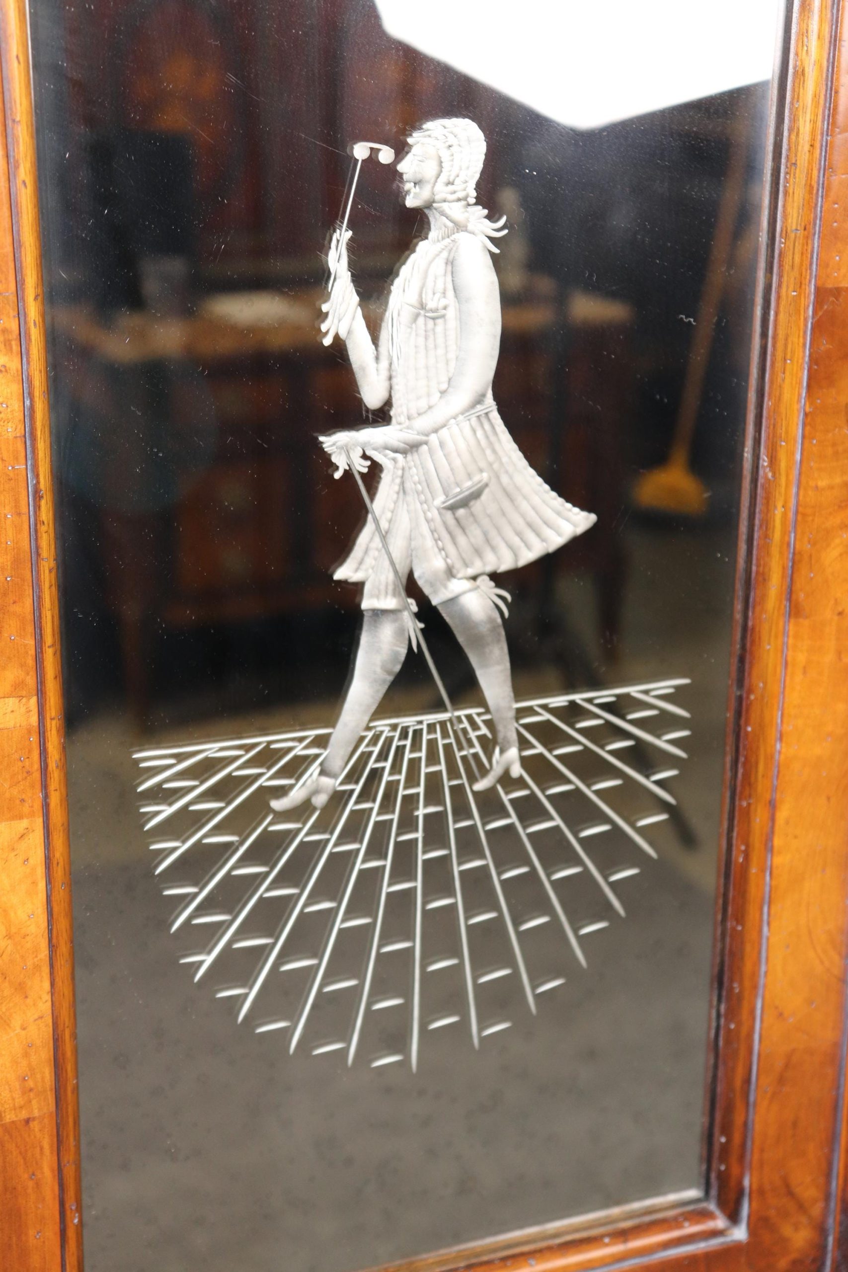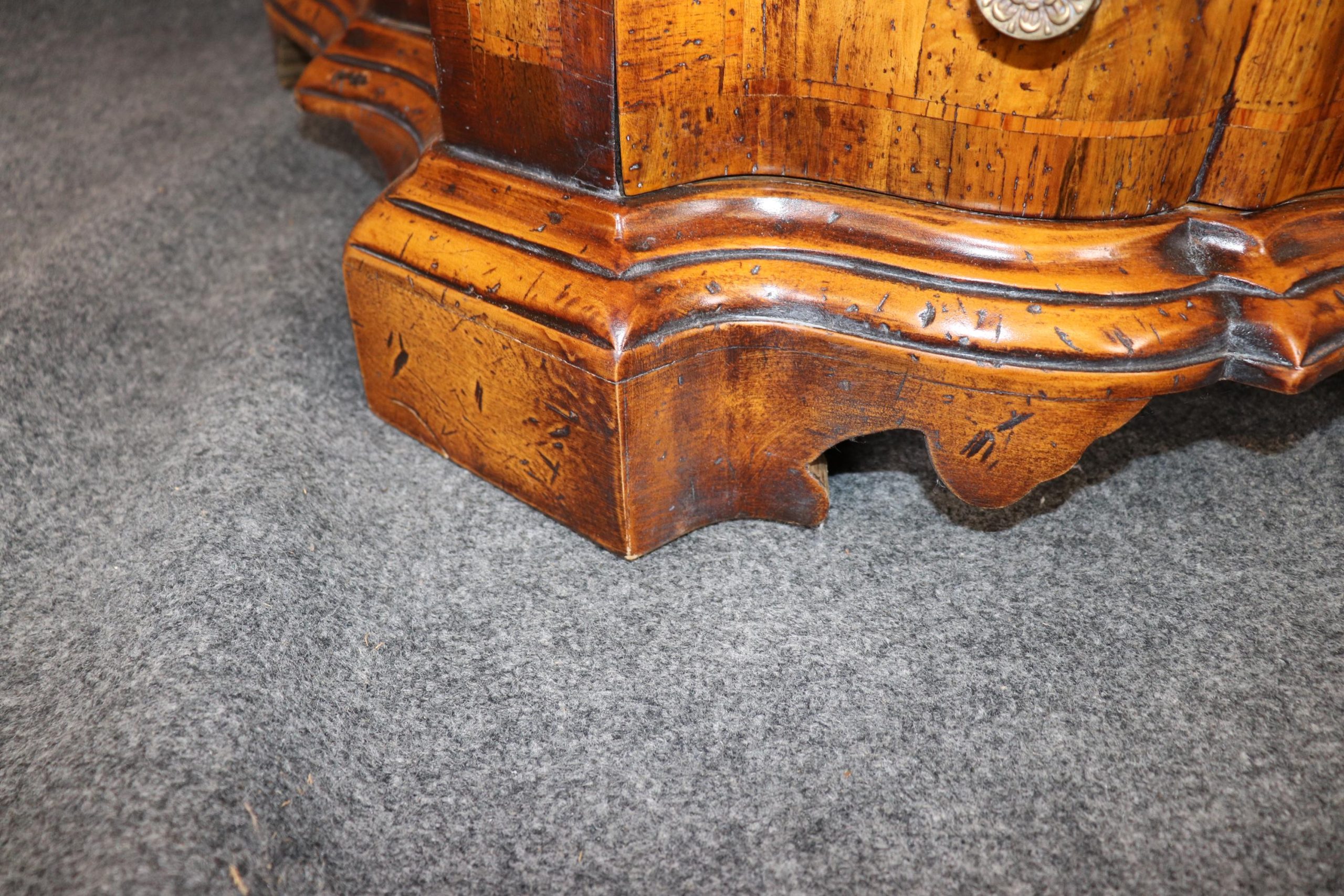 This vintage Italian bombe secretary desk is made of the highest quality! If you look at the photos provided, you can see the beautifully etched mirror panels. This piece is perfect for any living room, bedroom, office, kitchen or large bathroom and is equipped with 3 drawers, perfect for storing your personal belongings all while bringing a sense on luxury and class into your home! This piece is bound to bring a sense of creativity and character into your home or place of choosing and will surely have your guests mesmerized by its attention to detail. Antique furniture and vintage furniture have stood the test of time and this piece is no exception! With its quality materials and great craftsmanship, this desk will last you and your family many years to come. The secretary is in good vintage condition with minor surface scratches and wear, as to be expected with a vintage item.