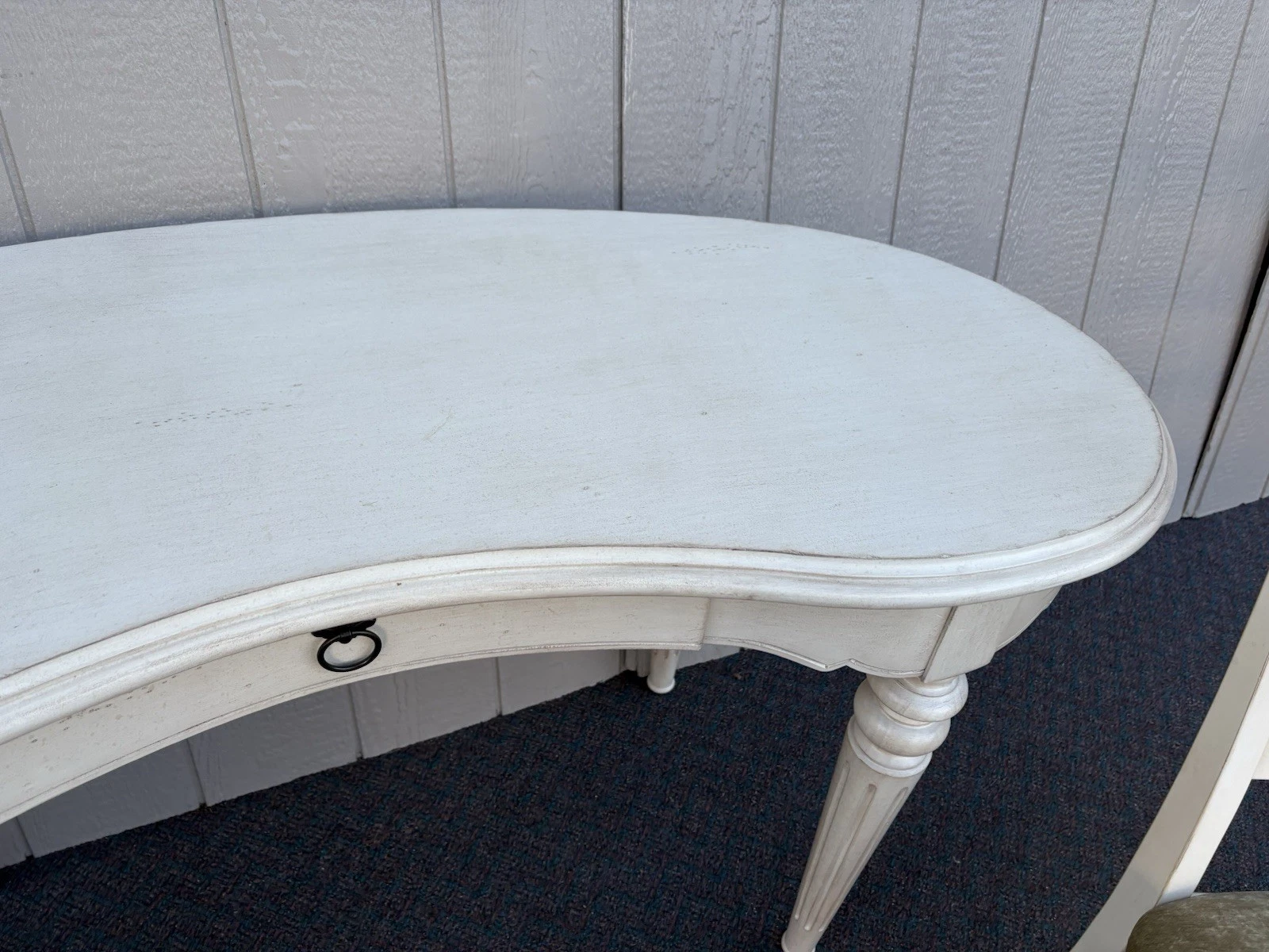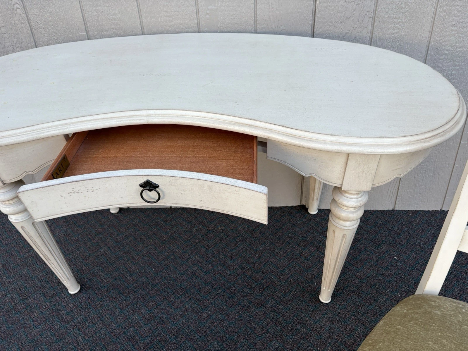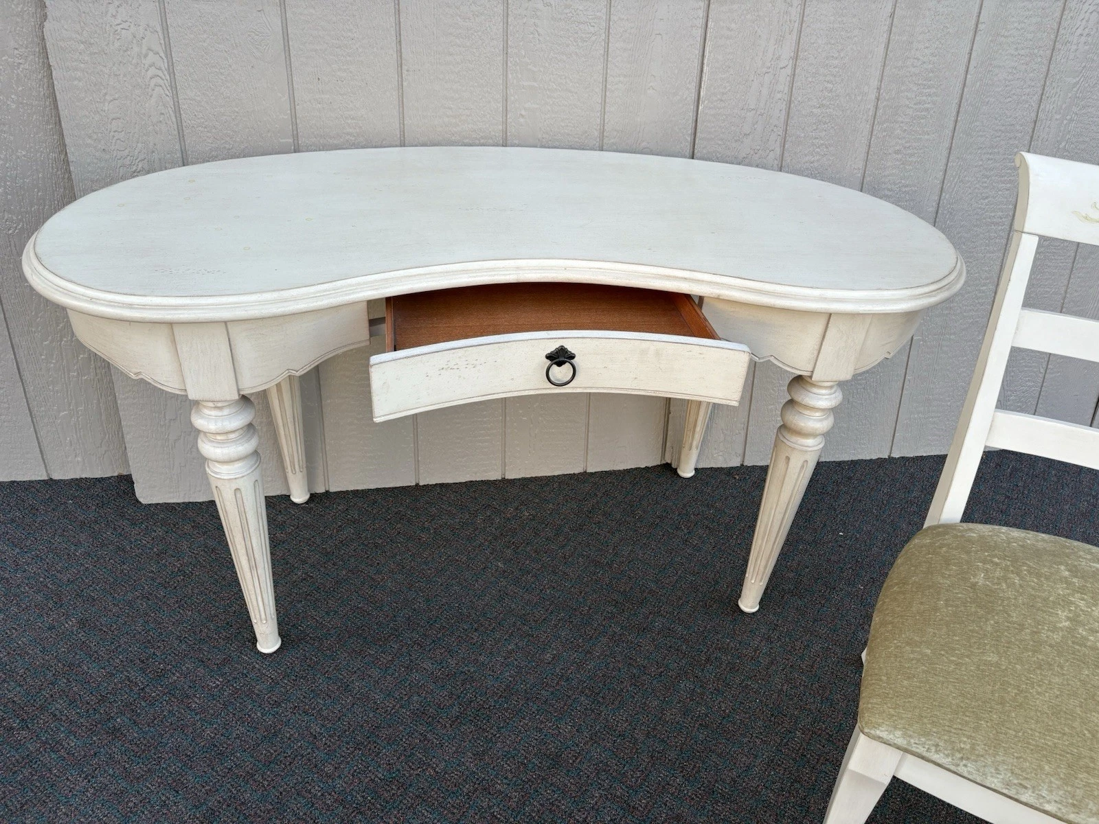 Ivory A.R.T. Furniture Kidney Desk Vanity with Stenciled Side Chair