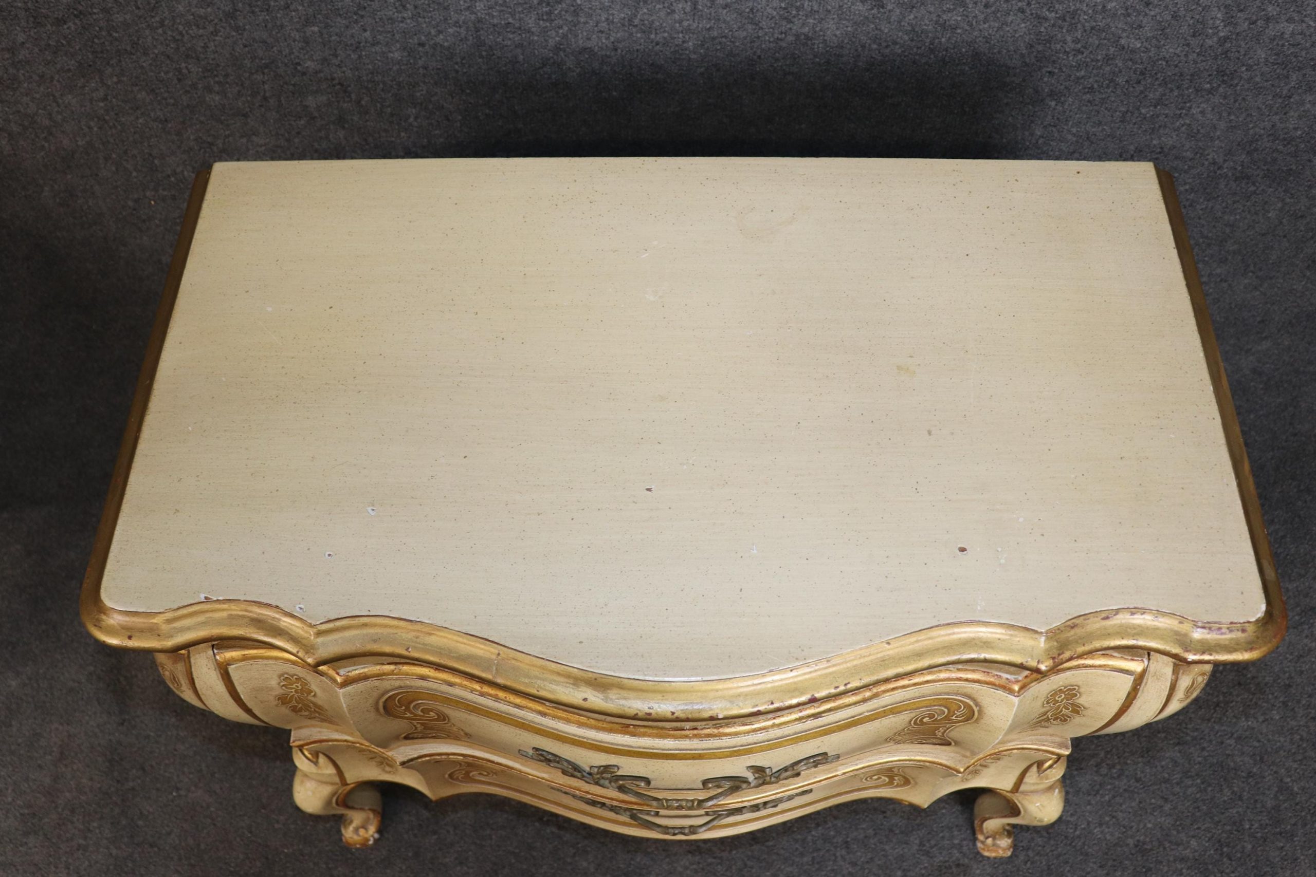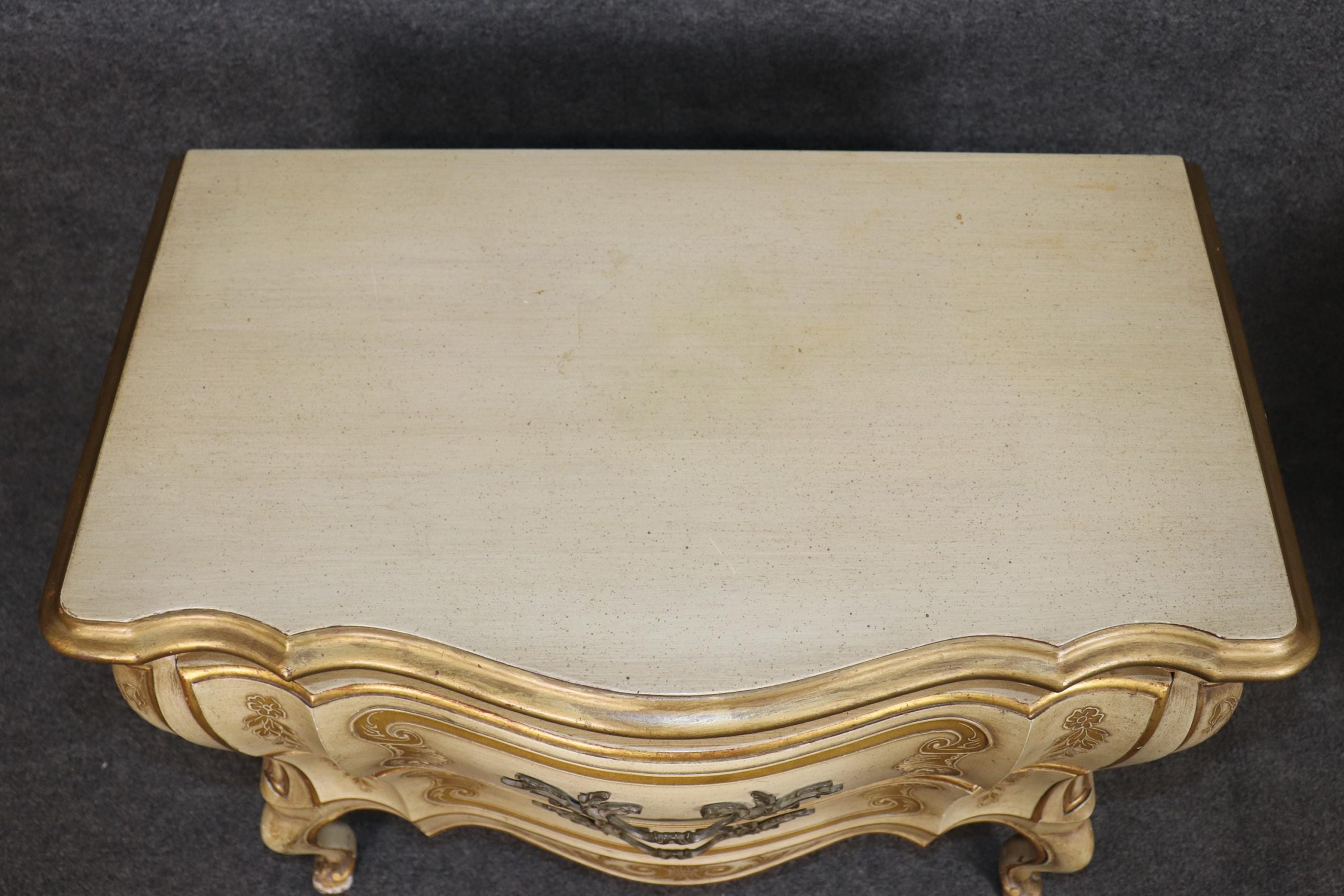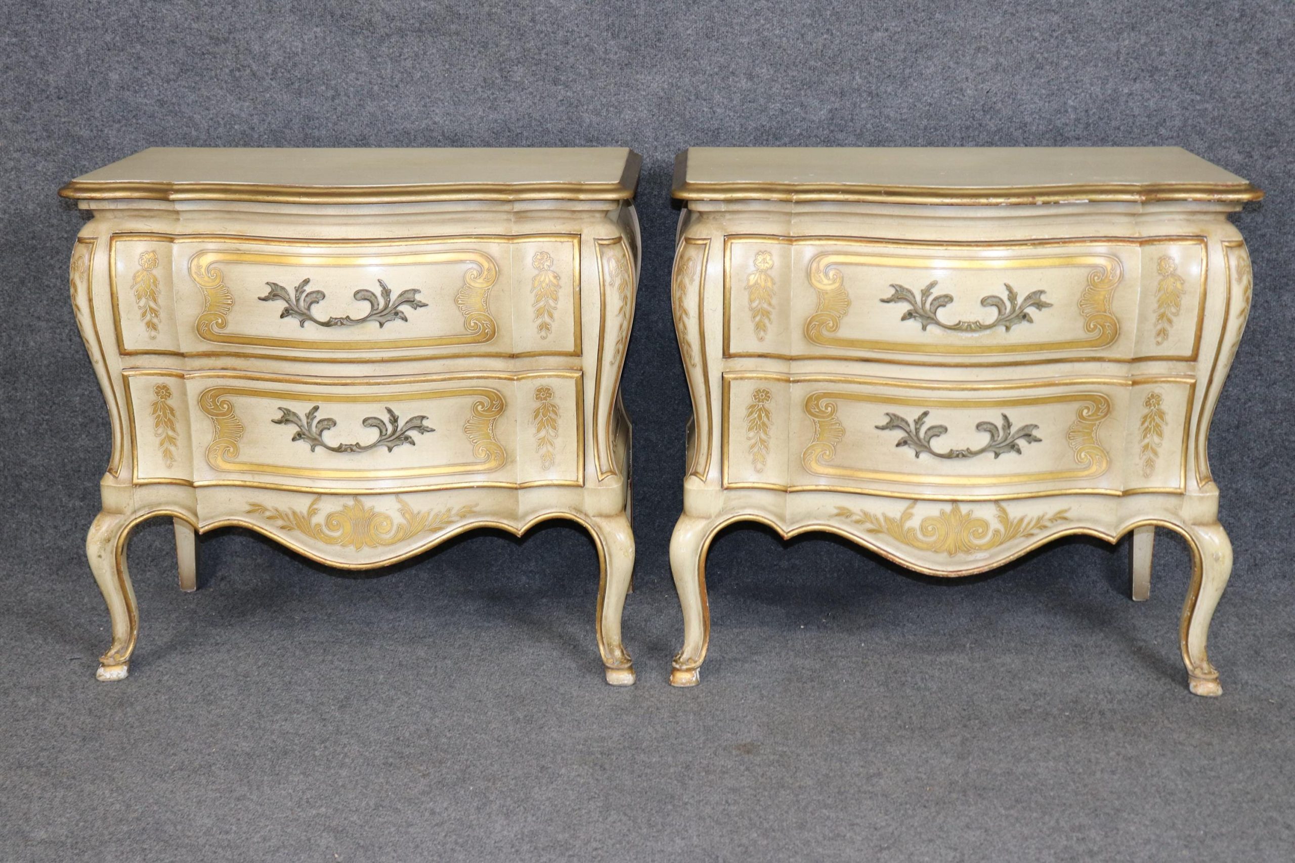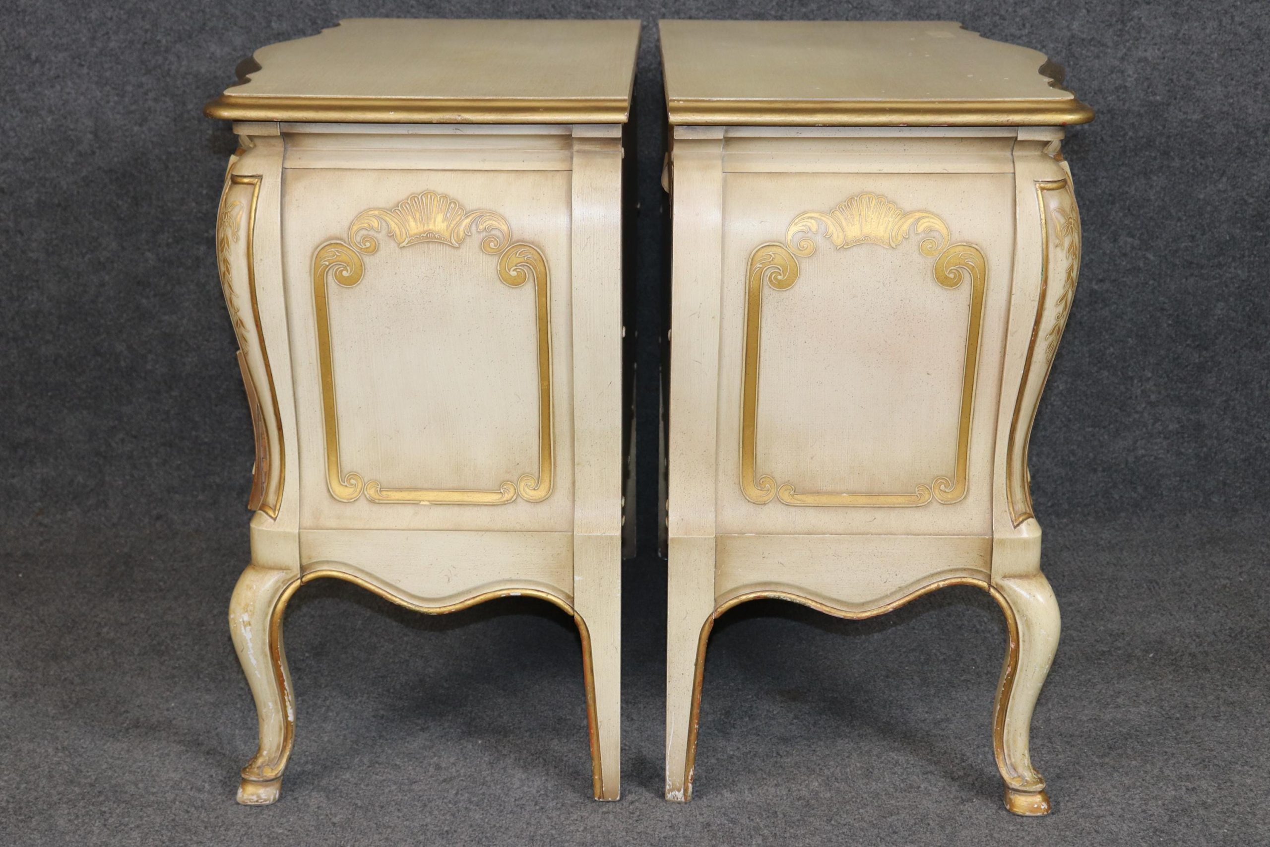 John Widdicomb Louis XV Nightstands: Creme Painted, Gilt Detail