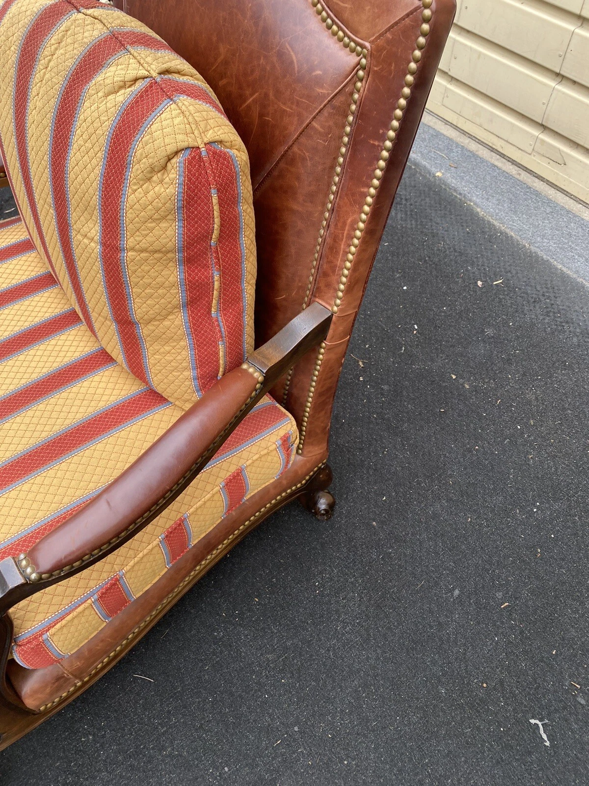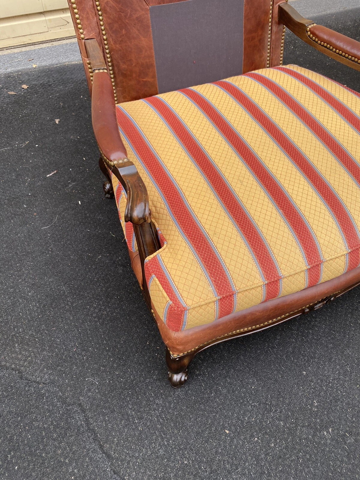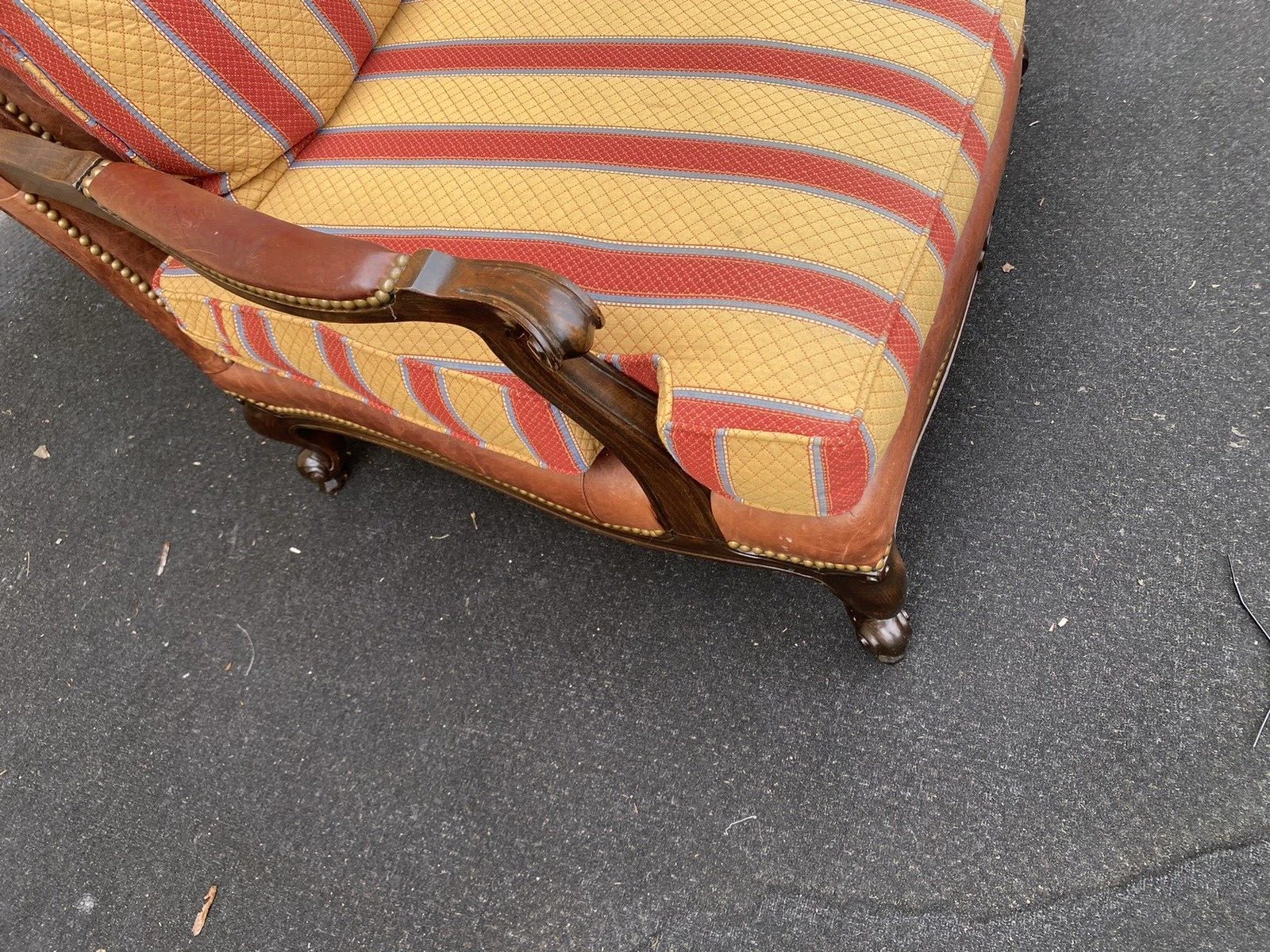 This stunning armchair by Taylor King Furniture exudes a blend of comfort and sophistication, embodying the timeless elegance of post-1950 French style. Crafted with meticulous attention to detail, the rich, multicolored leather offers a luxurious aesthetic while remaining snug and sturdy for years of enjoyment. Its generous size invites you to sink in and relax, making it a perfect statement piece for any living space. With its handmade quality and classic design, this armchair not only serves as a functional seating option but also as a distinguished addition to your home’s character.