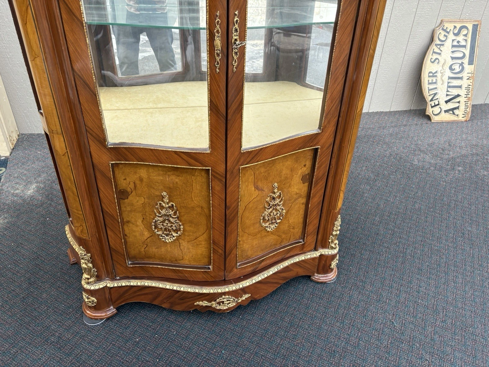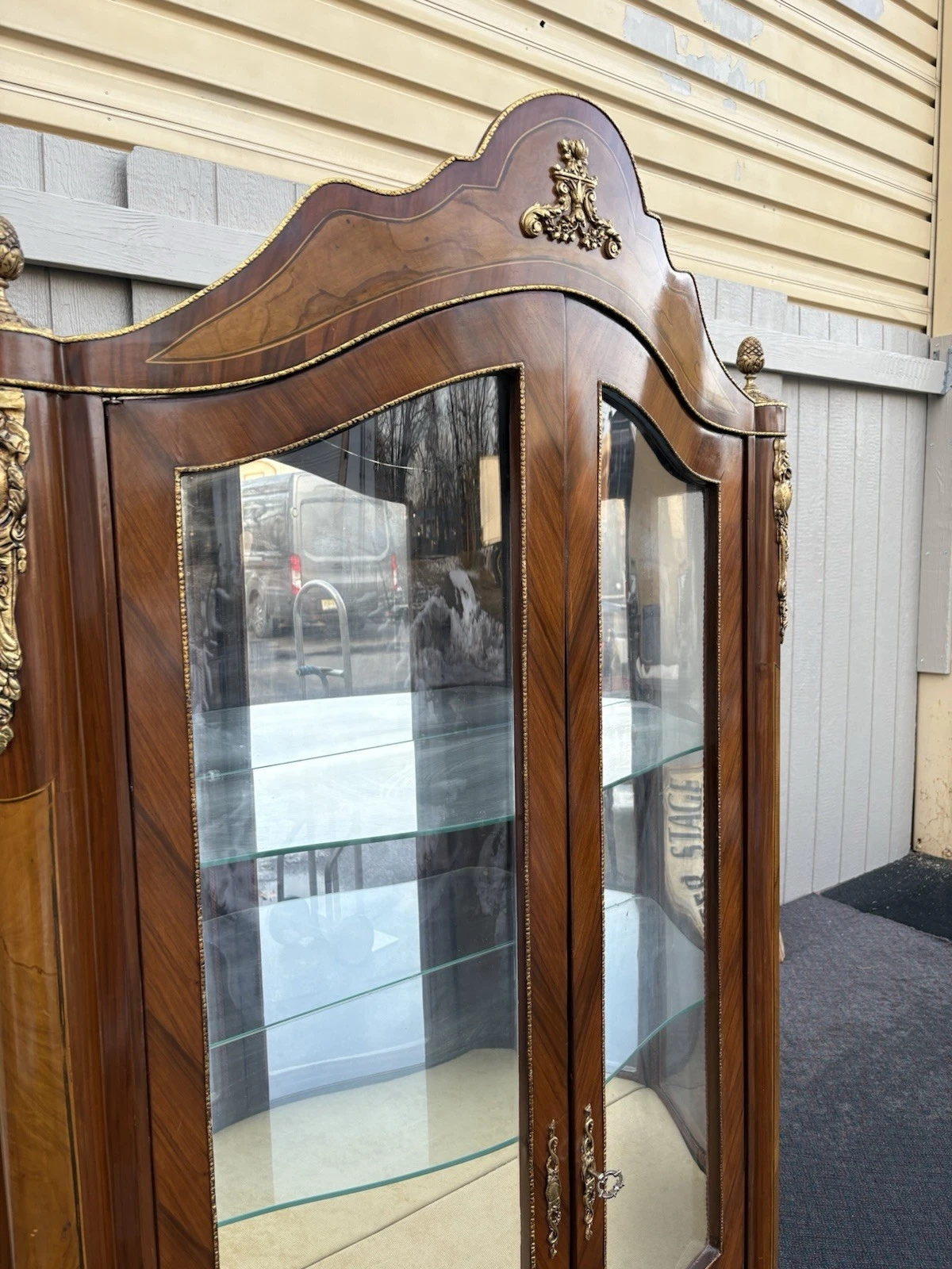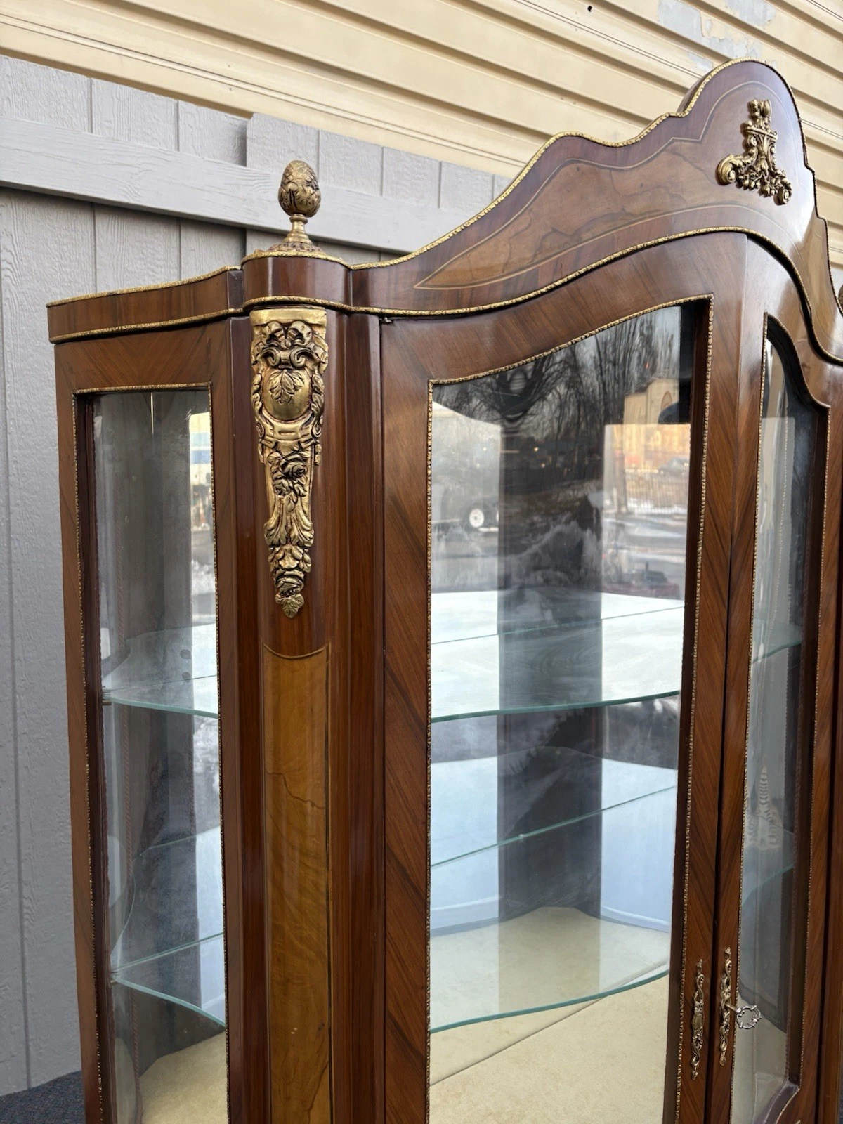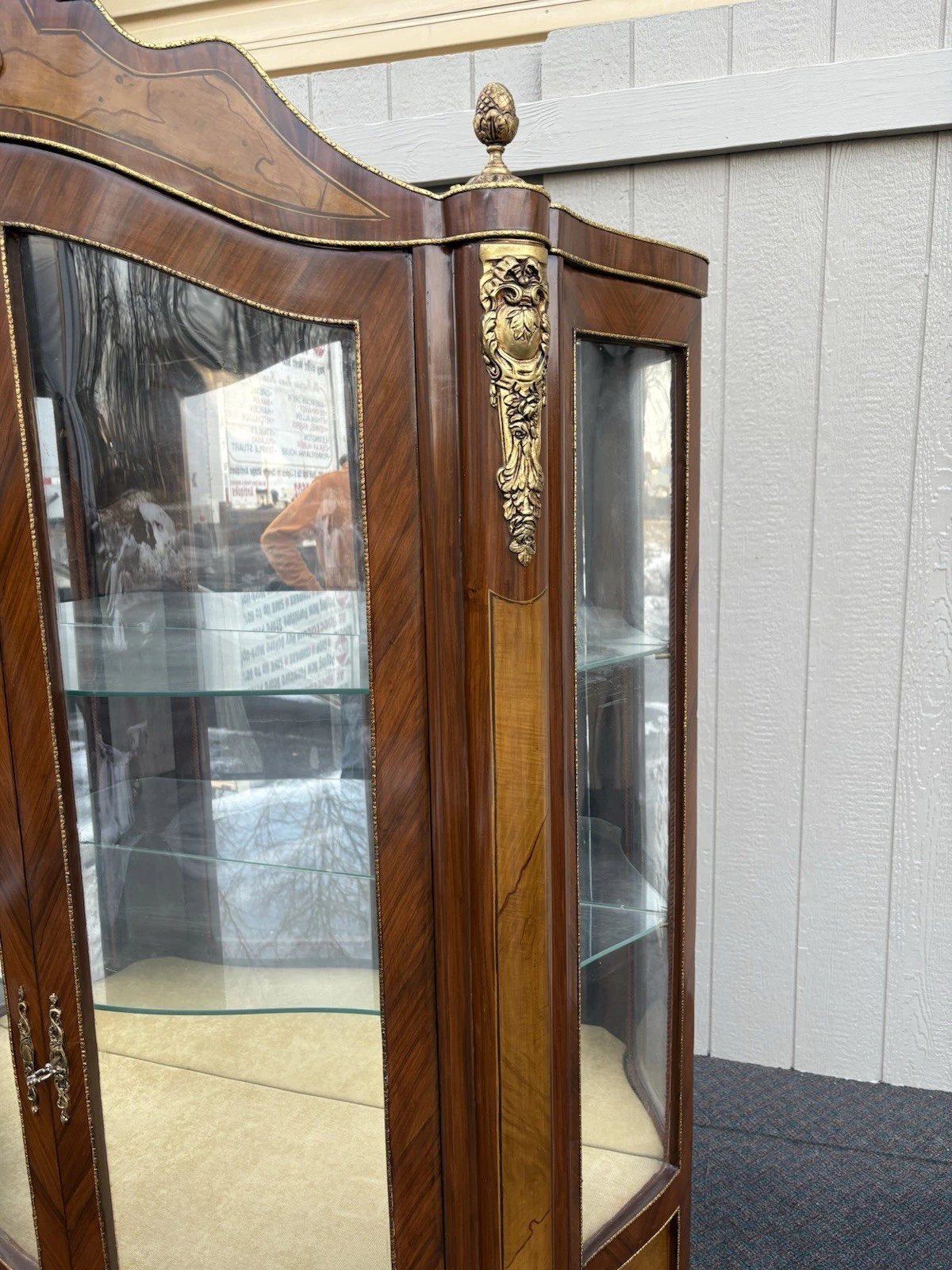 This exquisite Louis XV inlaid curio cabinet showcases the elegance of French design, featuring intricate marquetry that tells a story of craftsmanship and artistry. Adorned with delicate bronze ormalu accents, it brings a touch of vintage charm to any space. With three spacious shelves, this cabinet is not just a display piece but a conversation starter, perfect for showcasing your cherished collectibles. Its rich, multicolored finish and graceful lines make it a timeless addition to your home, reflecting the passion and dedication of handcrafted furniture.