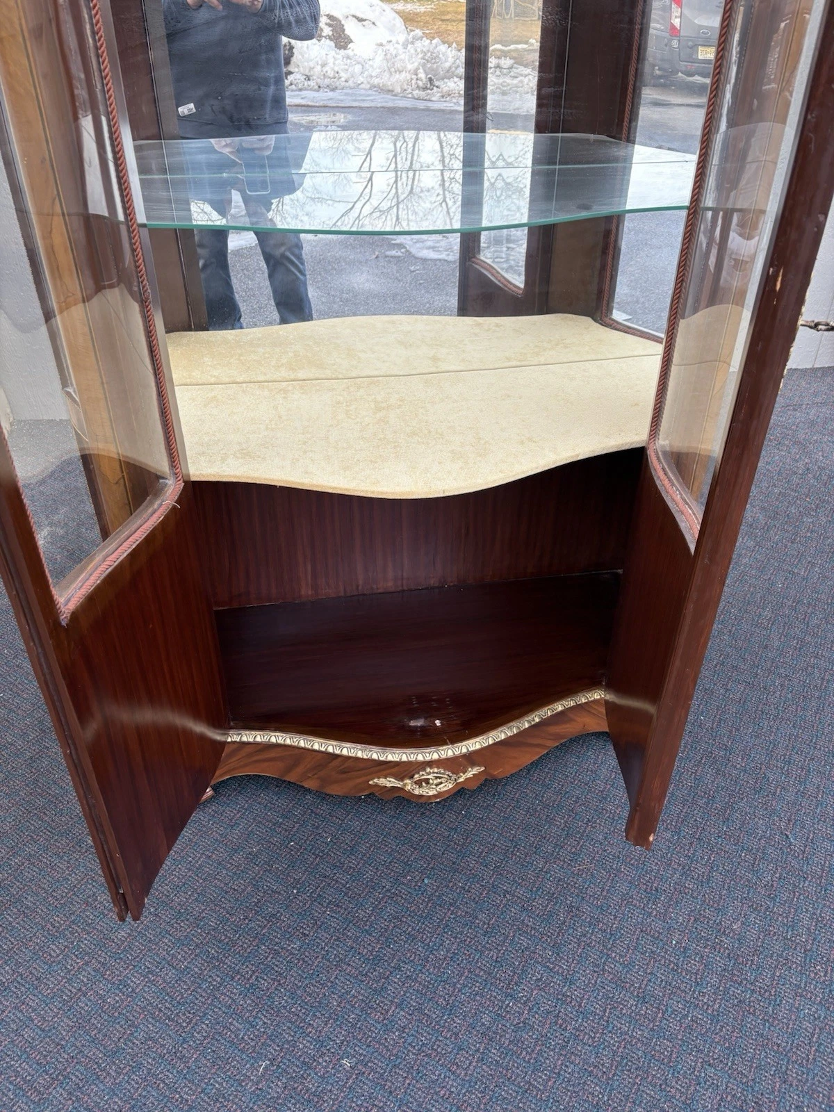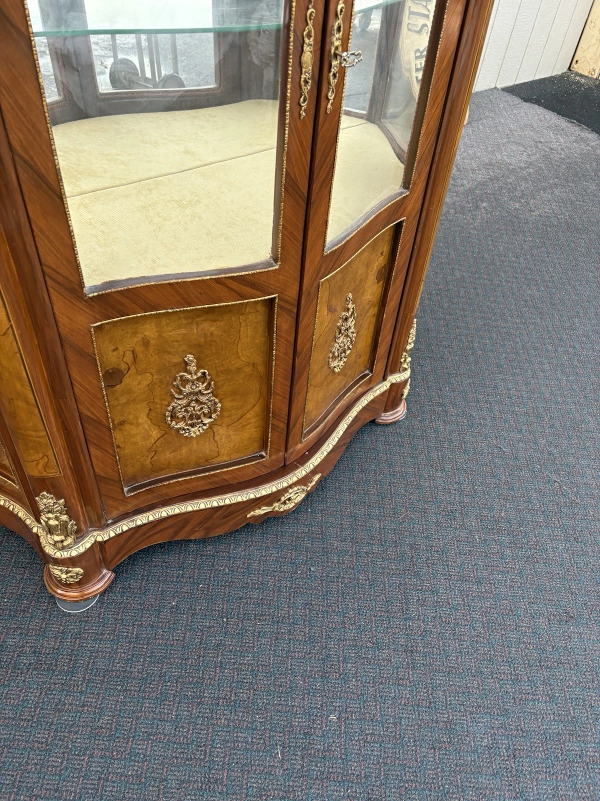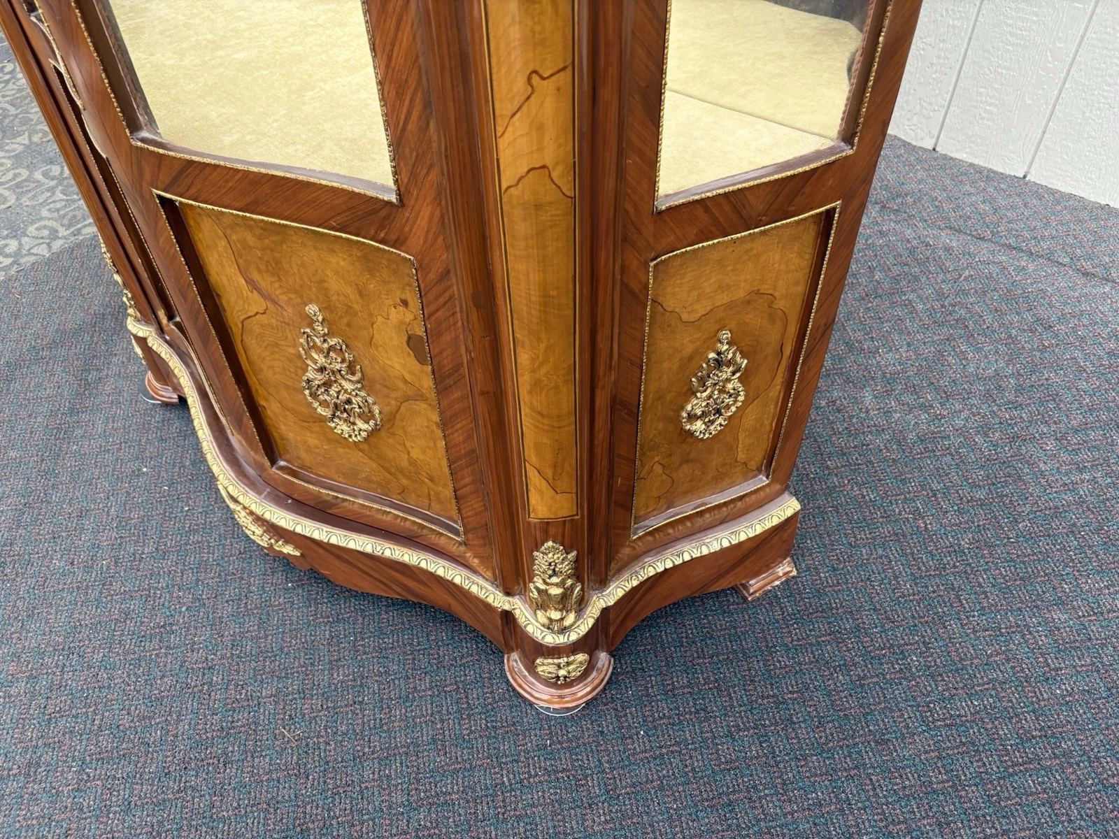 This exquisite Louis XV inlaid curio cabinet showcases the elegance of French design, featuring intricate marquetry that tells a story of craftsmanship and artistry. Adorned with delicate bronze ormalu accents, it brings a touch of vintage charm to any space. With three spacious shelves, this cabinet is not just a display piece but a conversation starter, perfect for showcasing your cherished collectibles. Its rich, multicolored finish and graceful lines make it a timeless addition to your home, reflecting the passion and dedication of handcrafted furniture.
