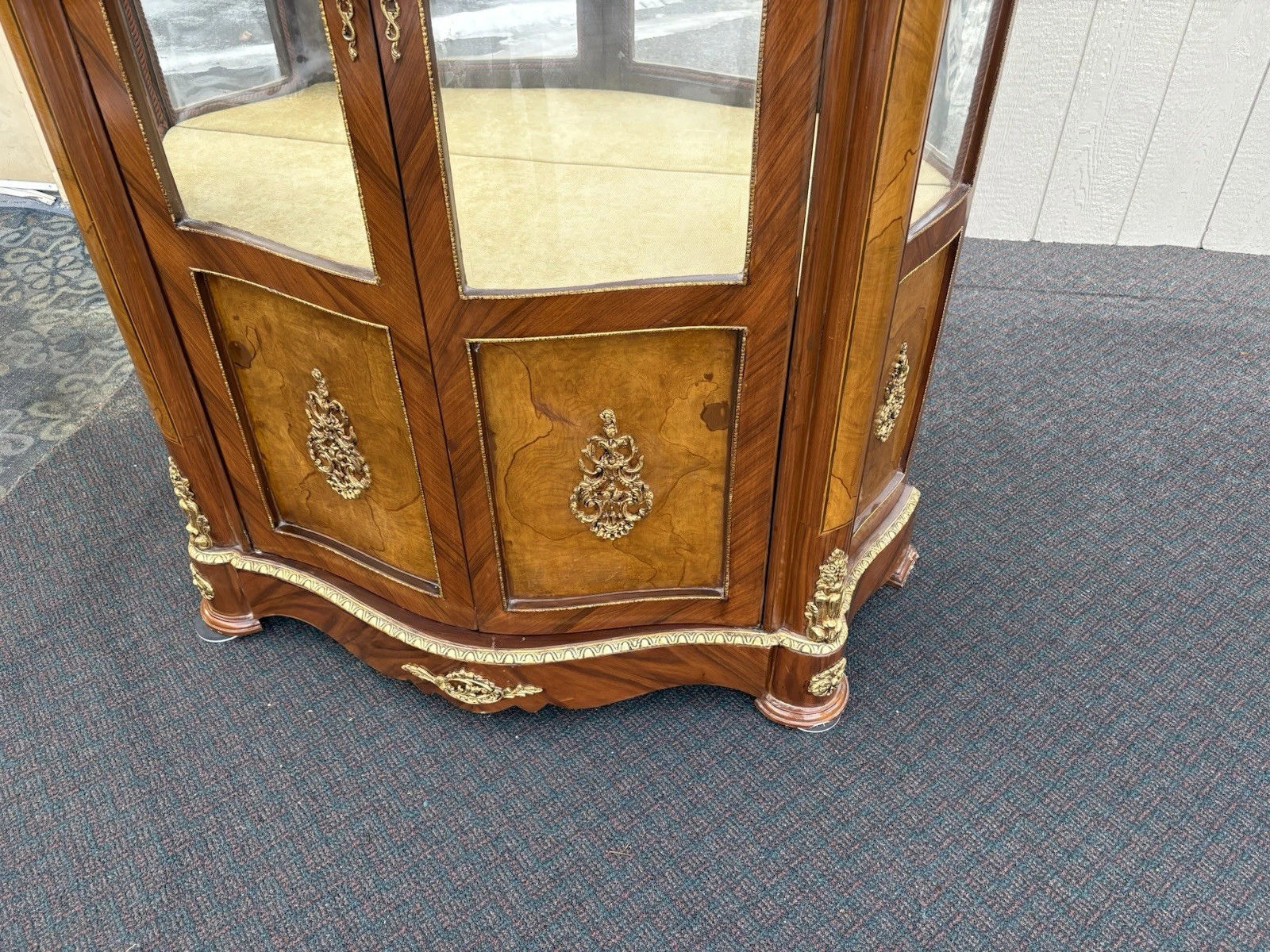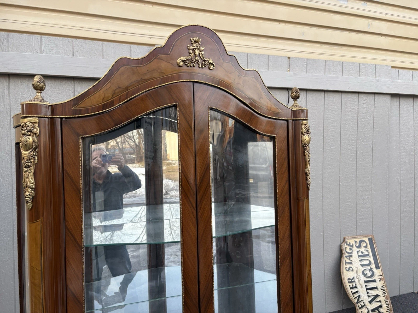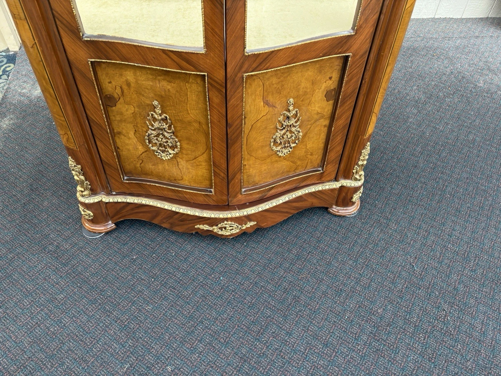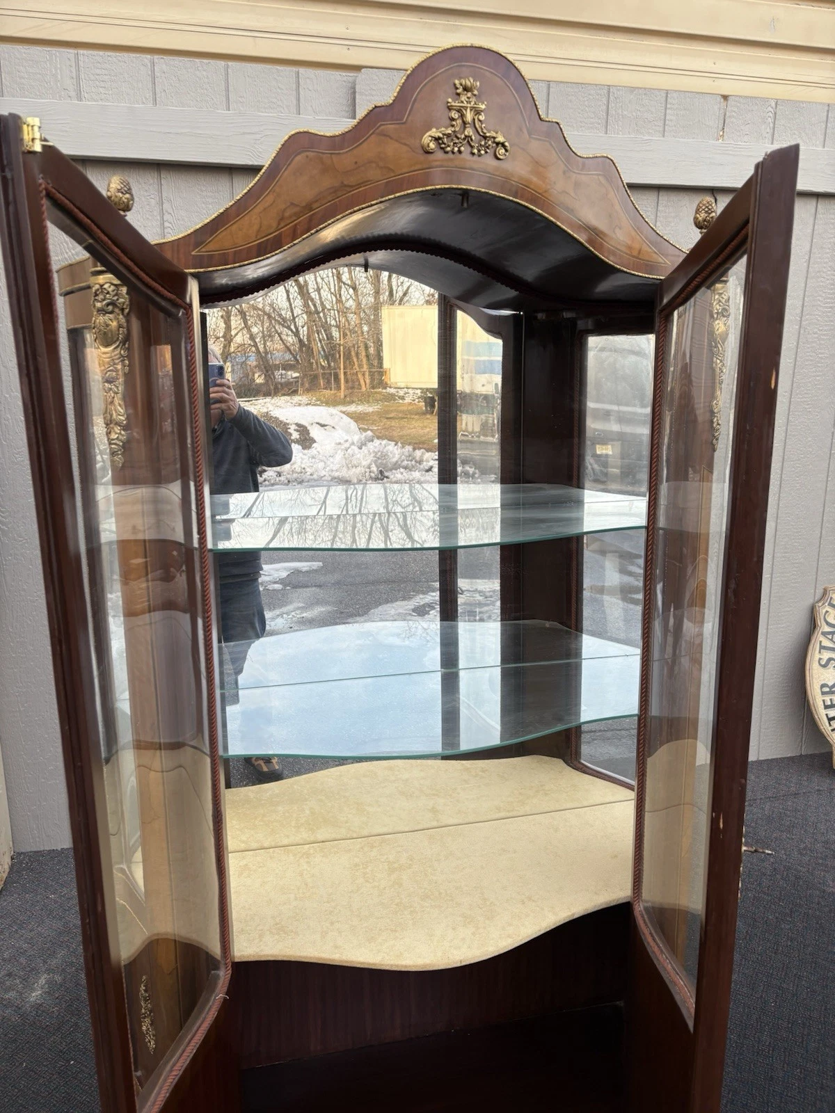 This exquisite Louis XV inlaid curio cabinet showcases the elegance of French design, featuring intricate marquetry that tells a story of craftsmanship and artistry. Adorned with delicate bronze ormalu accents, it brings a touch of vintage charm to any space. With three spacious shelves, this cabinet is not just a display piece but a conversation starter, perfect for showcasing your cherished collectibles. Its rich, multicolored finish and graceful lines make it a timeless addition to your home, reflecting the passion and dedication of handcrafted furniture.