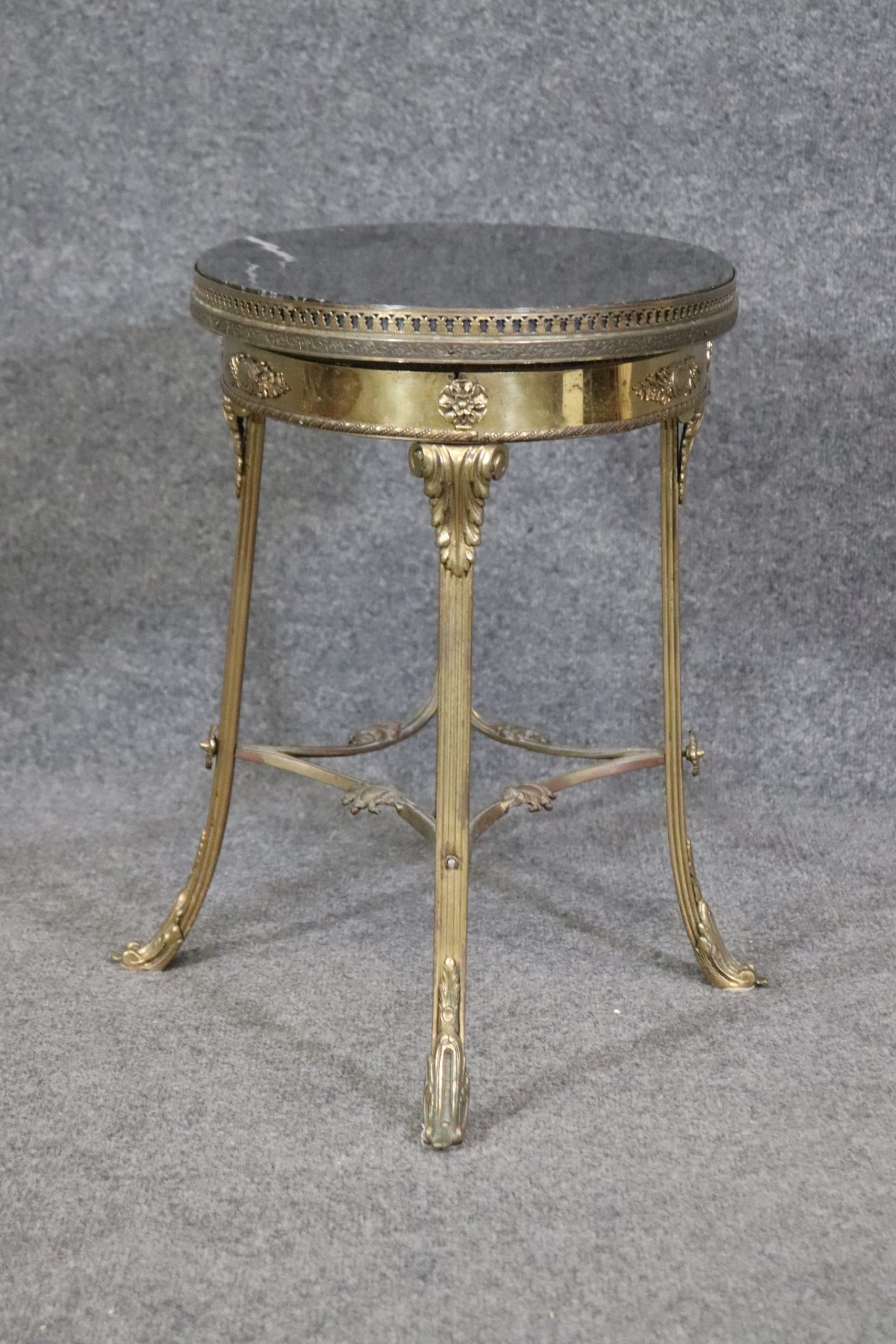Louis XV Style Brass Marble Top Accent Table circa 1950s, Antique Furniture