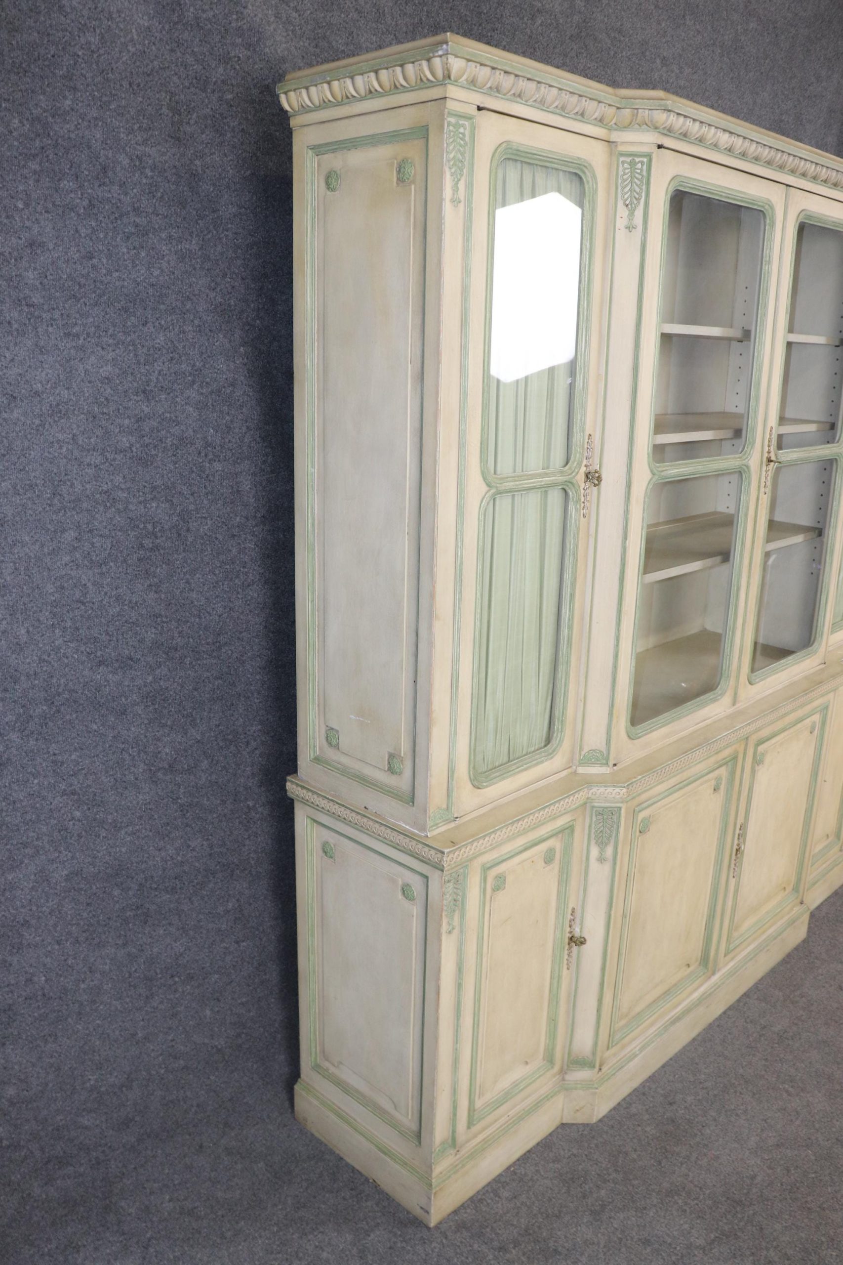 Louis XVI Direcroire Style Paint Decorated Breakfront, China Cabinet