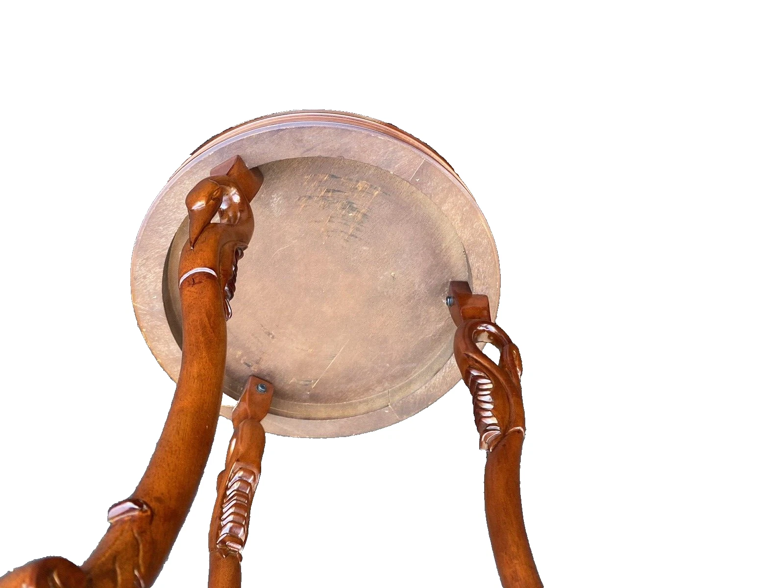 This charming mahogany accent table, featuring elegant swan figures, brings a touch of artistry and sophistication to any space. Crafted with meticulous attention to detail, the graceful curves of the swan heads lend a unique character that captures the essence of classic design. Its rich mahogany finish not only showcases the wood’s natural beauty but also ensures durability, making it a delightful addition to your home decor. Whether used as a lamp stand or a decorative piece, this table is sure to spark conversation and admiration.