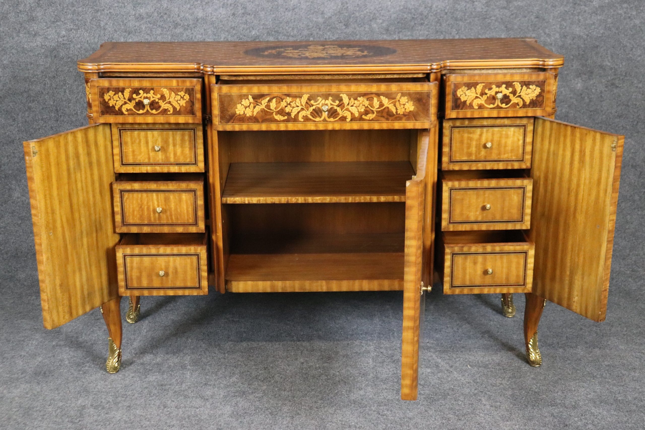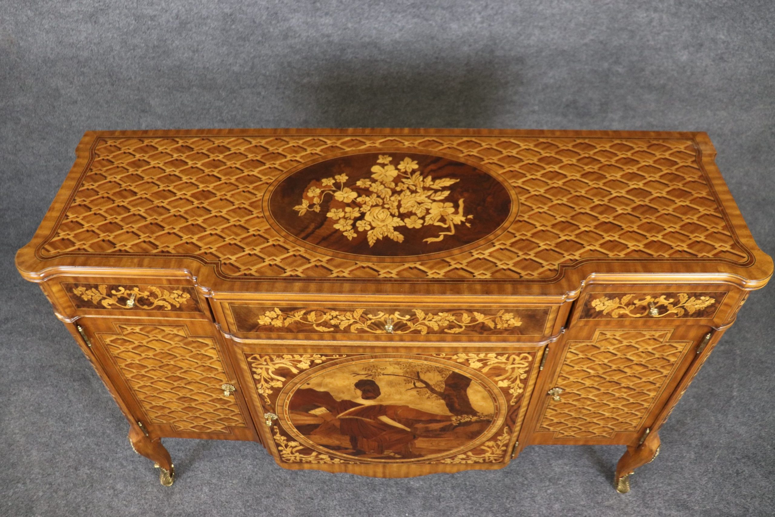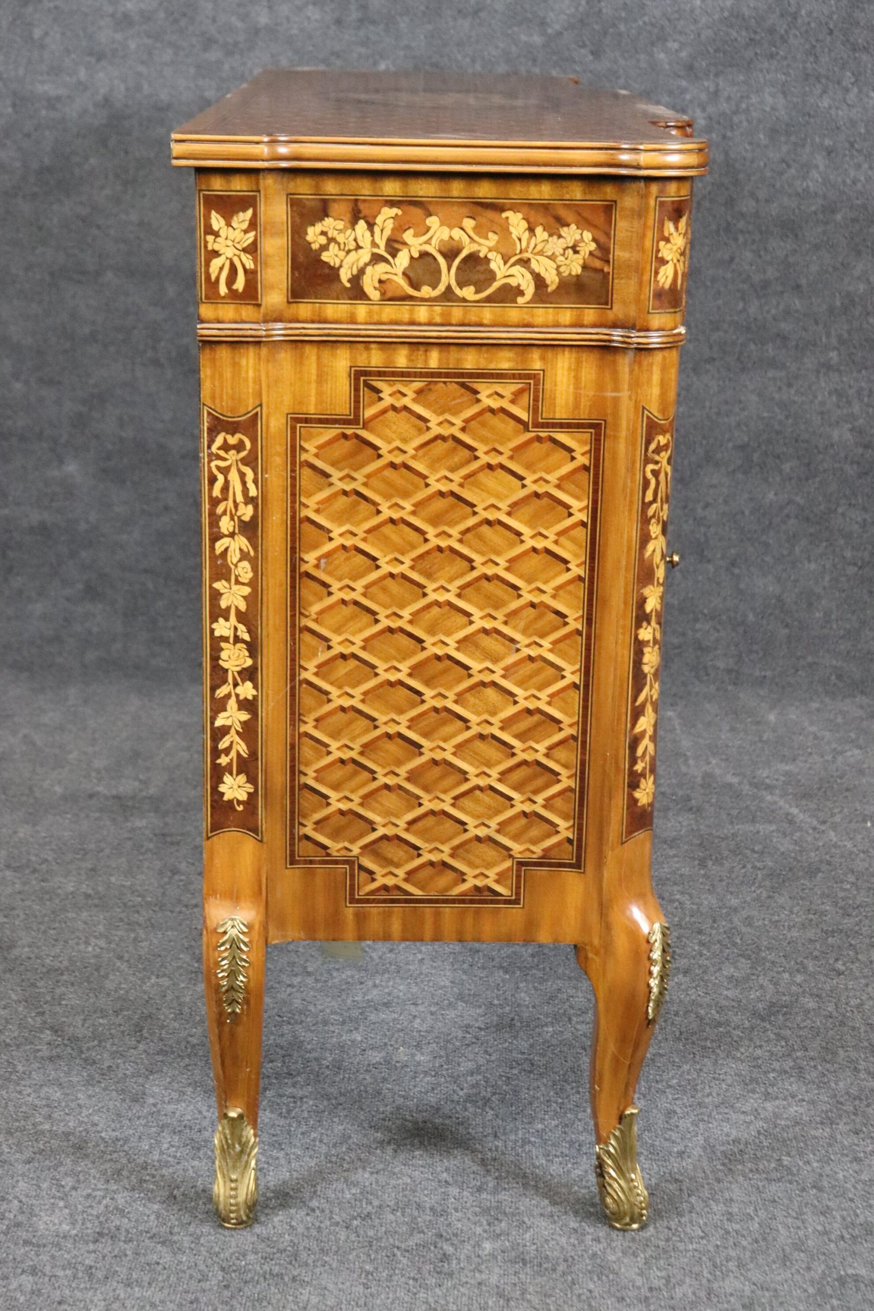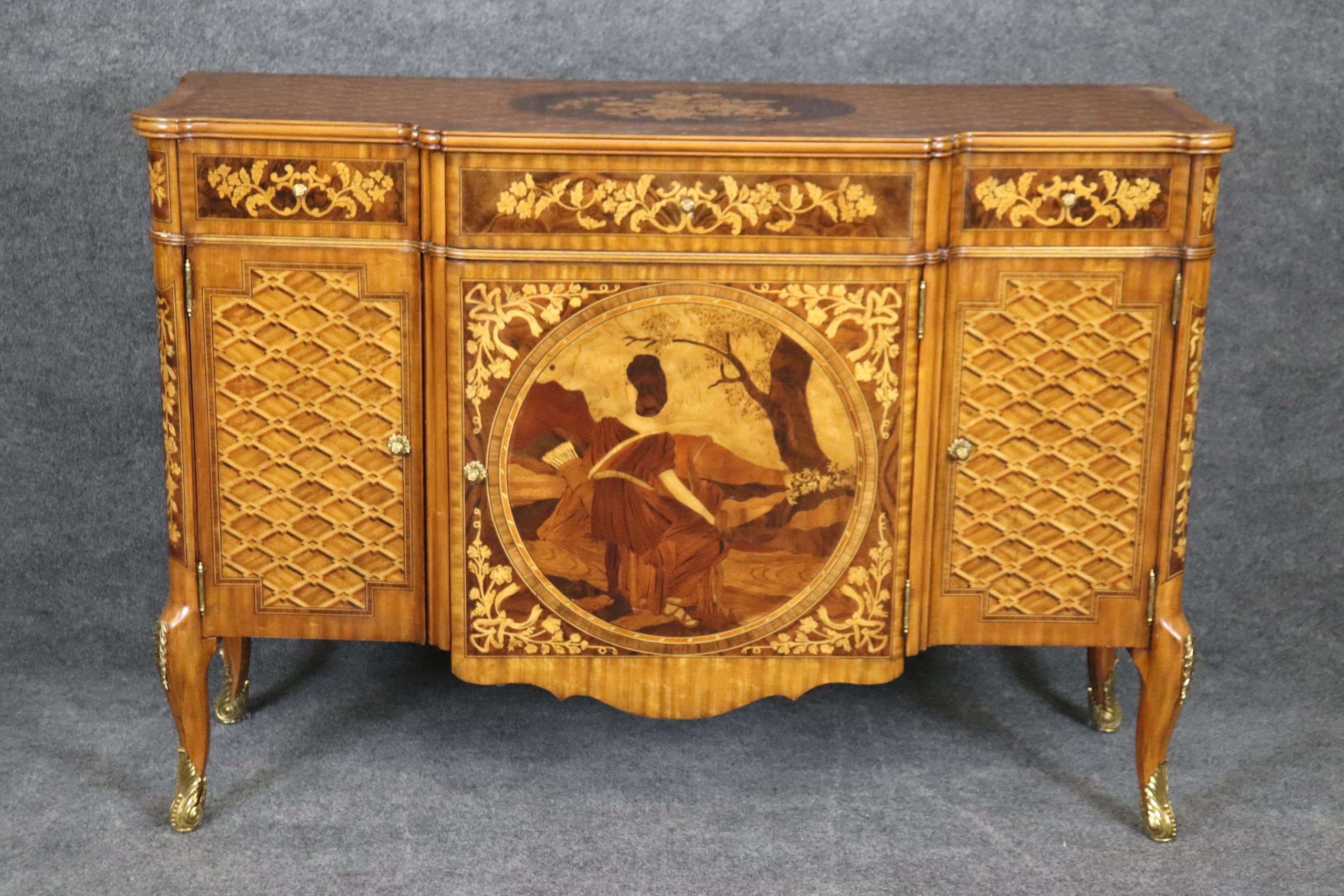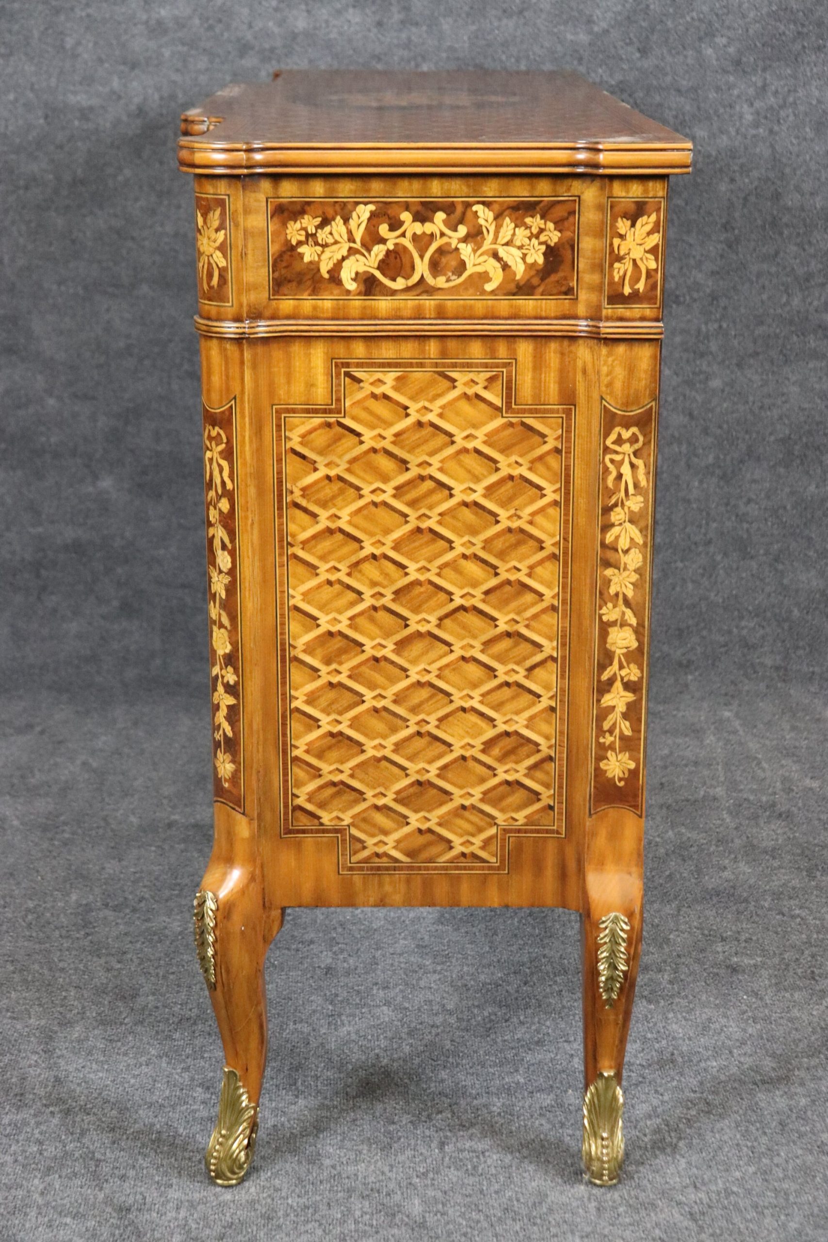 This impressive vintage Maitland Smith Louis XV style commode server is made of the highest quality and is bound to bring class and character into your home or place of choosing! This is perfect for any entryway, bedroom, living room, hallway or office, and will certainly be a conversation piece! Maitland Smith is one of the most praised furniture manufacturers of the late 20th century and 21st century and is still in business today! Their quality level is right up to par with companies such as Drexel, Theodore Alexander and many more! This is in good vintage condition with light surface scratches to finish, but otherwise good condition considering age!
