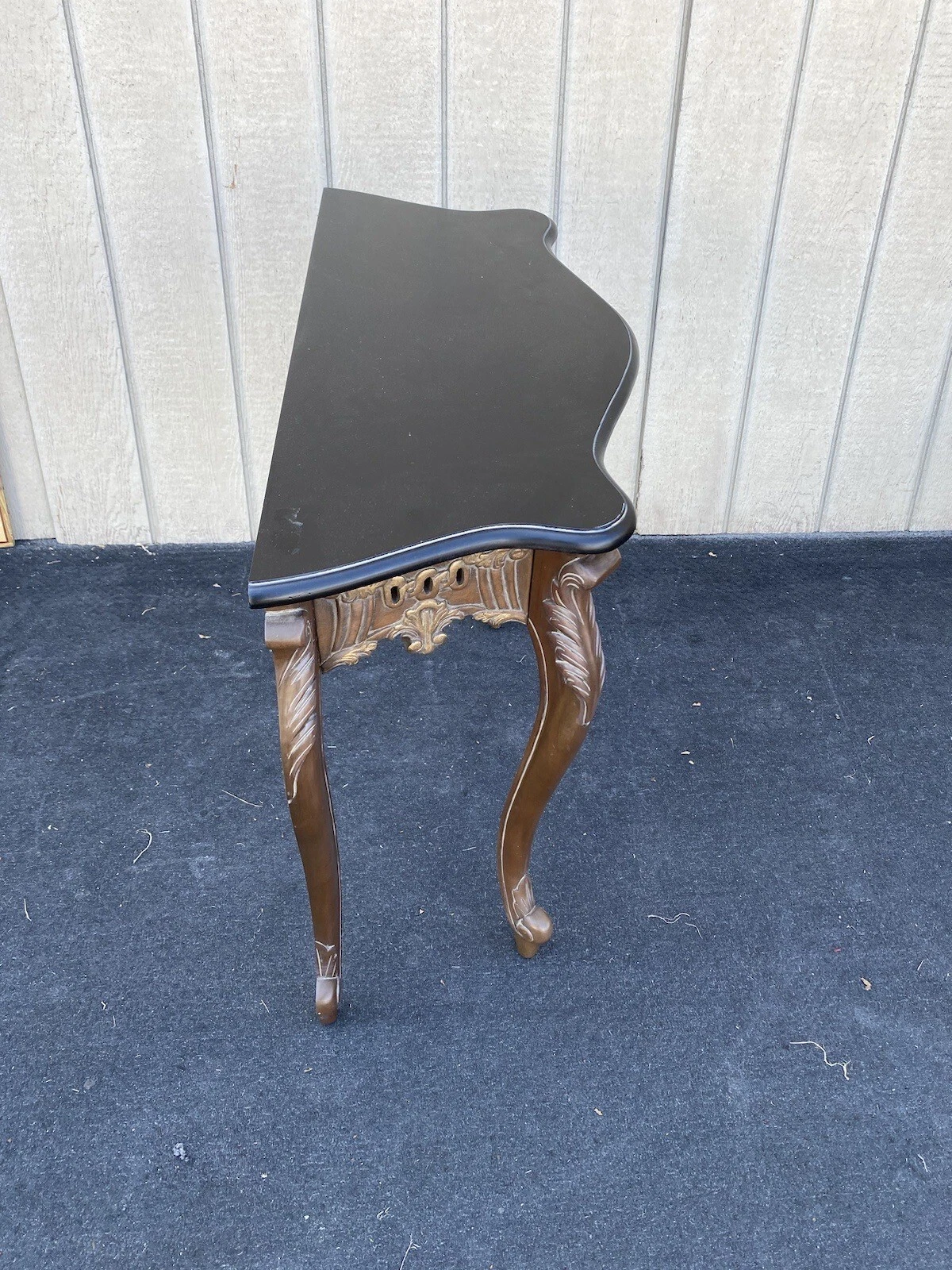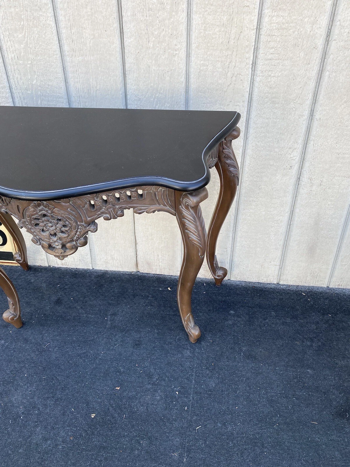 This exquisite carved mahogany console table captures the essence of Louis XV elegance, blending timeless craftsmanship with a touch of modernity. The stunning marble top, with its unique veining, offers a striking contrast to the intricately detailed mahogany base, showcasing the artistry of skilled artisans. Its graceful silhouette and rich wood tones make it a perfect centerpiece for your entryway or living space, inviting warmth and sophistication into your home. A beautiful reminder of refined design, this console table is not just a piece of furniture; it’s a conversation starter steeped in character.
