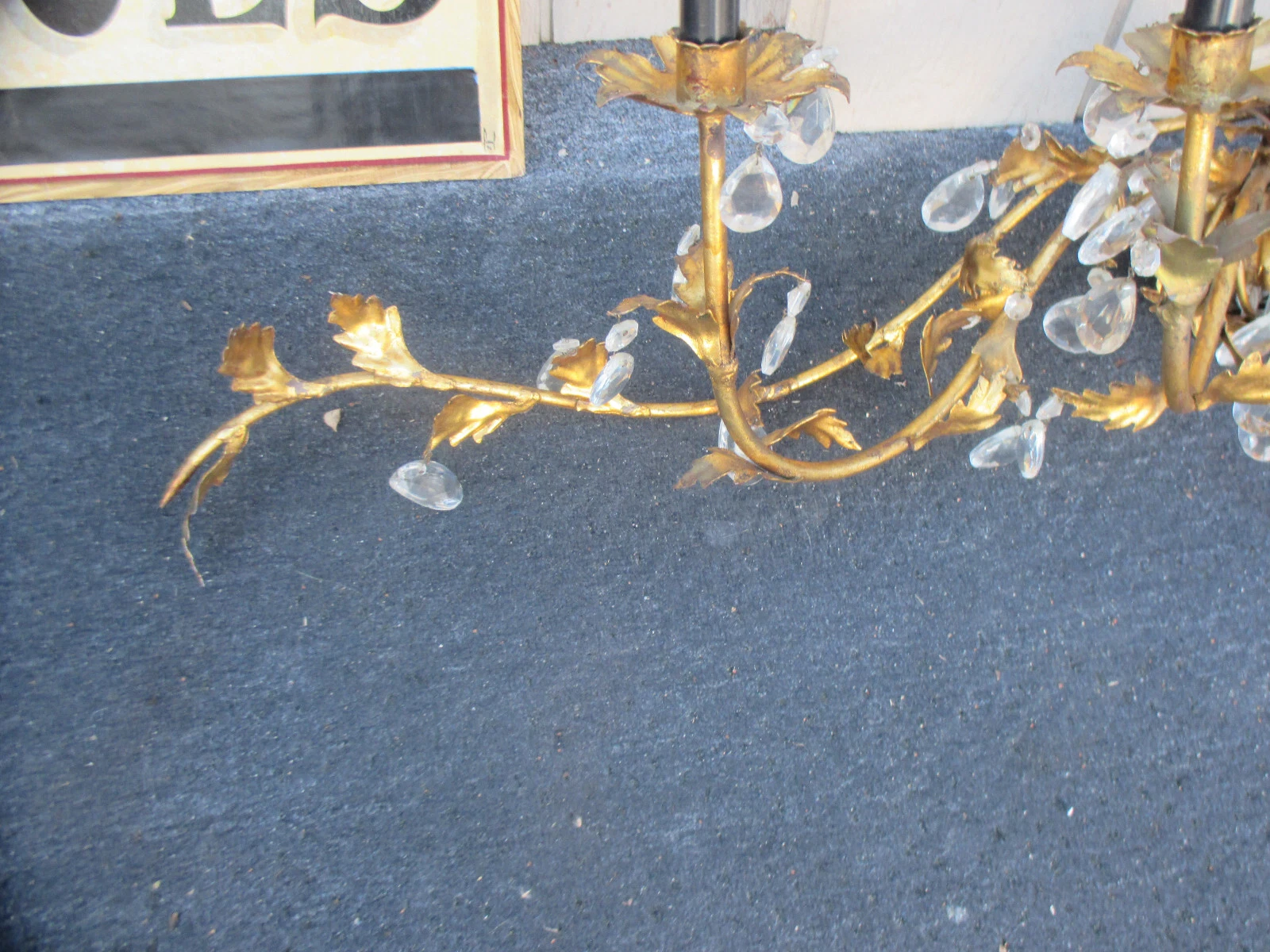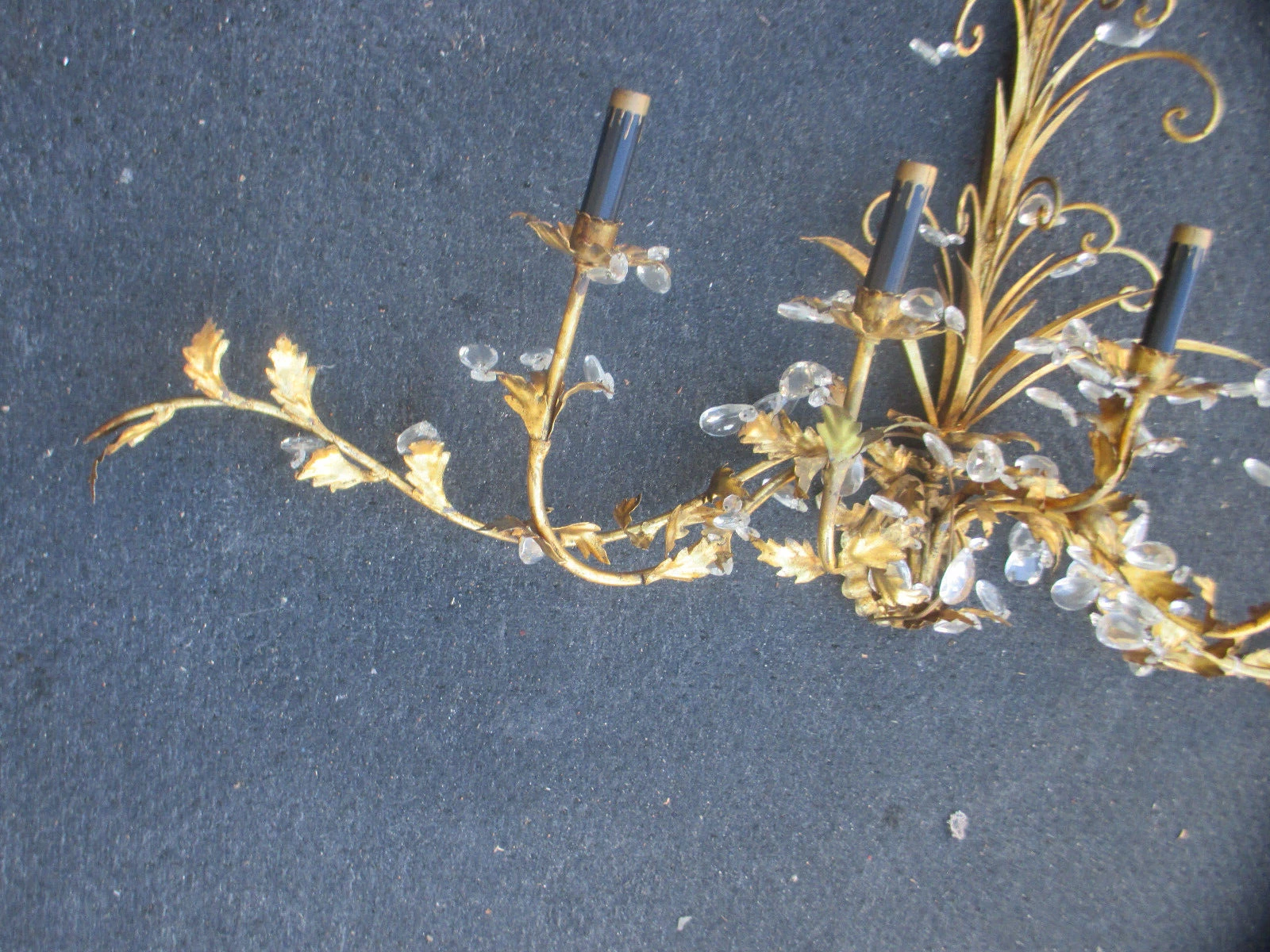 Illuminate your space with this striking Mid Century decorator wall sconce, a vintage original from the 1980s that effortlessly combines elegance and charm. Handmade with care, its lustrous gold finish beautifully complements the delicate prisms that catch and refract light, creating a warm and inviting ambiance. This piece not only showcases exceptional craftsmanship but also serves as a delightful conversation starter, making it a perfect addition to any home seeking a touch of mid-century flair.