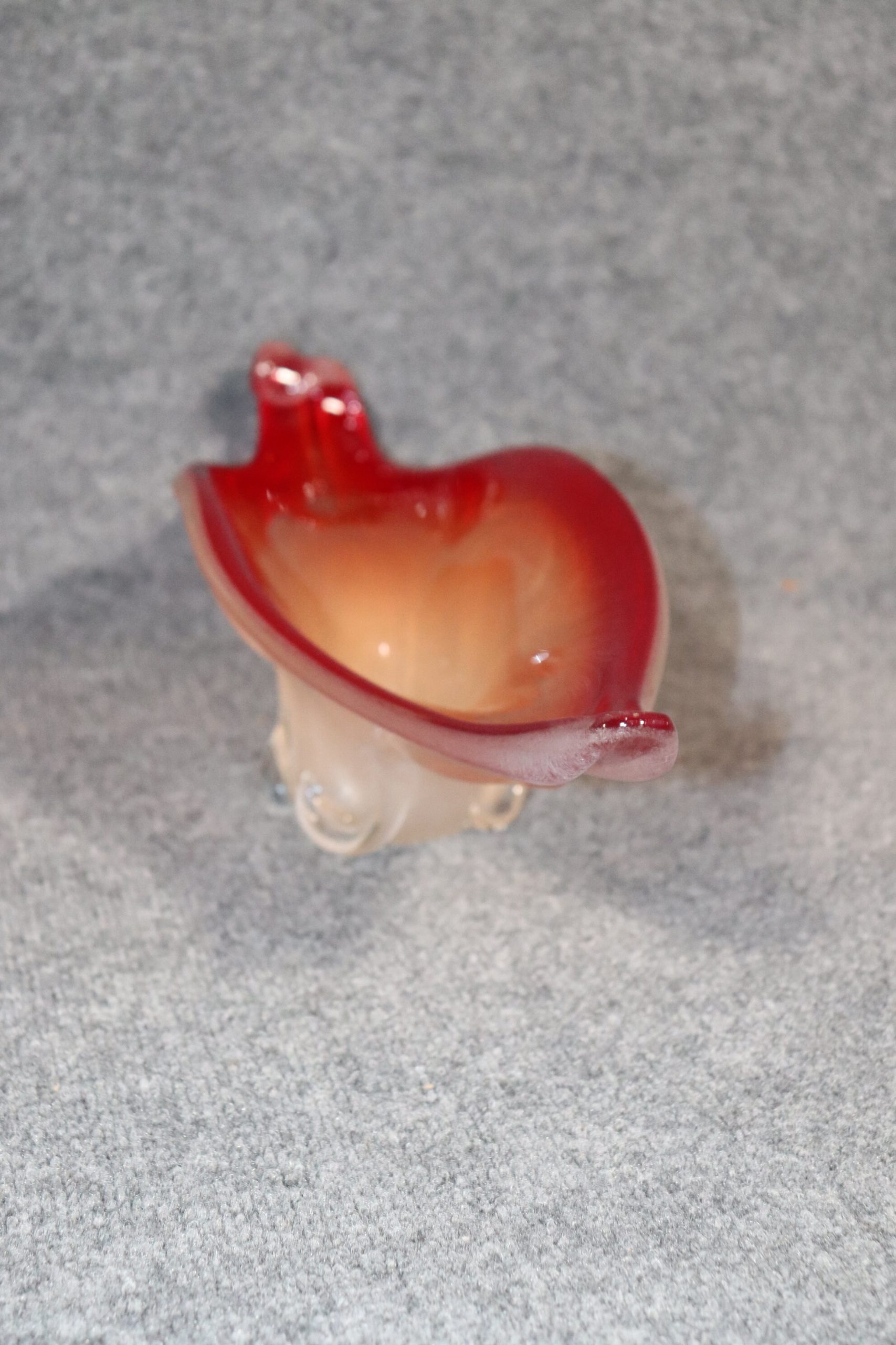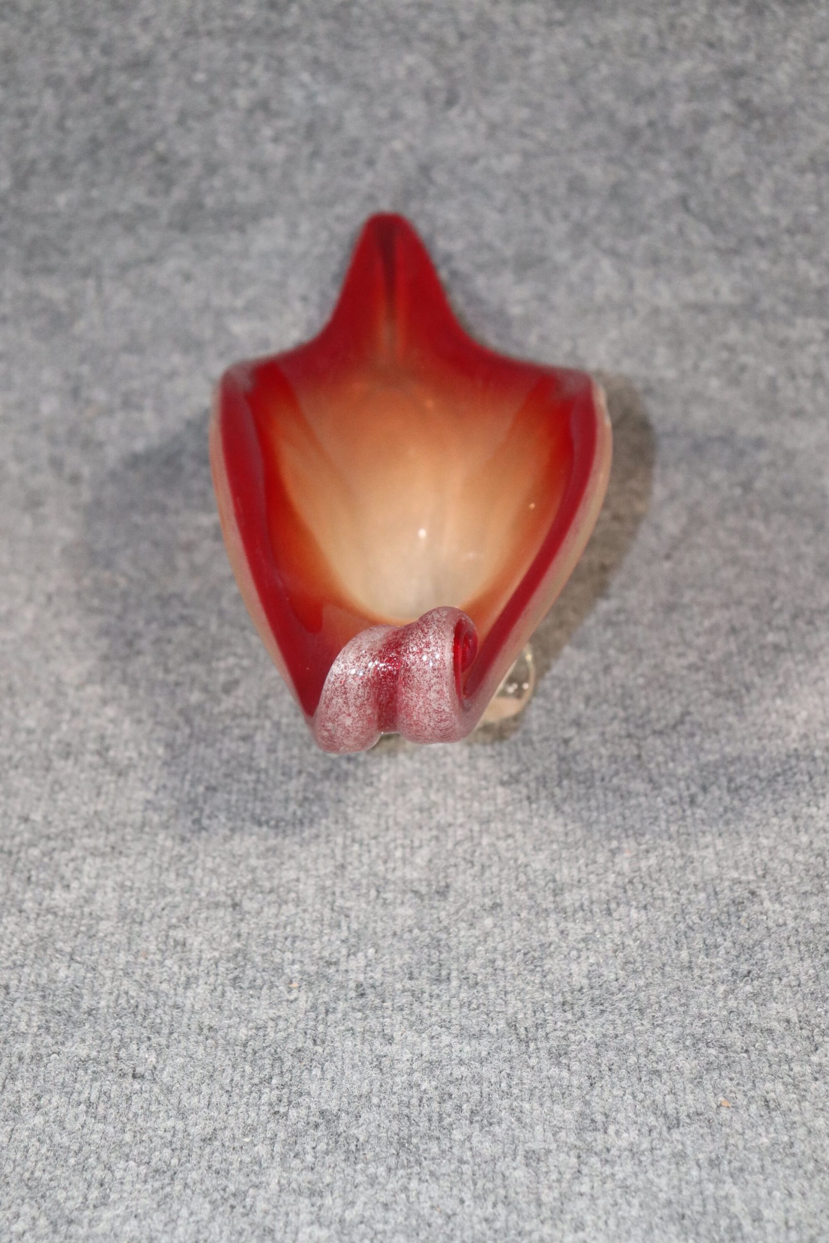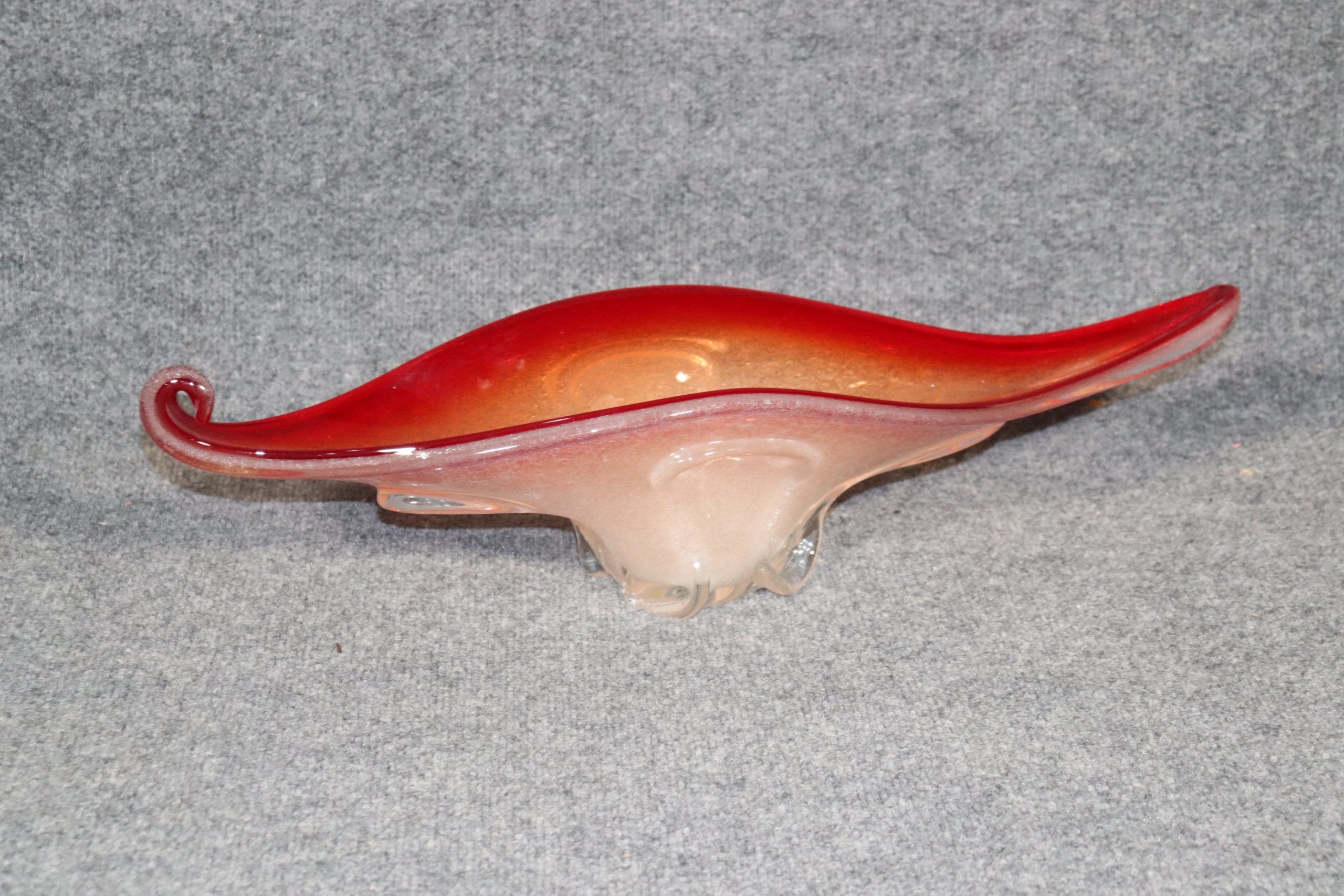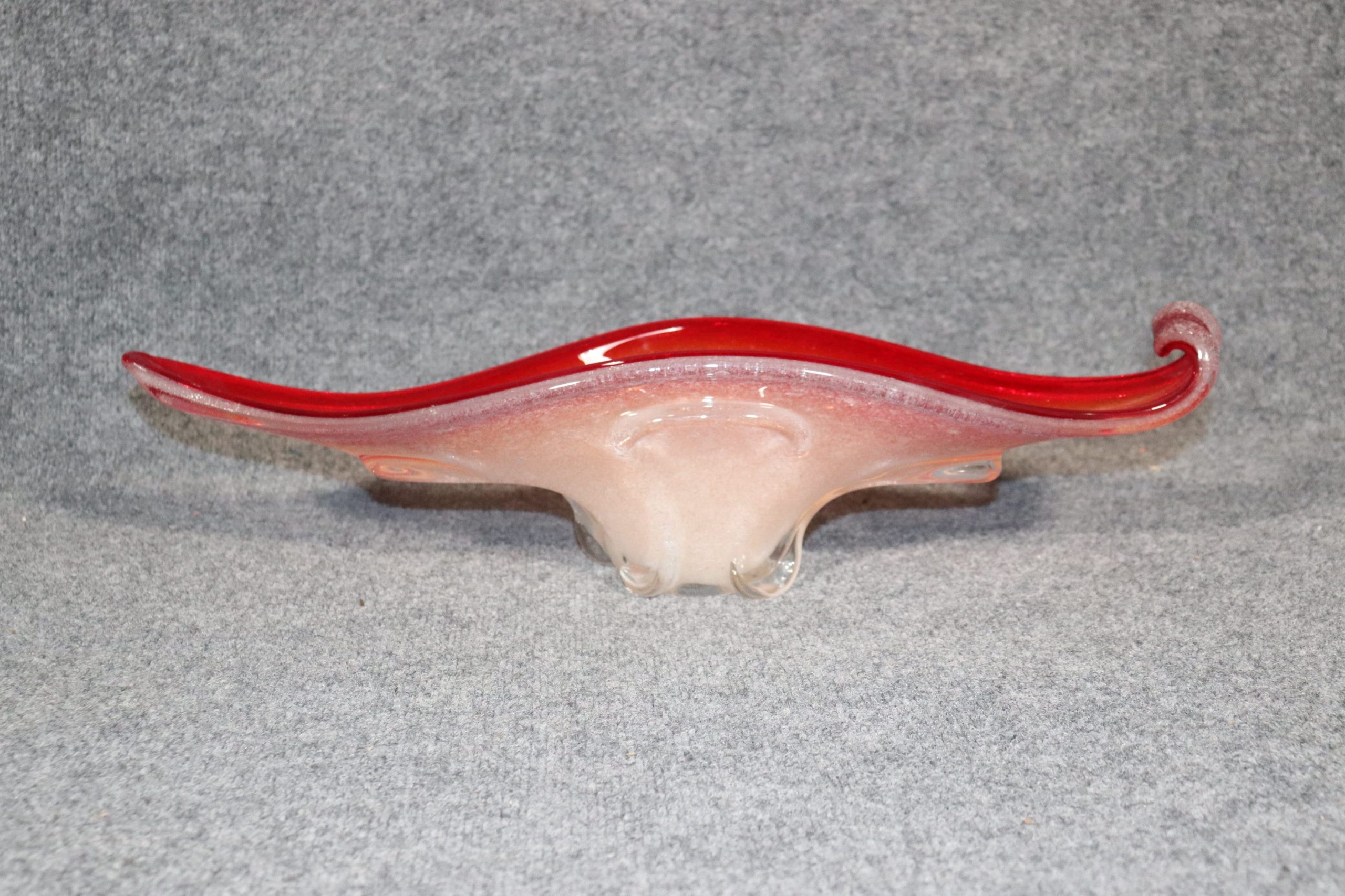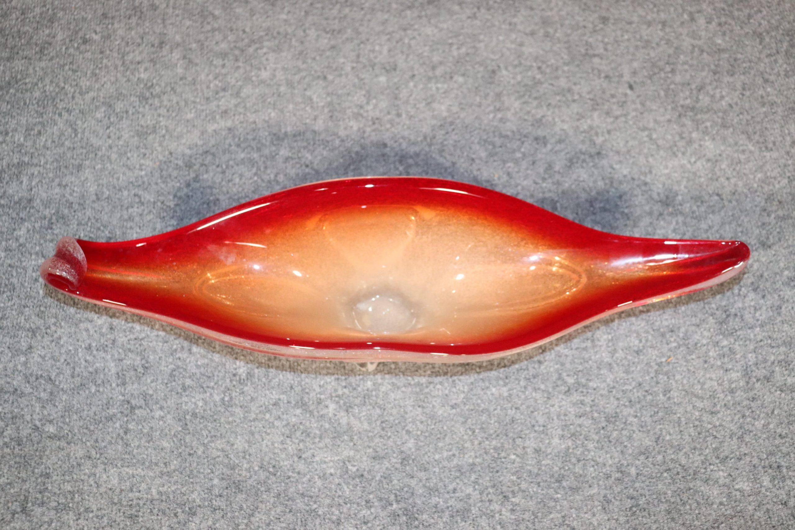 This Mid Century Modern MCM Beautiful Italian Murano Glass Red Bowl Centerpiece is an Incredible example of some of the fine work that Murano Produced. The size and colors of this piece make it a rare commodity. This vase will look great in any Home or office used as a decor piece! If you look at the photos provided you’ll see the intricate flow of detail throughout the piece as well as the intriguing design! The piece is in good vintage condition with minor light surface scratches but otherwise good condition