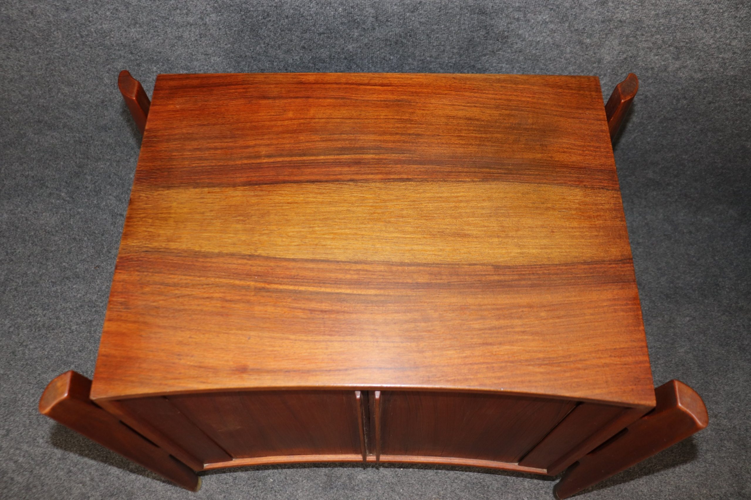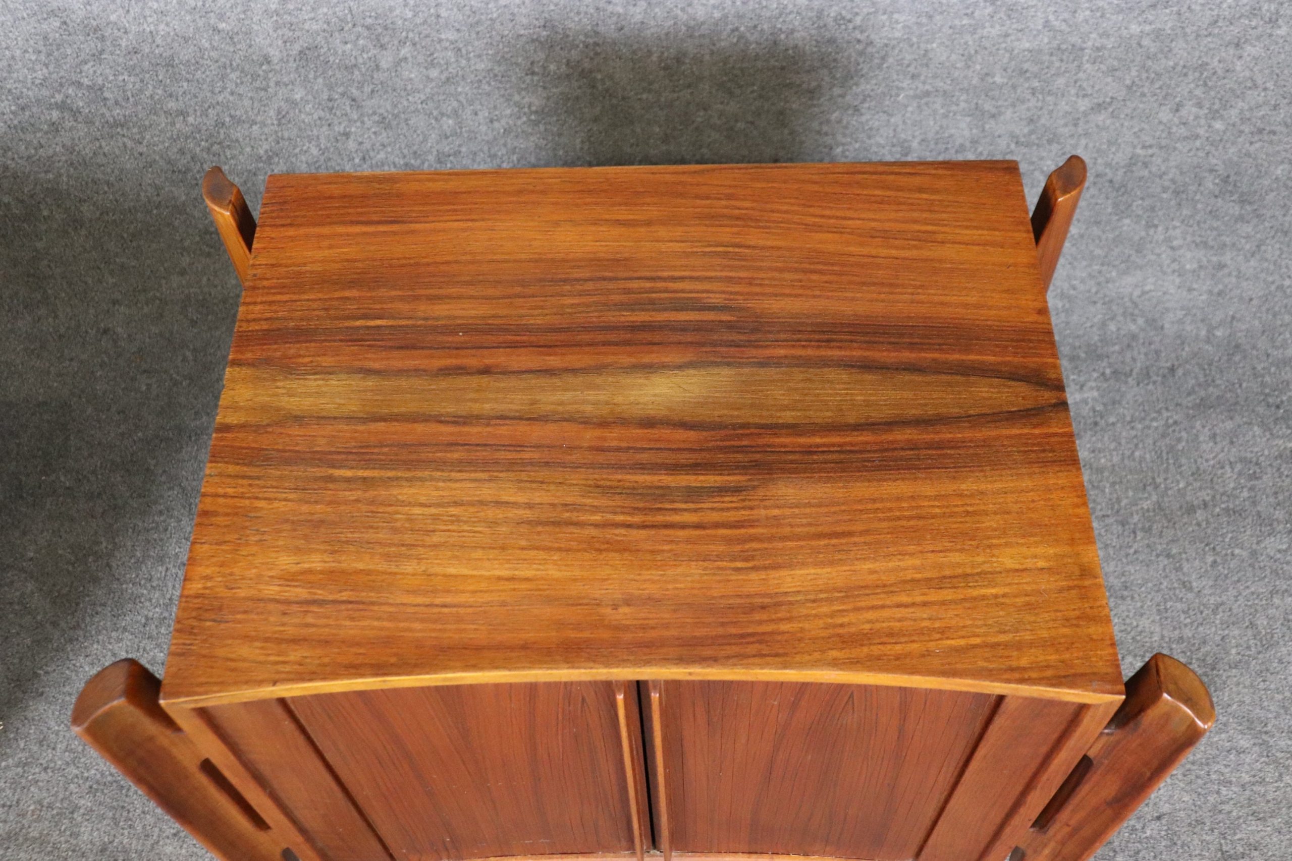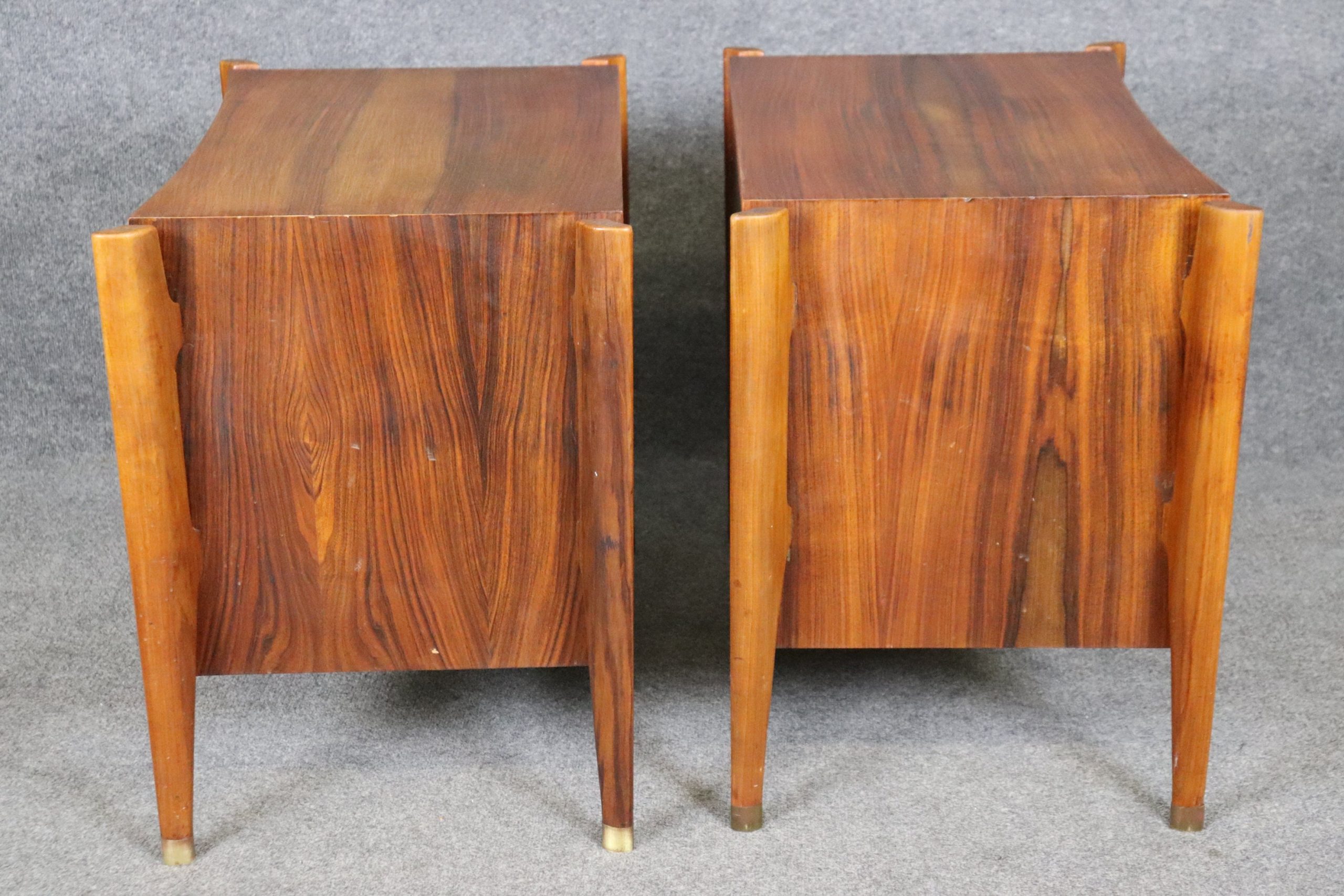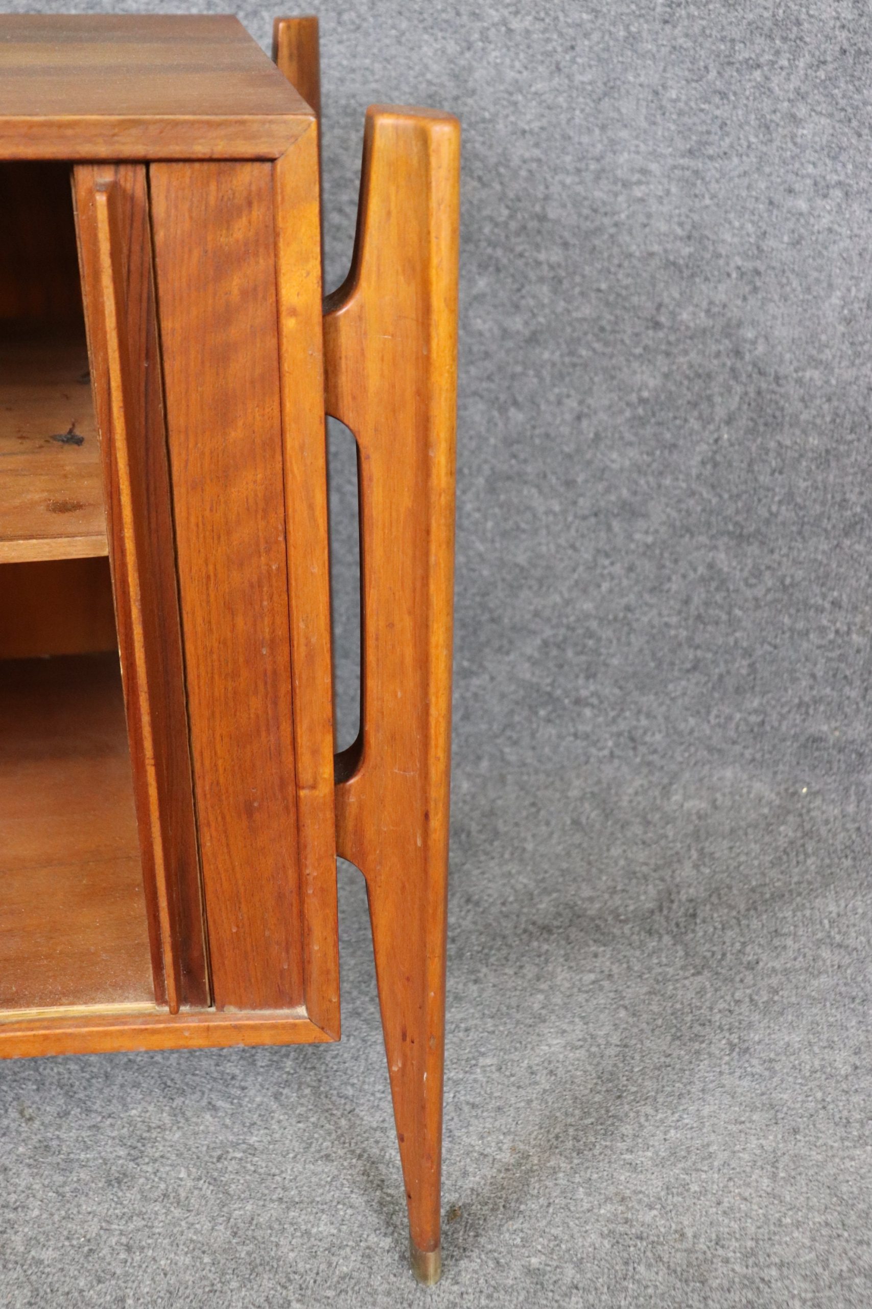 This outstanding pair of Mid Century Modern exoskeleton nightstands by William Hinn is made of the highest quality! These pieces will certainly bring a sense of sophistication and luxury into your MCM home or place of choosing! The nightstands have 2 tamber front sliding doors containing 1 shelf, perfect for storing your personal belongings all while keeping them safe and out of reach! Antique furniture and vintage pieces have stood the test of time and this pair of nightstands is no exception! With their quality materials and great craftsmanship this pair is bound to last you and your family for many years to comeThe nightstands are in great vintage condition and have some minor surface scratches.