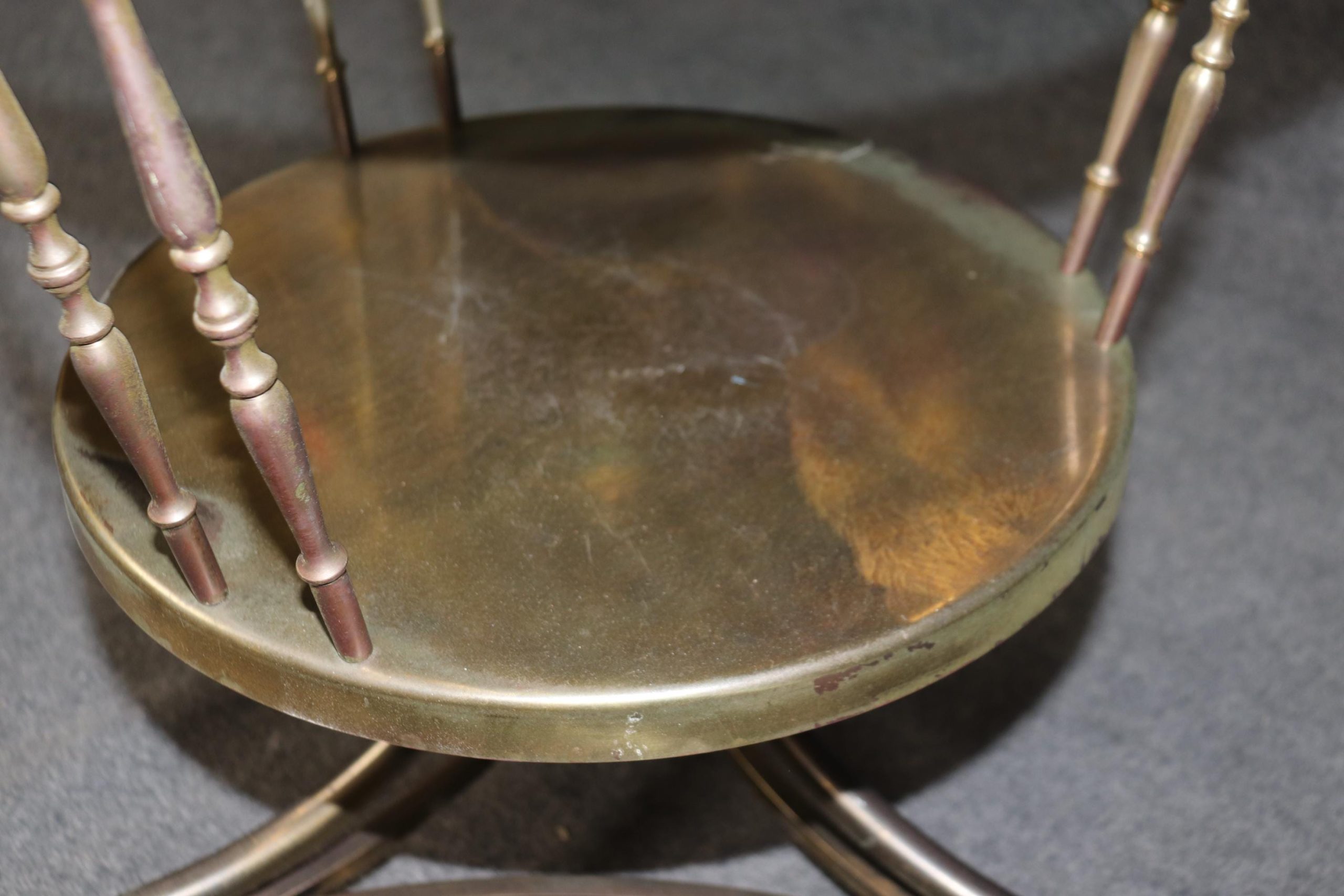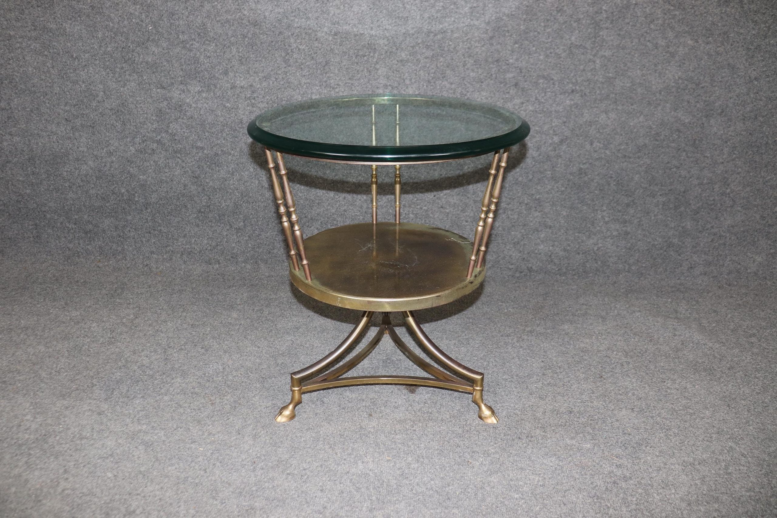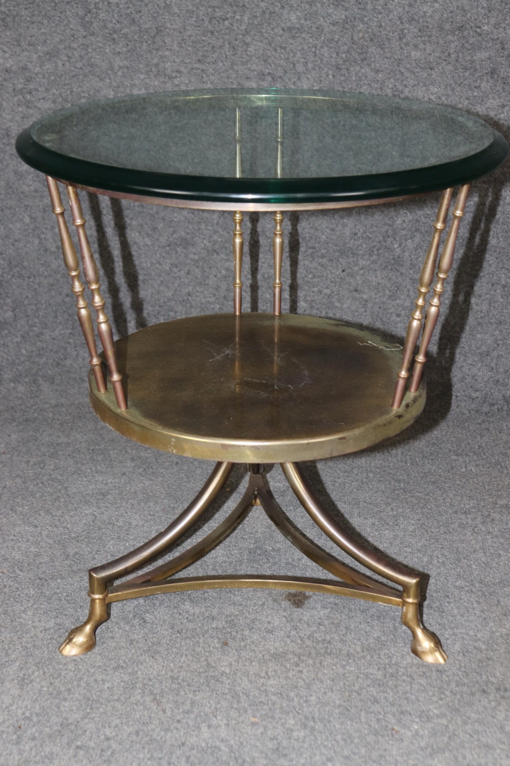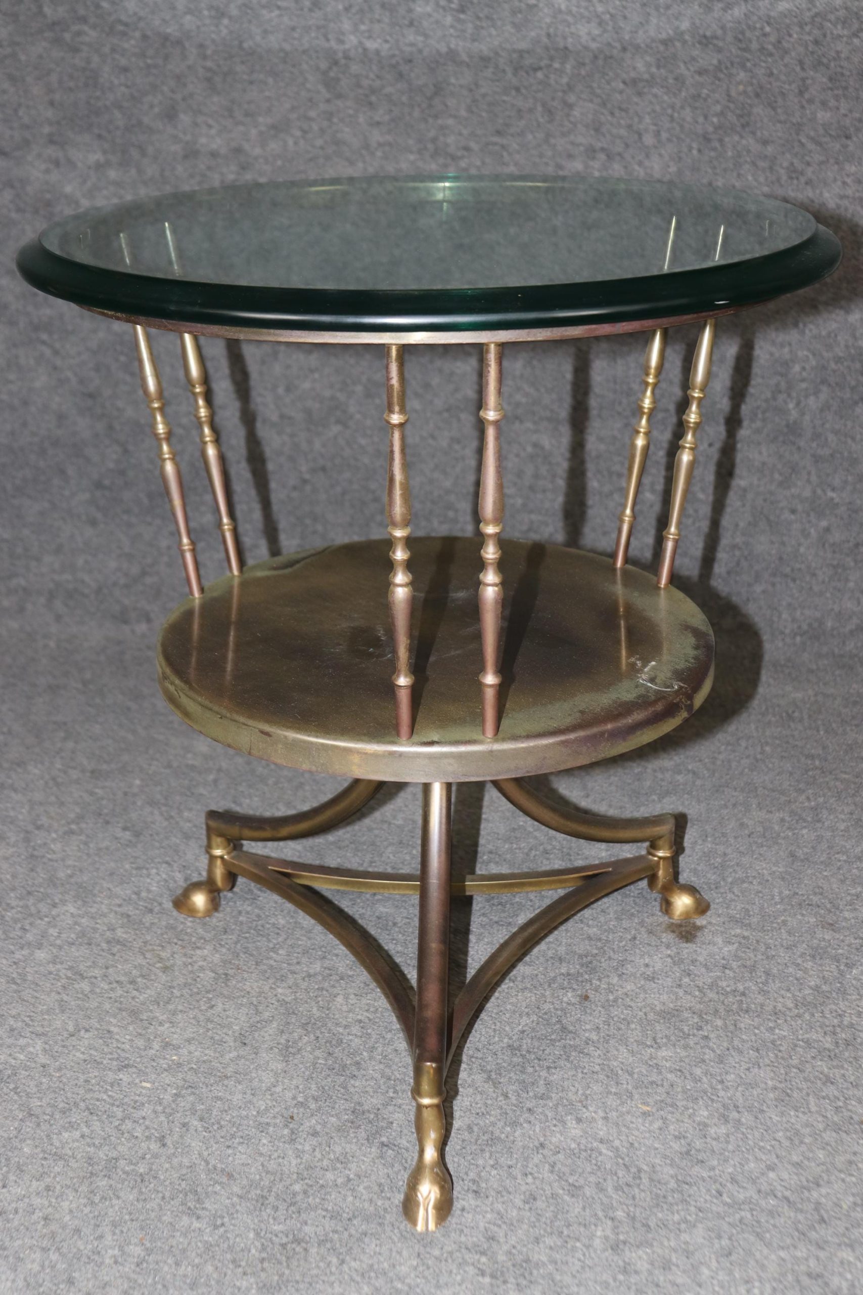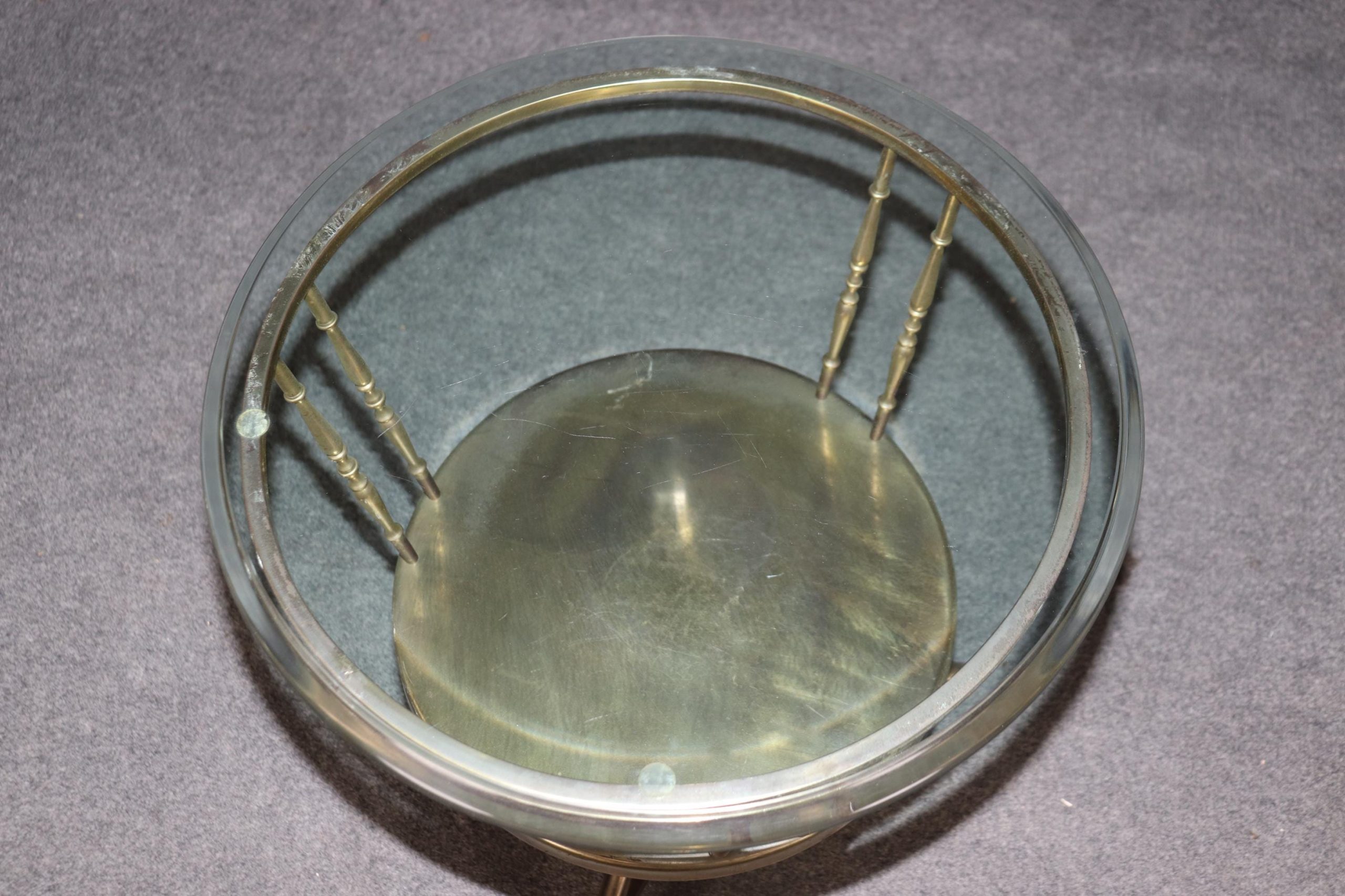 This Hollywood Regency style revolving end table is a great example of Mid Century furniture and decor! This piece is bound to bring a sense of minimalistic luxury and modernism into your home or place of choosing and is perfect for any living room, bedroom, bathroom or office! This piece will have your guests mesmerized by its design and will surely be a topic of conversation! One nice feature of this piece is the fact that it can be used on a daily basis or it can be used as a decoration piece if you desire. Antique furniture and vintage pieces have stood the test of time and this table is no exception! With its quality materials and great craftsmanship this piece is bound to last you and your family for many years to come. This piece is in good vintage condition with the exception of some light surface scratches and minor oxidation, as to be expected but otherwise good condition.