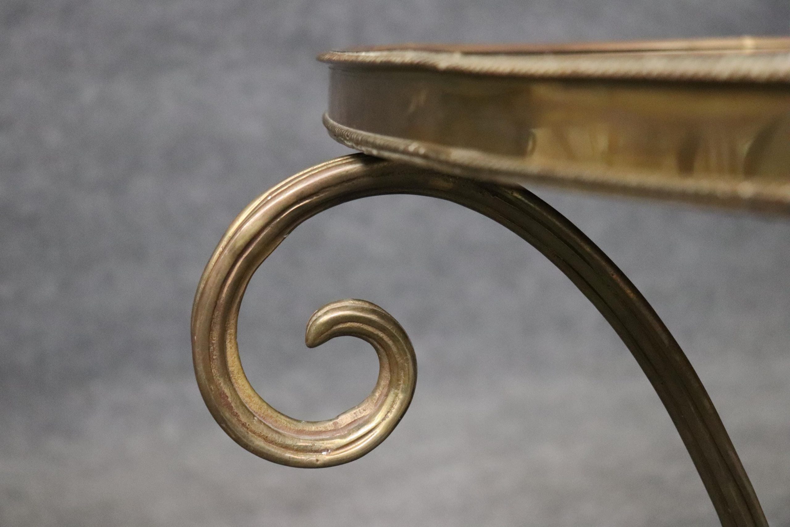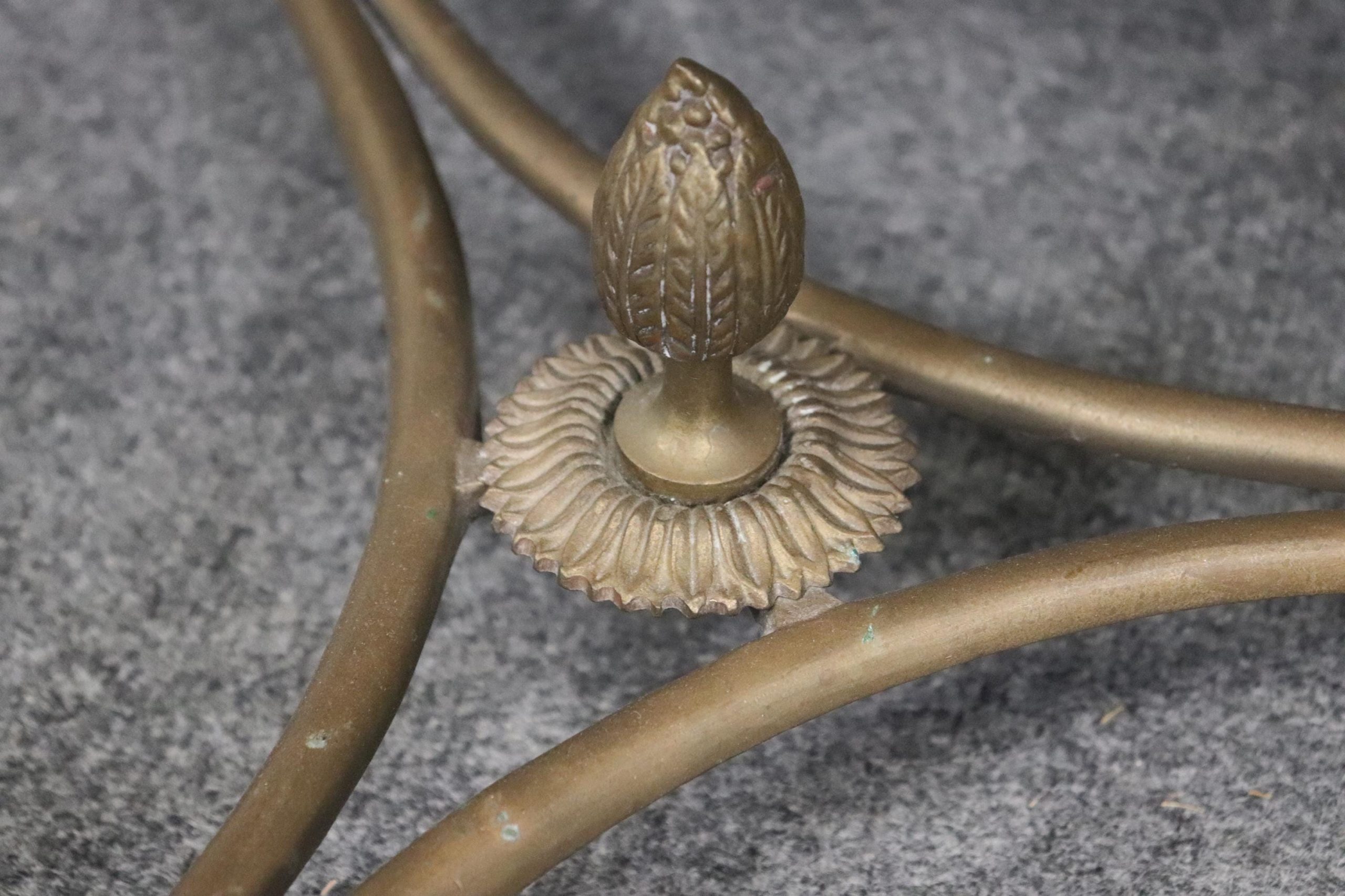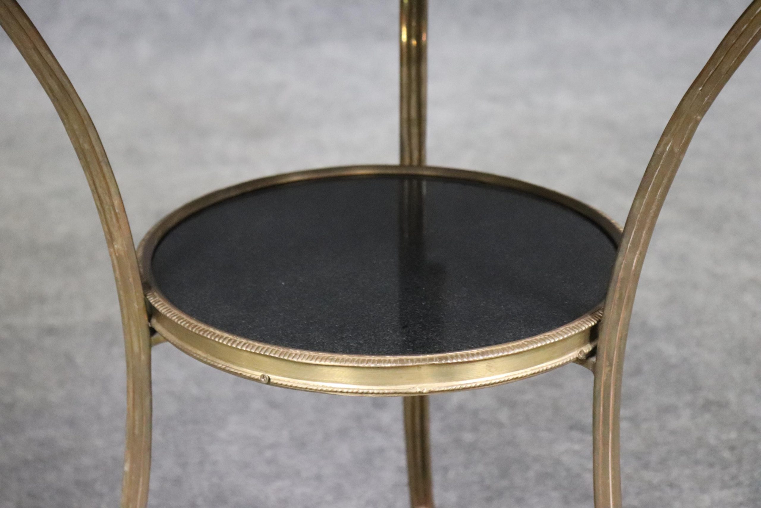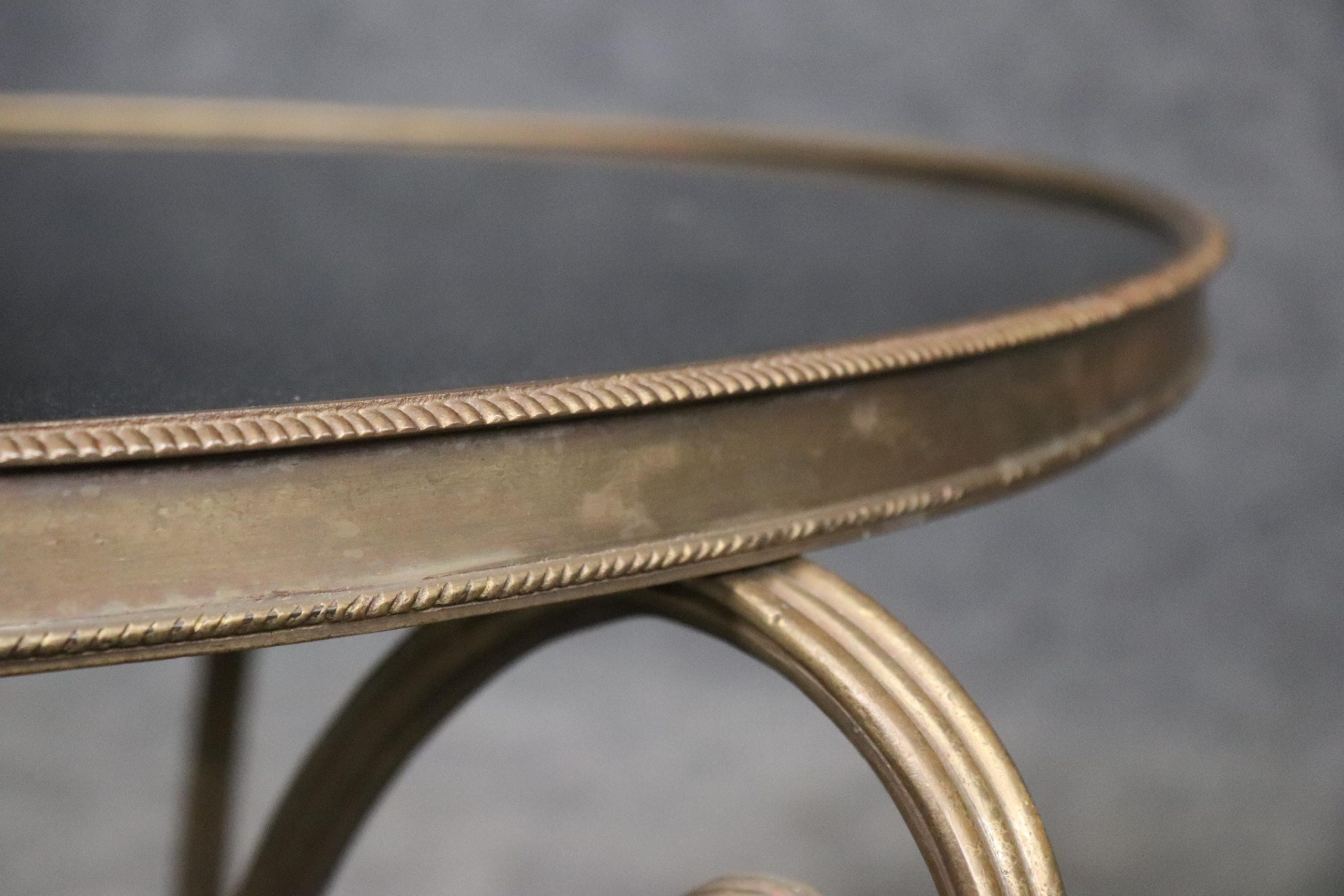 This mid century pair of Regency style bronze marble to gueridons packs a big punch! This pair of gueridons is made of the highest quality and is perfect for you and your home or place of choosing. This pair is perfect to be used as a pair of end tables or side tables for your living room, or they can be used on each opposing side of an entry way as accent tables and can also be used as night stands if you’d like. A really nice quality about these tables is their ability to be paired with a variety of other styles you may already have in your home and will certainly be a conversation starter at your next gathering! Antique furniture and vintage pieces have stood the test of time and this pair of tables is no exception! With their quality materials and great craftsmanship this pair is bound to last you and your family for many years to come. The pair is in good vintage condition with light surface scratches and some minor oxidation to the base as to be expected with items of age but otherwise good condition.
