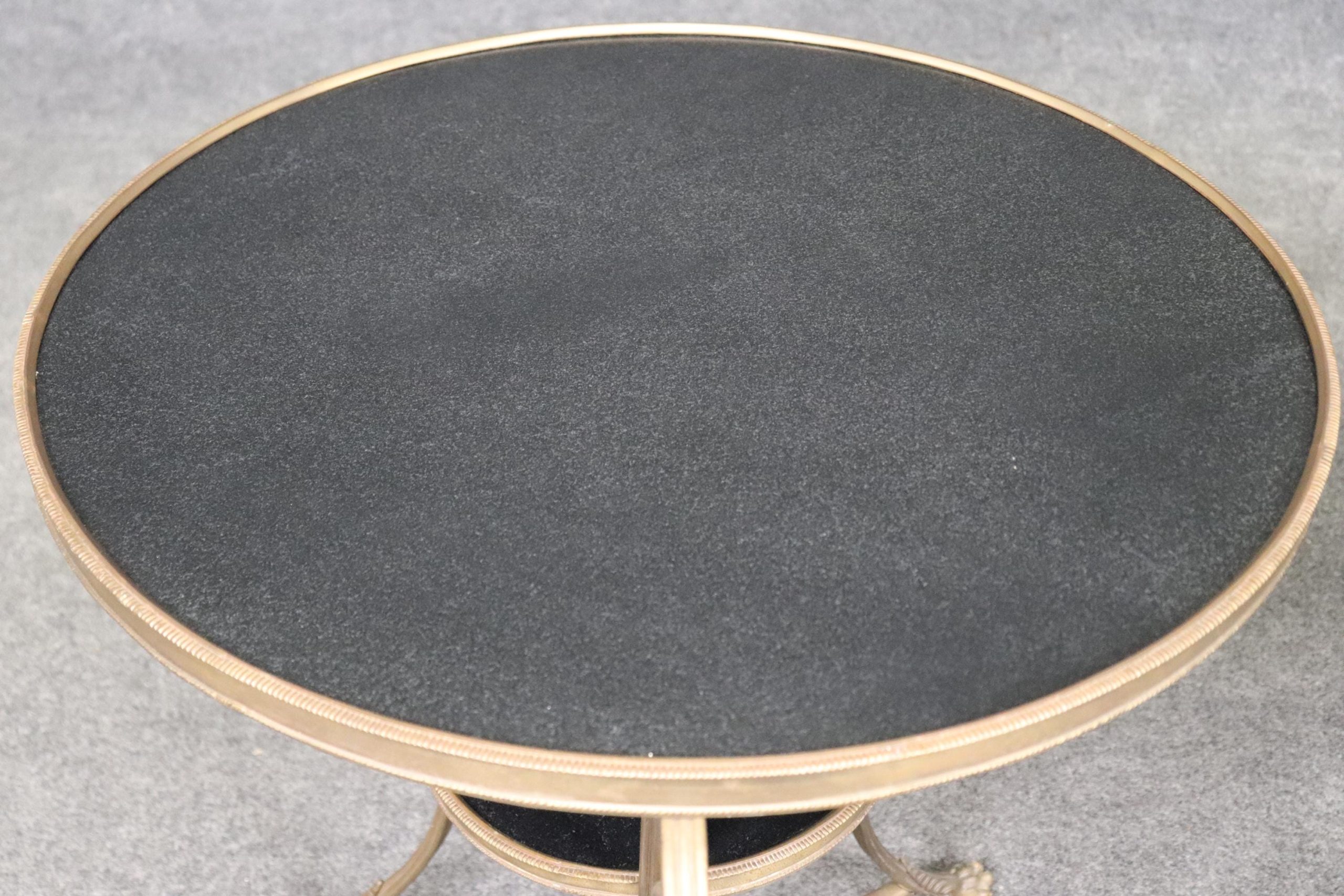 Mid Century Regency Bronze Marble Top Side Tables with Paw Feet