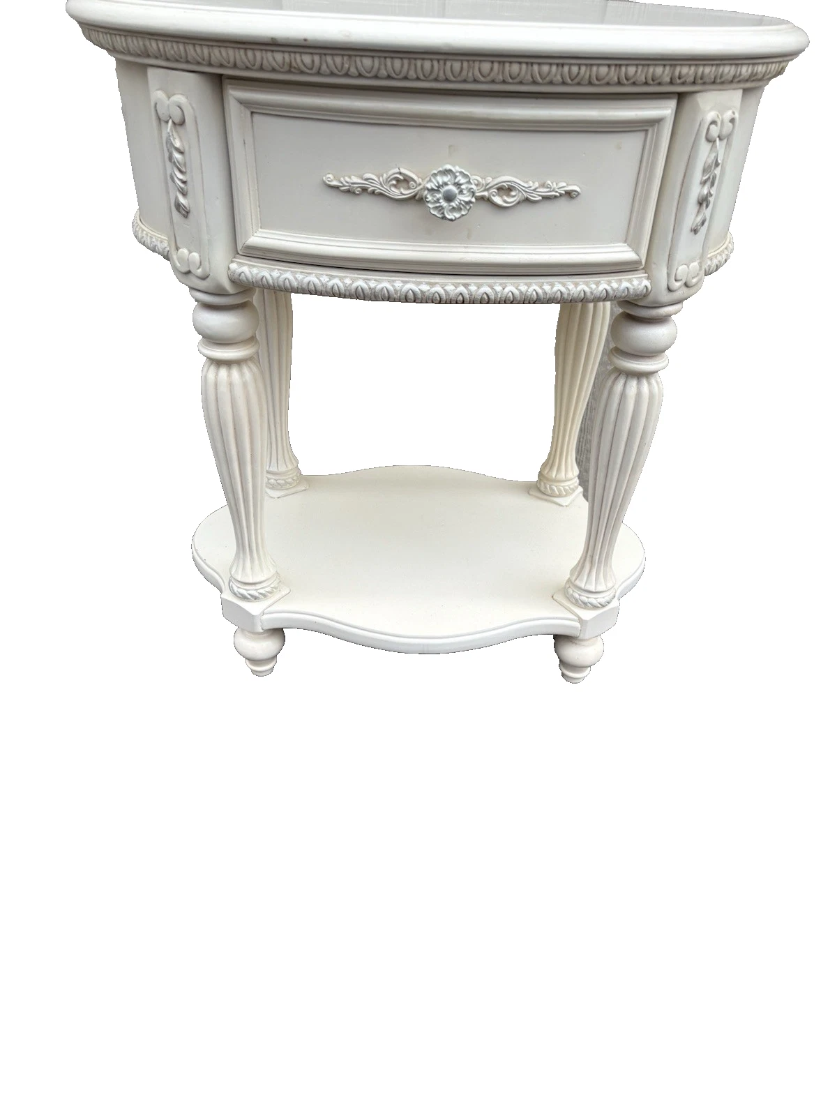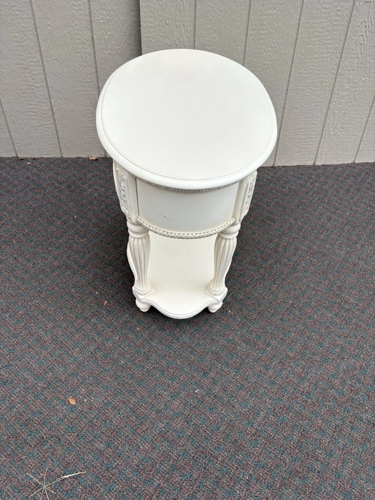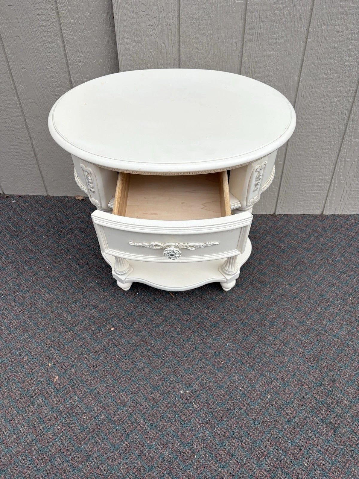 This charming modern nightstand exudes a crisp, clean aesthetic, perfect for contemporary spaces while offering a touch of warmth. Crafted in the United States around 2010, its sleek white finish enhances its versatility, allowing it to blend seamlessly with various decor styles. The single drawer offers convenient storage, while the fully assembled design ensures you can enjoy its beauty right away. This piece not only serves a functional purpose but also adds a refreshing brightness to your room, making it a delightful addition to your home.