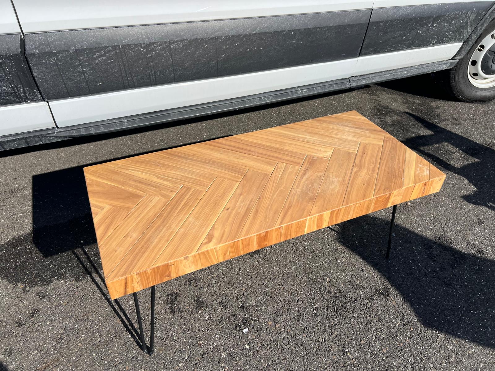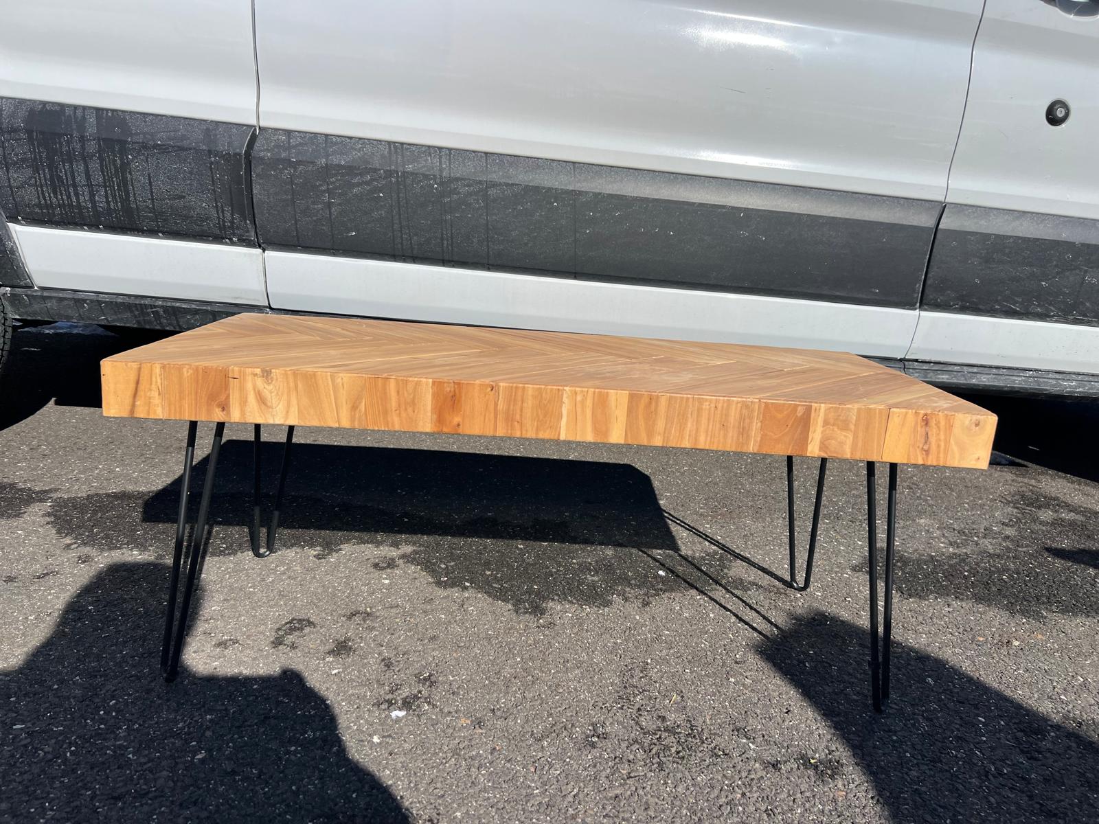 Modern Herringbone Wood Coffee Table with Hairpin Legs
