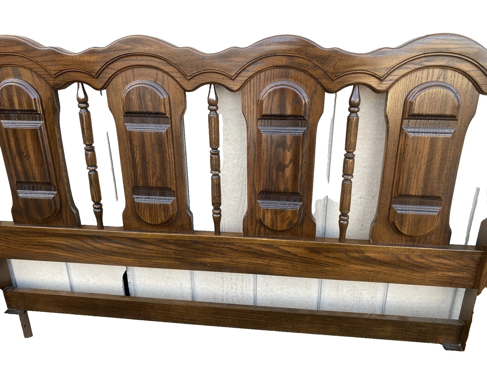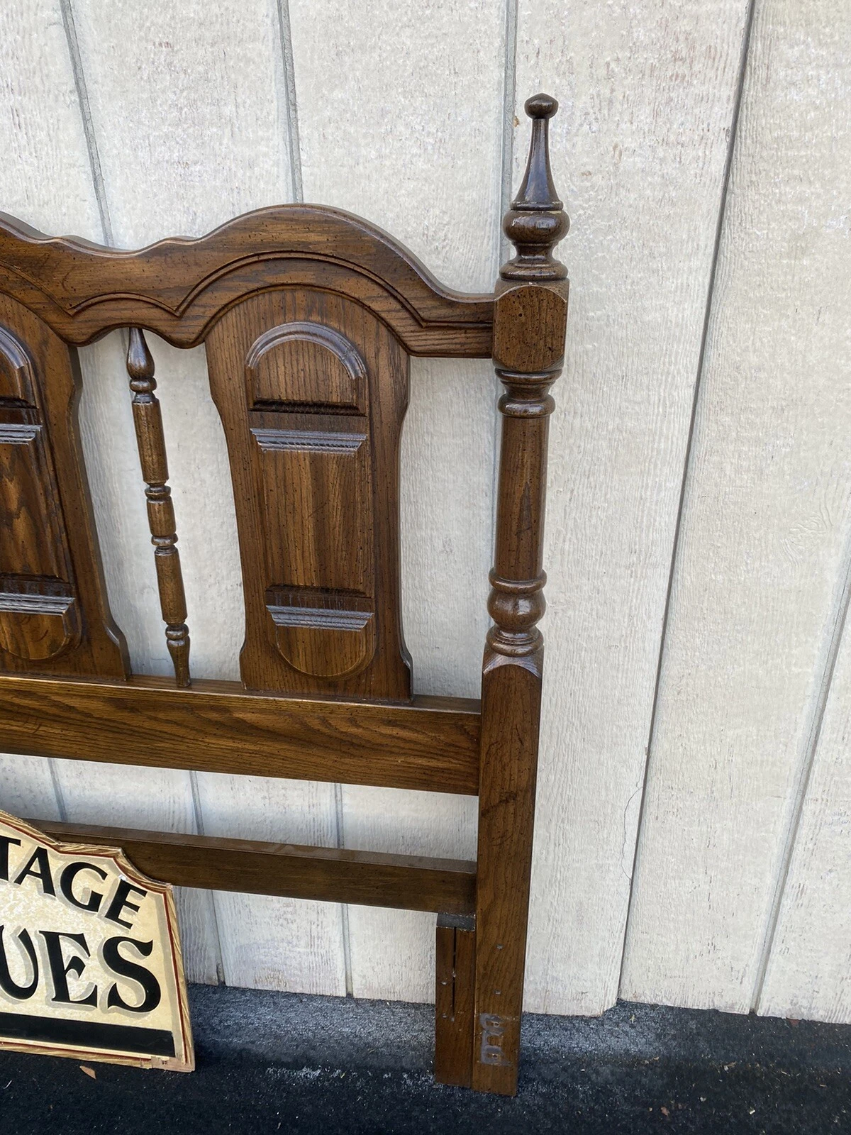 This modern oak headboard, crafted in the United States post-1950, beautifully marries simplicity and functionality, making it an ideal addition to both full and queen size beds. Its clean lines and warm oak finish exude a timeless charm, while the sturdy construction ensures lasting durability. This piece reflects the quality craftsmanship that Center Stage Antiques is known for, inviting you to create a cozy and inviting bedroom space filled with character and style.