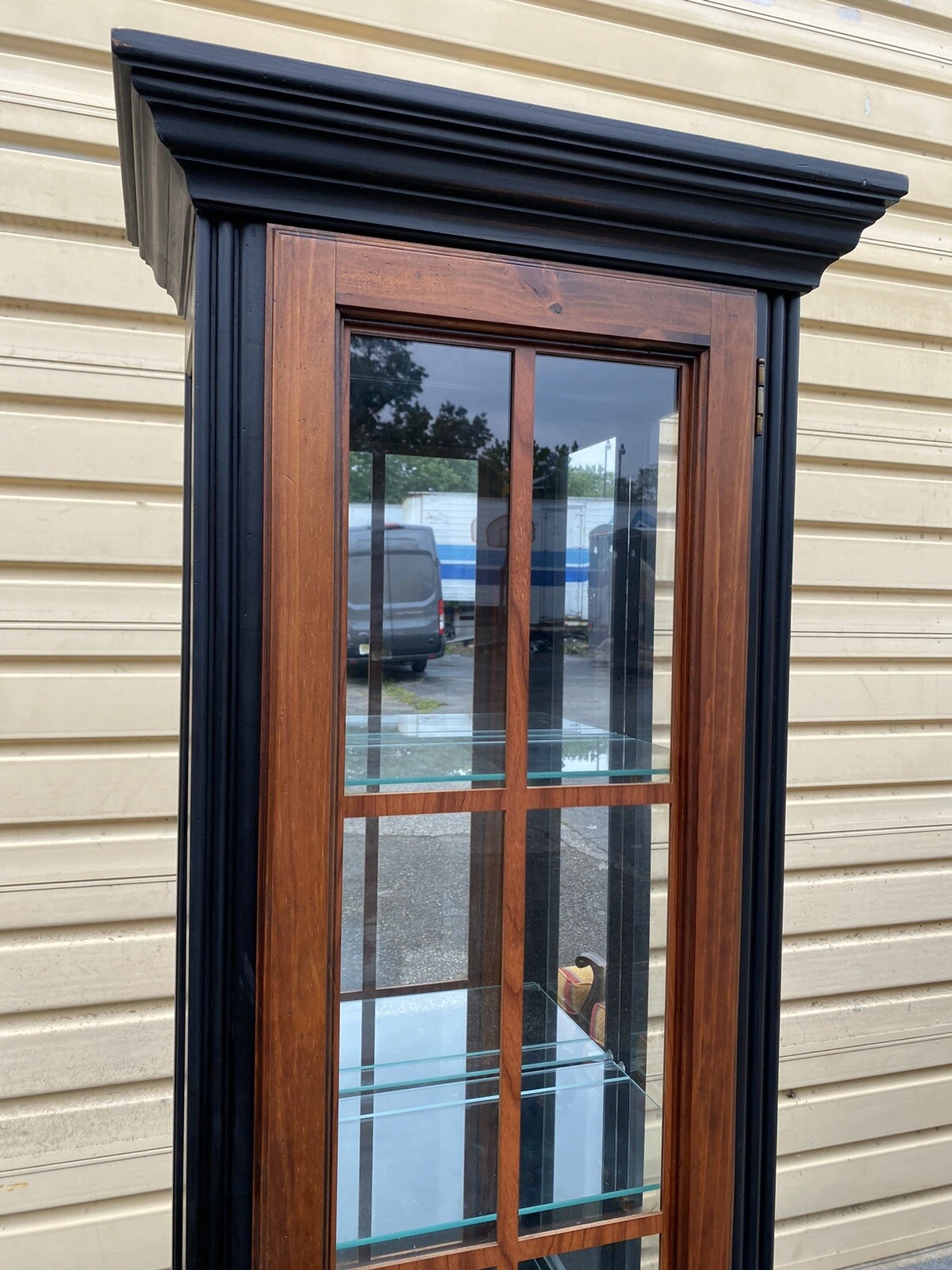 This striking modern curio cabinet by Pulaski Furniture beautifully marries form and function, showcasing your cherished collectibles in a stylish yet understated way. Handcrafted from rich wood, it features a single door and four spacious shelves, allowing your treasures to take center stage while providing a touch of refined elegance to any room. The cabinet’s clean lines and minimalistic design reflect the timeless appeal of post-1950s craftsmanship, making it an inviting addition to your home and a conversation starter for years to come.