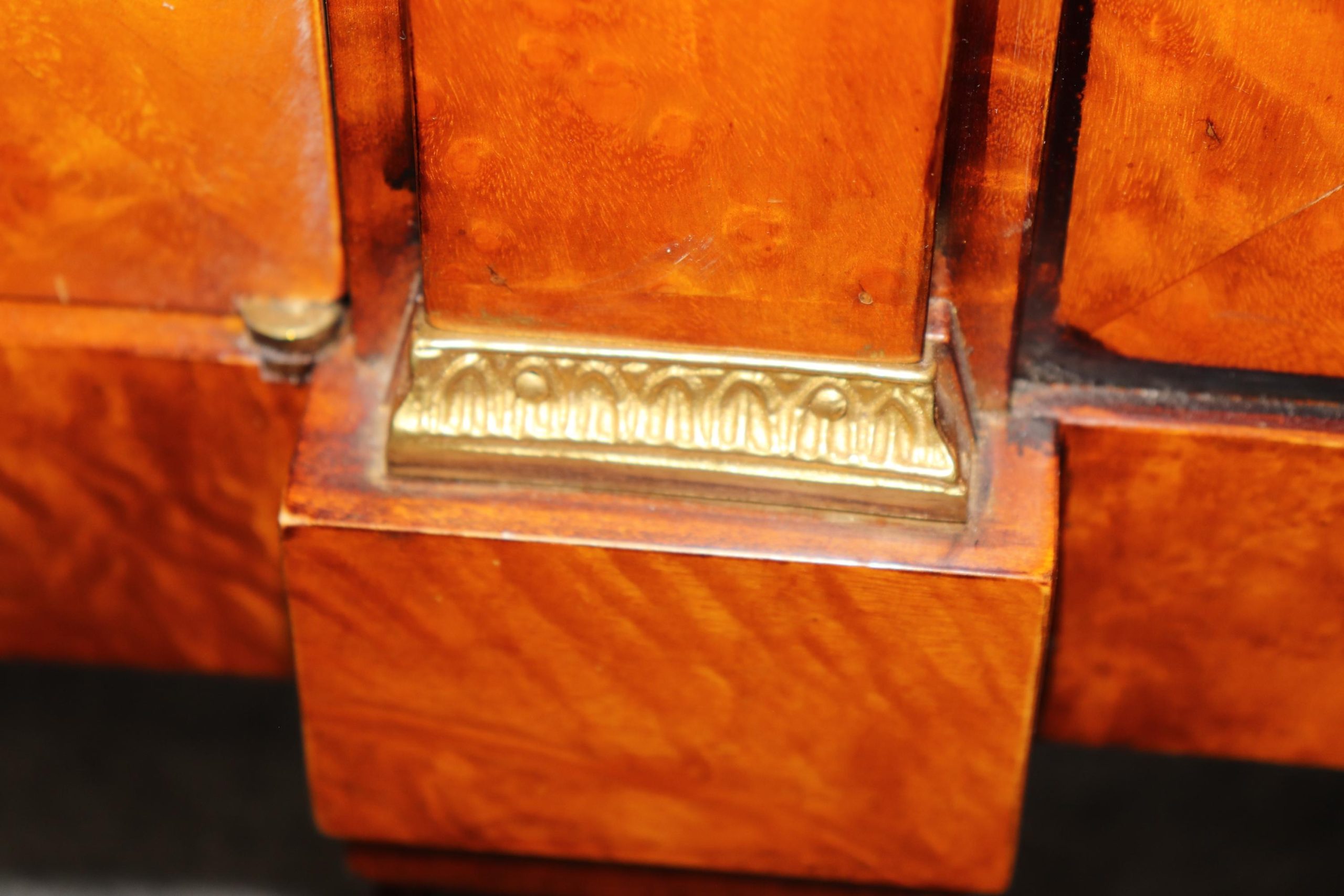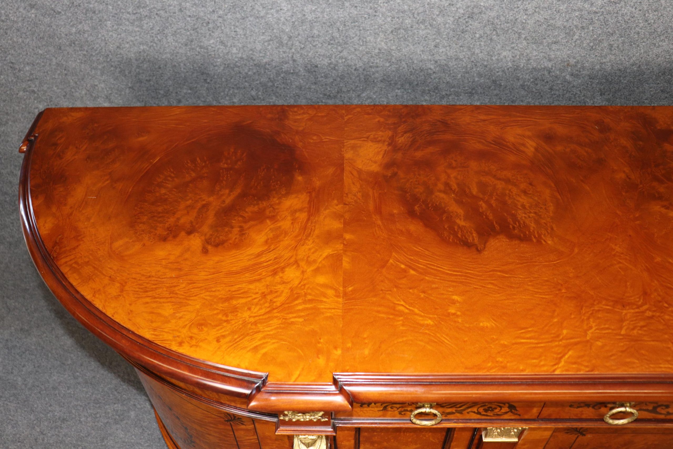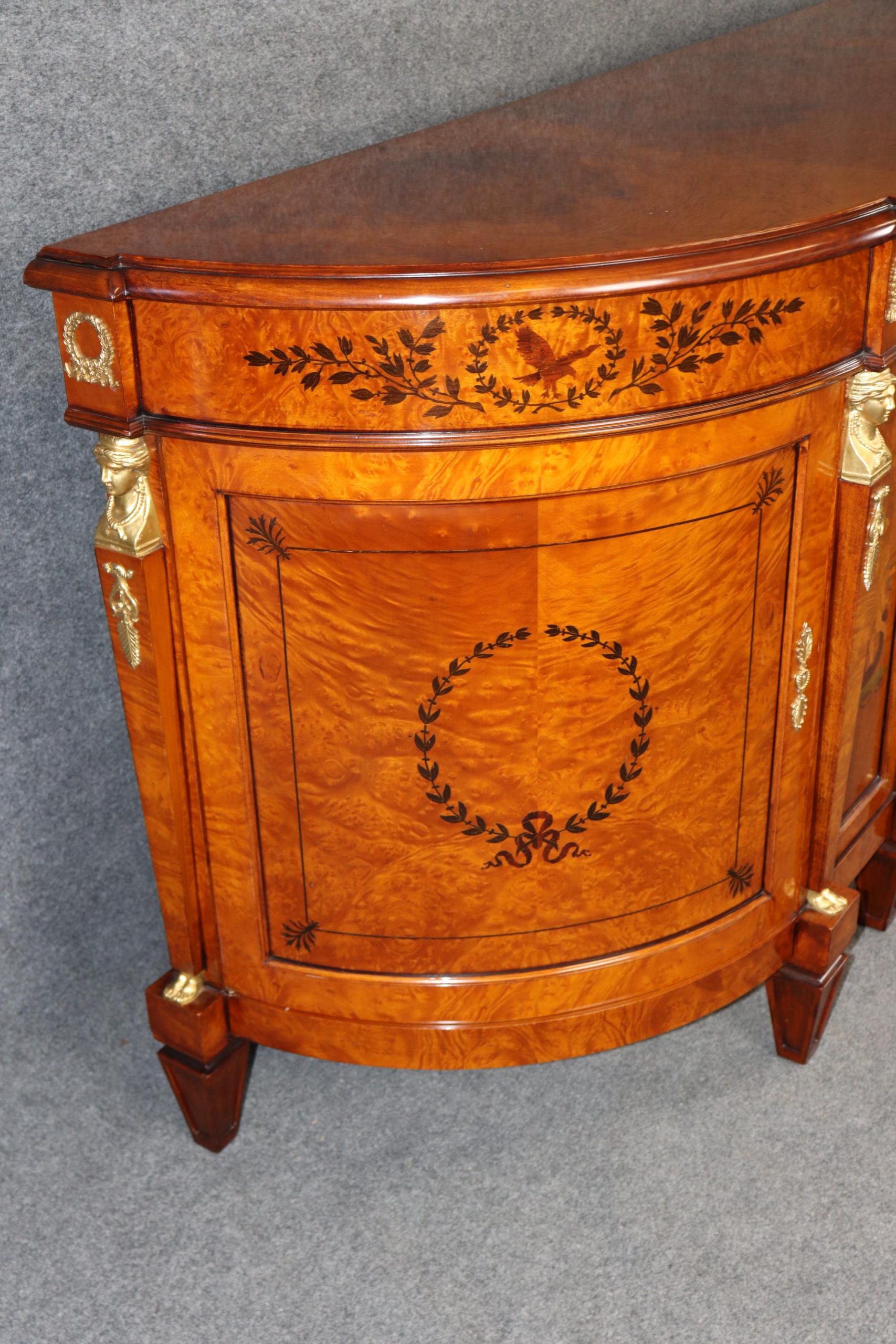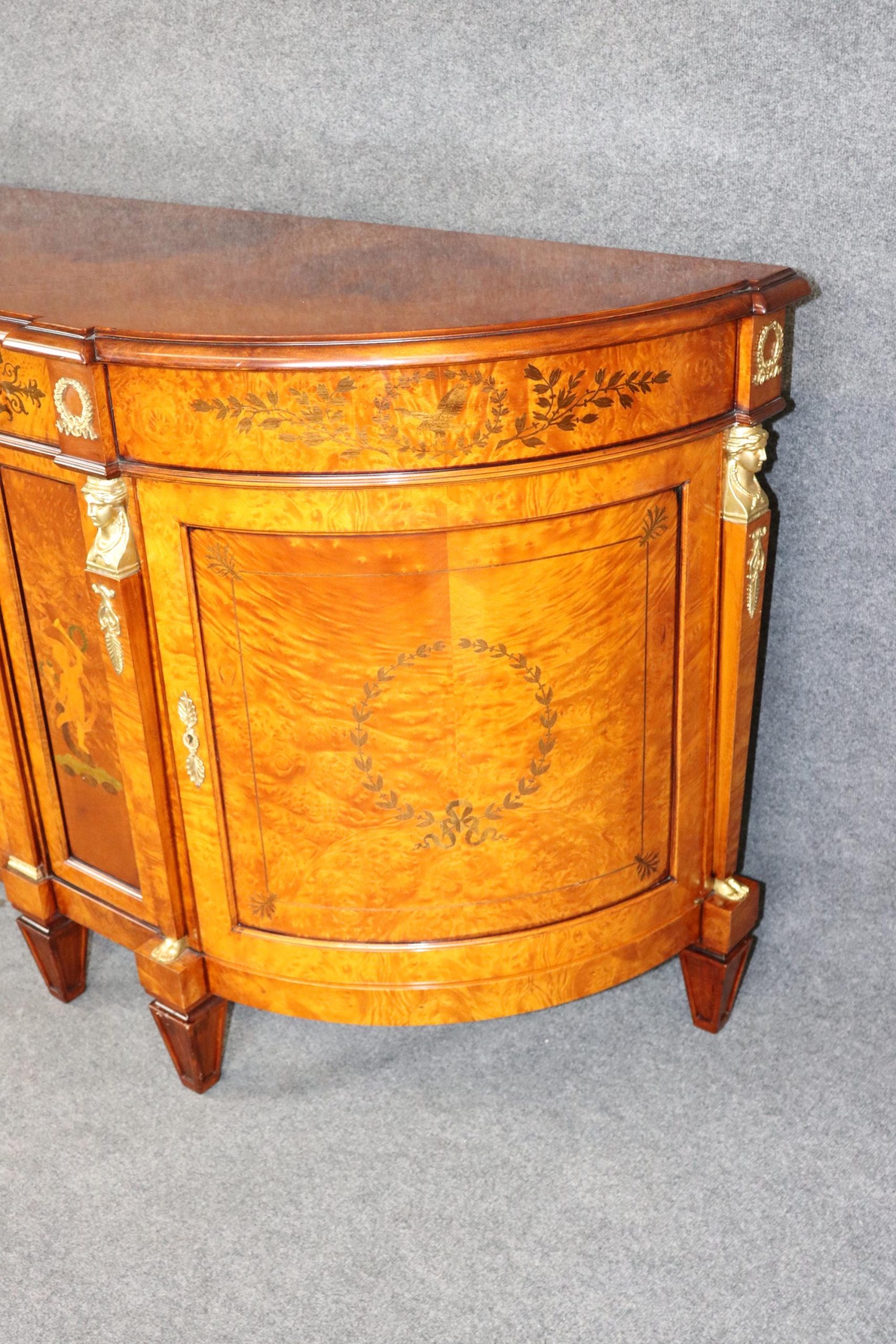 This vintage monumental Italian French Empire style sideboard by Rho Moili D’Epoca is made of the highest quality and is bound to bring a sense of class and luxury into your home or place of choosing! This piece has 3 doors that open to spacious storage areas each containing one shelf, perfect for storing away your personal belongings! This will definitely be a conversation starter in any entryway, living room, dining room or office. Antique furniture and vintage pieces have stood the test of time and this sideboard is no exception! With its quality materials and great craftsmanship this is bound to last you and your family for many years to come. This piece is in good vintage condition with the exception of some light surface scratches and some minor finish loss as to be expected with an item of this age but otherwise good condition.