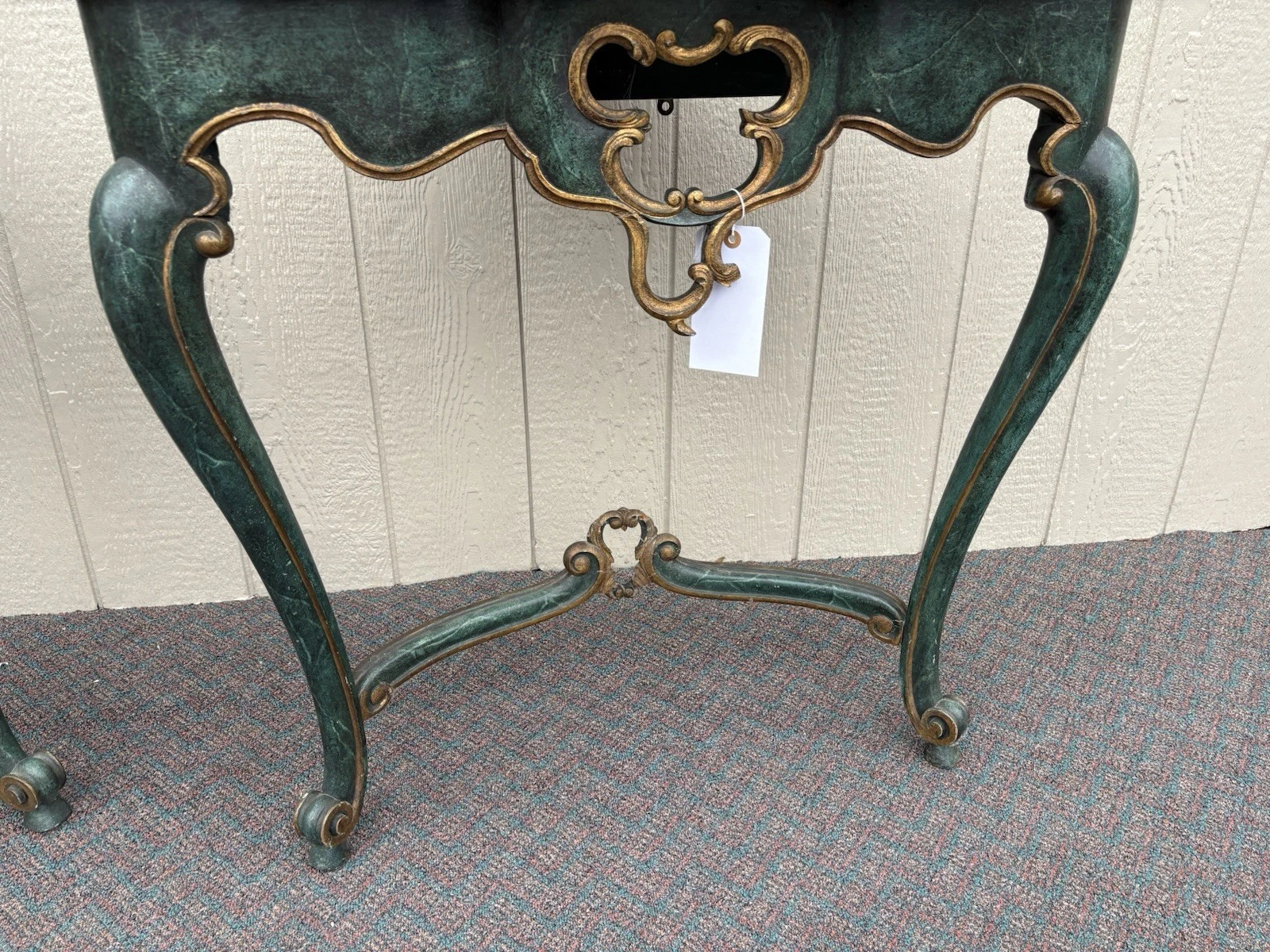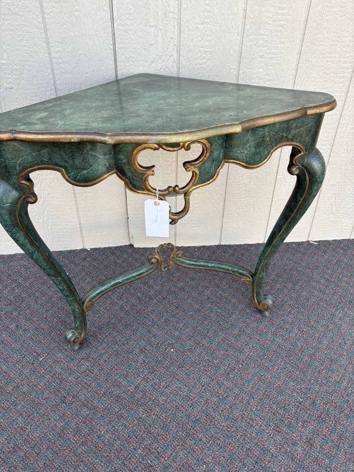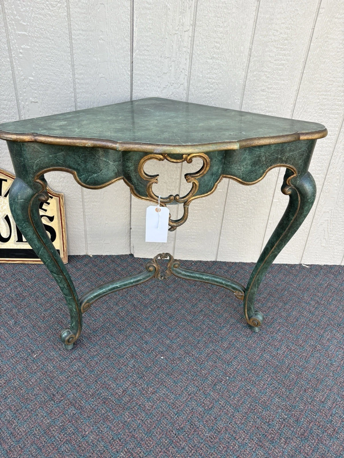 This charming pair of handmade corner tables exudes a delightful mix of character and craftsmanship, perfect for adding a touch of warmth to any room in your home. With their vibrant hand-painted finish and sturdy construction, these tables stand as a testament to skilled craftsmanship from the post-1950 era. Each piece not only serves as a functional surface but also as a unique decorative accent, inviting conversation and admiration from all who encounter them. The subtle wear adds to their vintage charm, making them a cherished addition to your decor.