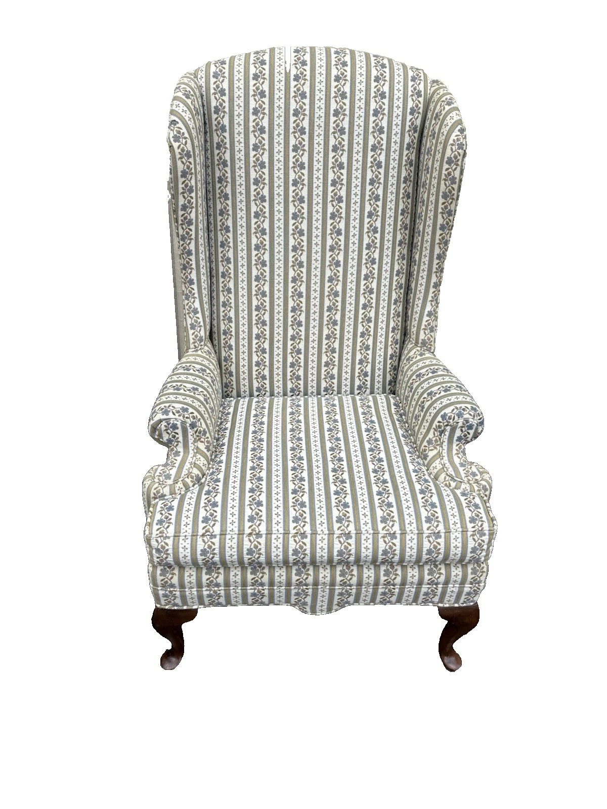 This charming pair of Ethan Allen Queen Anne wing chairs exudes a timeless elegance, embodying the craftsmanship and quality synonymous with the renowned brand. Each chair is lovingly handmade, featuring rich, multicolored upholstery that invites comfort while showcasing classic lines and graceful curves. With their sturdy construction and inviting design, these chairs not only promise a cozy seating experience but also a touch of history that can enhance any living space. Perfect for curling up with a good book or enjoying a quiet conversation, they are a delightful addition to your home.