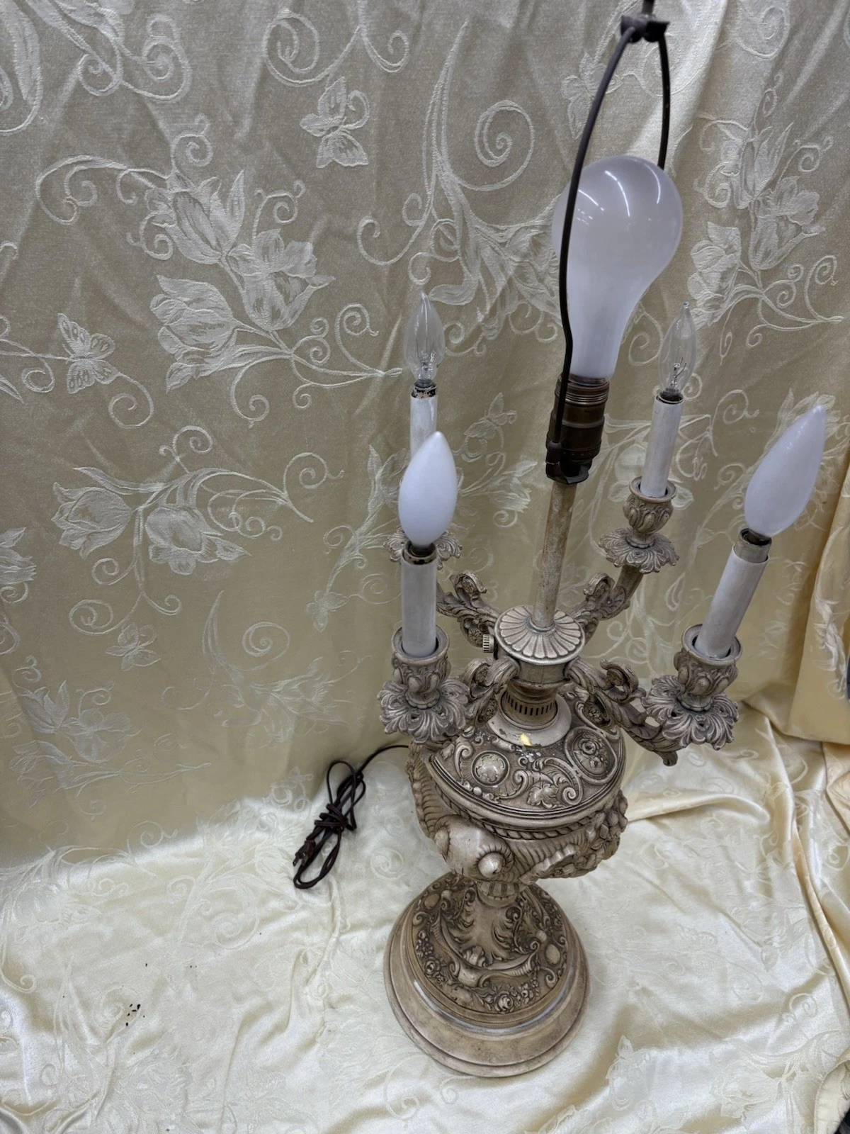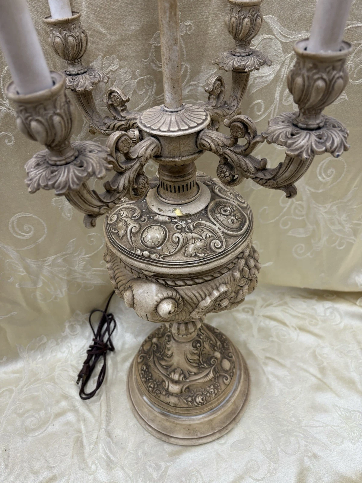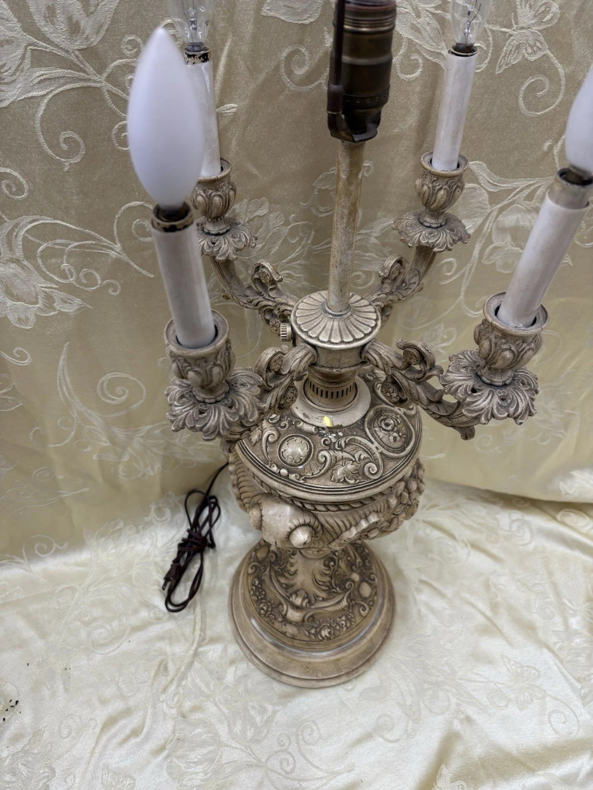 This exquisite pair of mid-century candelabra table lamps captures the essence of the 1950s with their playful design and vibrant multi-color palette. Custom made with a mix of materials, each lamp showcases fine craftsmanship that reflects the era’s artistic spirit and flair for modern decor. The five-light configuration offers a warm, inviting glow, making them perfect for any room in your home. These lamps are not just functional pieces; they are charming conversation starters that bring a touch of vintage elegance to your space.