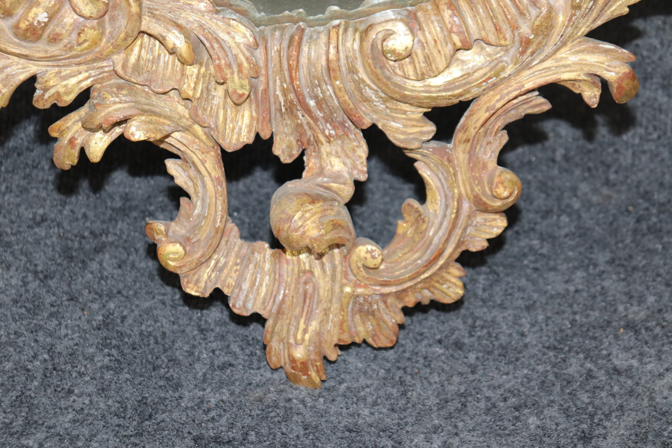 Pair of Antique 19th Century Italian Distressed Gilt Carved Wall Hanging Mirrors Accent Mirrors, Antique Decor