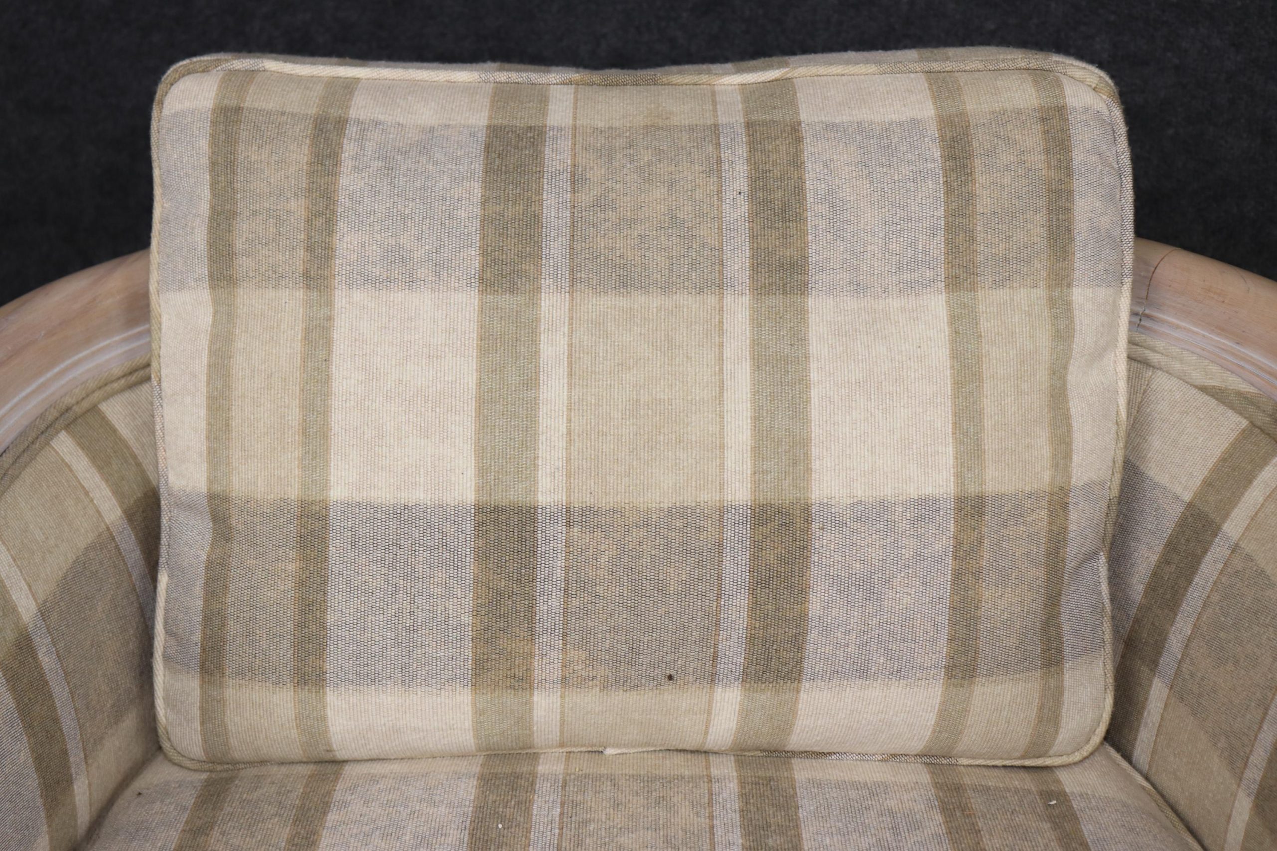 With generously padded seats, cushioned backs, and roomy proportions, these chairs offer both style and comfort—ideal for reading, lounging, or entertaining guests in a living room, study, or cozy library nook. Whether styled beside a roaring fireplace or paired in a formal sitting area, they make a bold yet timeless design statement. The pair is in good vintage condition with the exception of some light surface scratches, Minor finish loss and normal age related wear. As to be expected with items of age and use. The upholstery looks to be in good condition as well