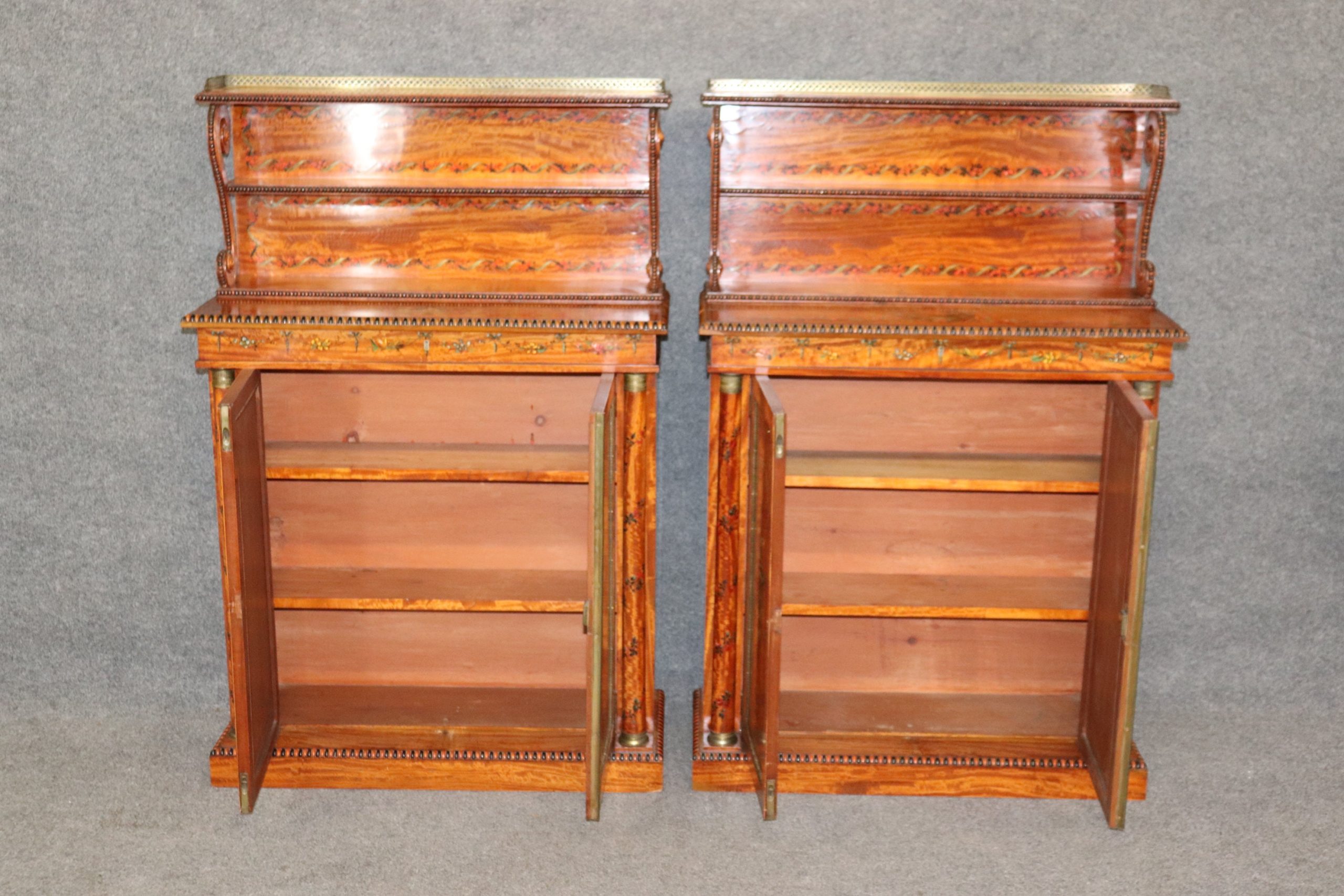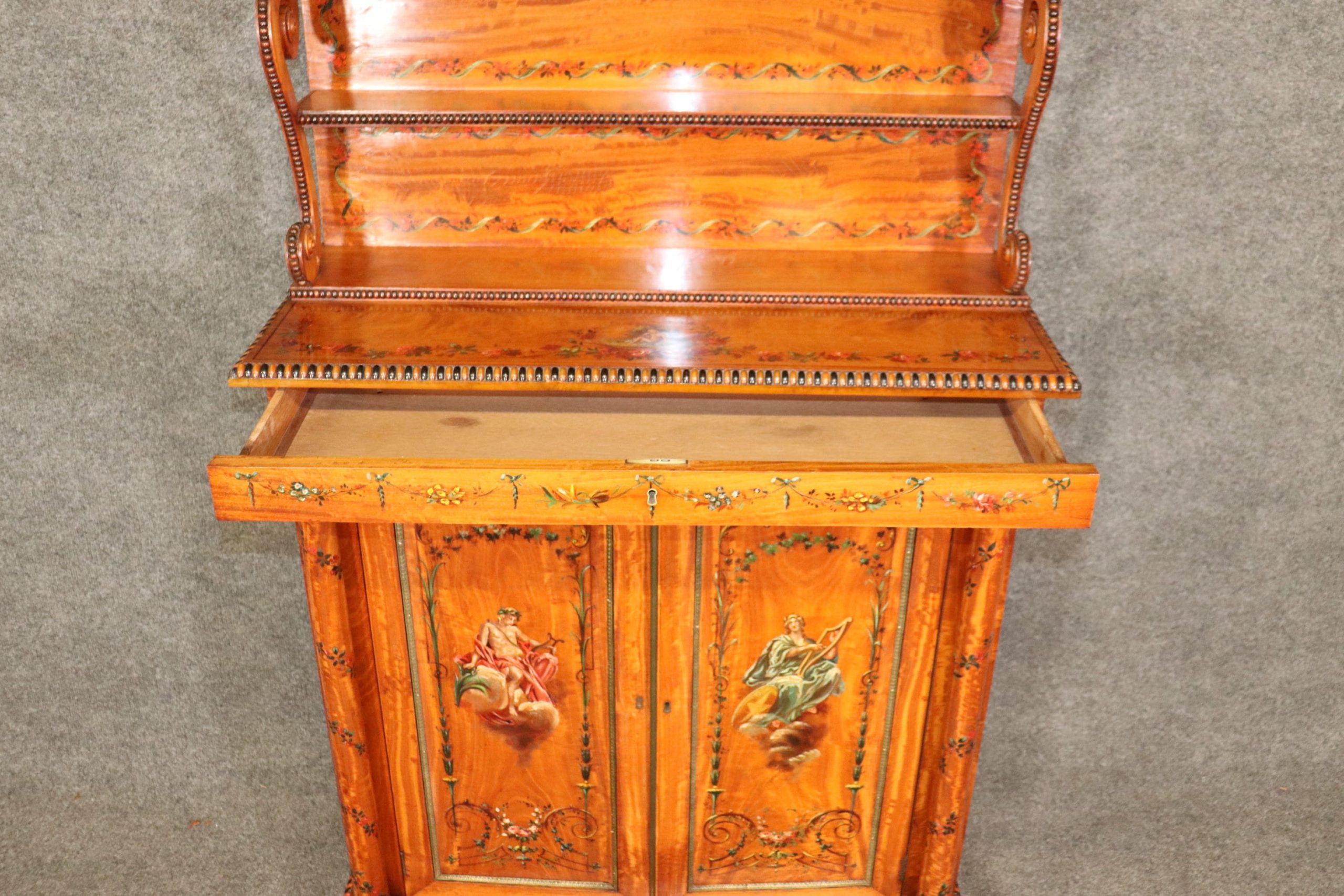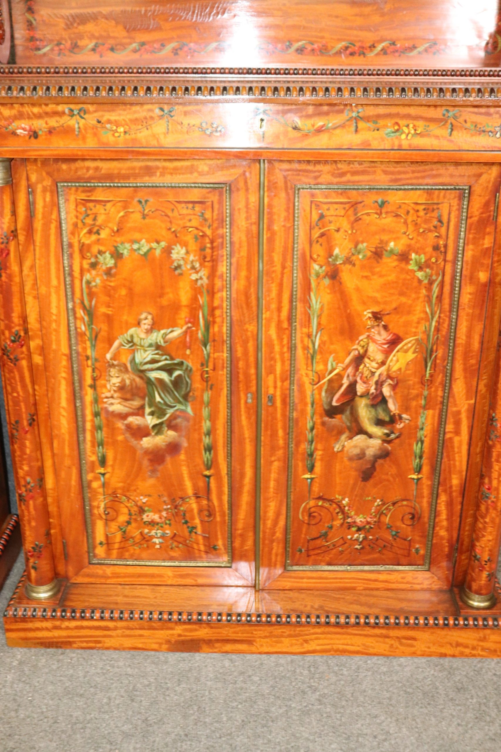 This exceptional pair of 19th century Adams paint decorated cabinets are of the highest quality! If you look closely at the photos provided, you will see the extensive detail in the paint decoration throughout both pieces! These pieces are truly a show stopper and will certainly be a conversation starter at your next gathering! These are perfect for any bedroom, living room, foyer, entryway or office! They give off an overwhelming sense of luxury and glamour and can be paired with a variety of other styles you may already have in your home or place of choosing! The cabinets are in good vintage condition with minor surface scratches and finish loss to the legs, but no significant imperfections. As to be expected with antiques of this age. This pair is a once in a lifetime opportunity to own a pair of museum quality Adams style cabinets!