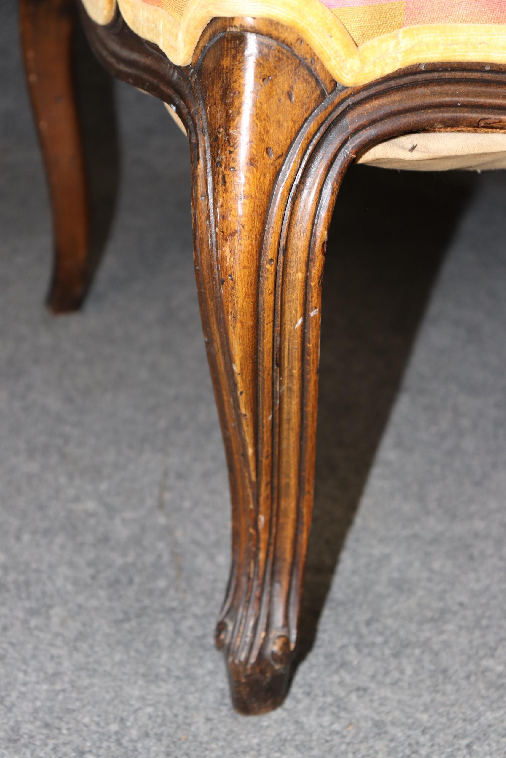 The pair is in good vintage condition with the exception of some light surface scratches, Minor finish loss and normal age related wear. As to be expected with items of age and use. The upholstery also has staining.