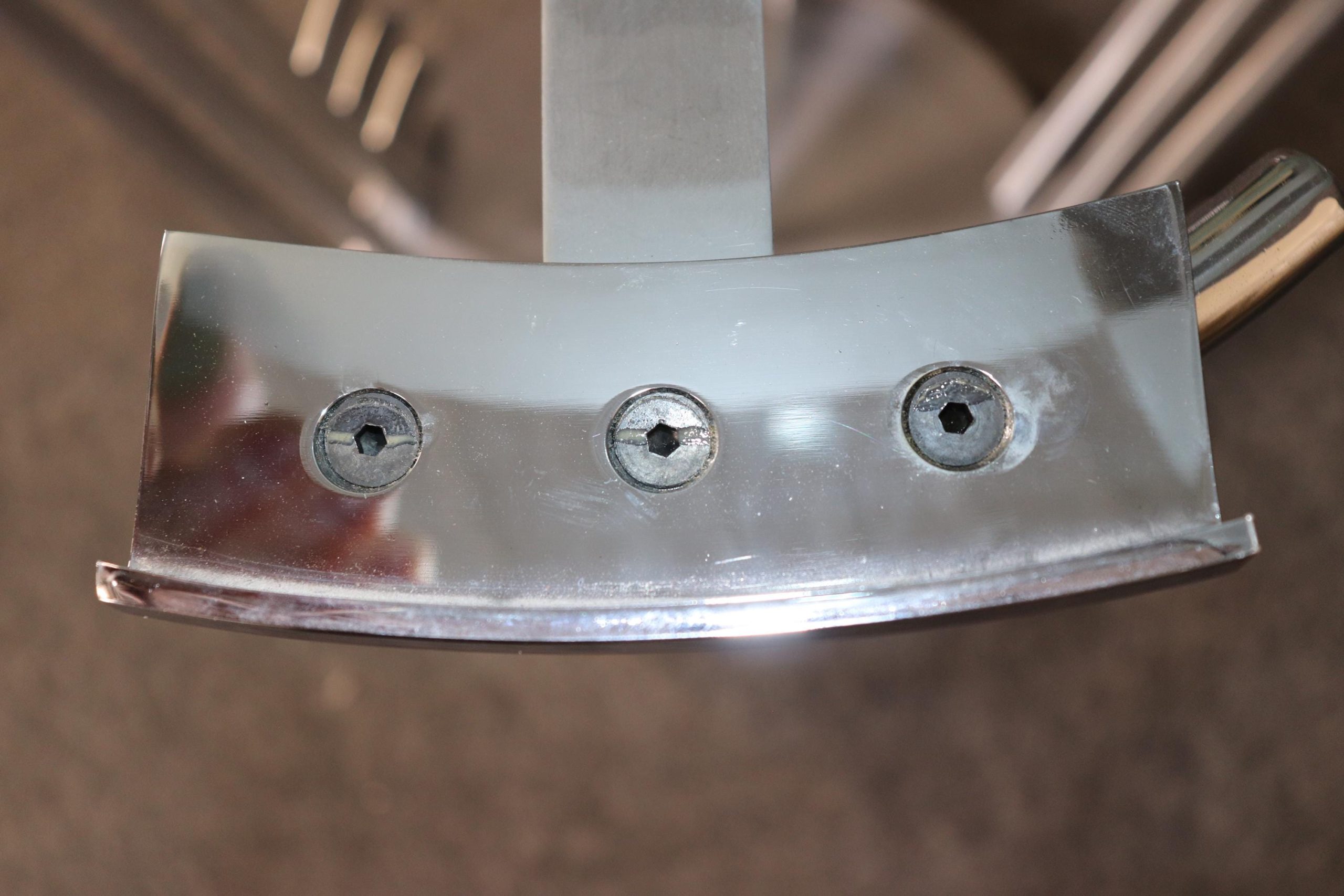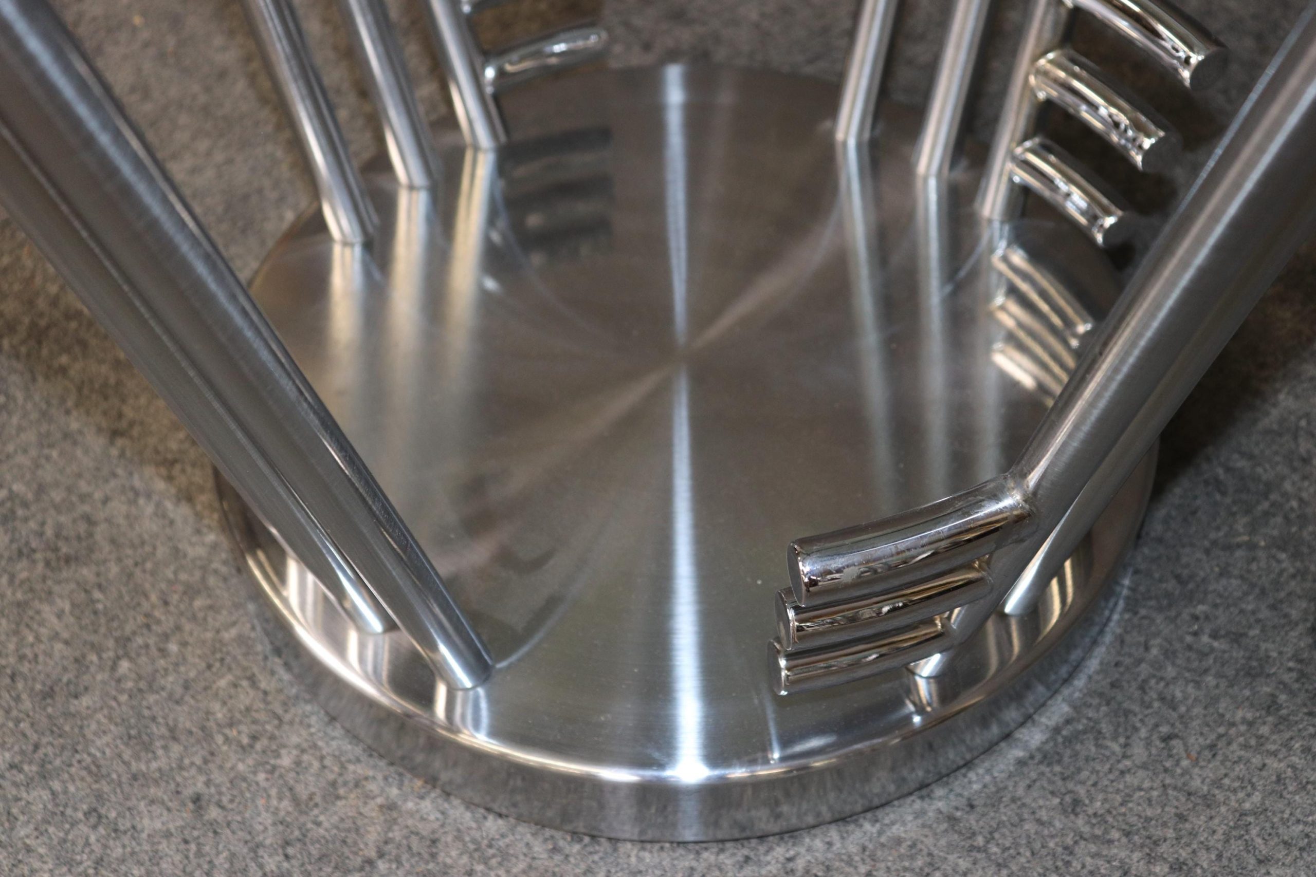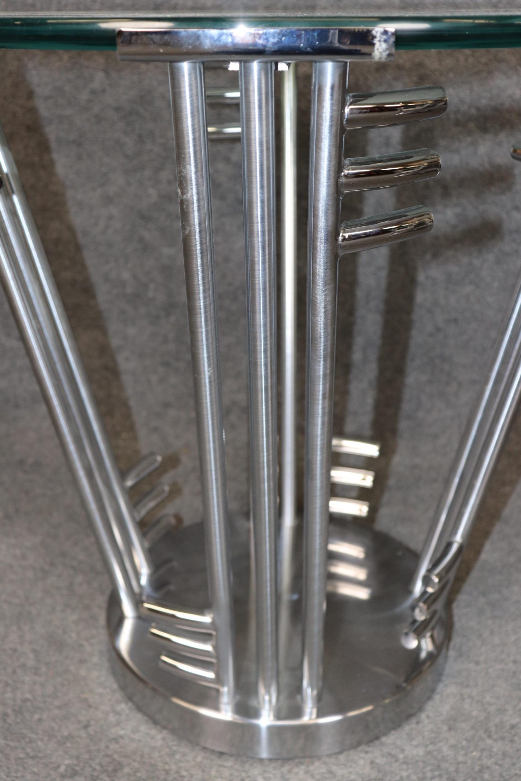 This pair of post modern contemporary etched glass and chrome end tables are made of the highest quality! The nice thing about these end tables are the fact that they bring a contemporary look into your home or place of choosing and also give off a nice sense of minimalism and character! Antique furniture and vintage pieces have stood the test of time and this bench is no exception! With their quality materials and great craftsmanship, these tables are bound to last you and your family for many years to come! The tables are in good vintage condition with light surface scratches to the glass tops as should be expected with items of this age. Otherwise good condition.