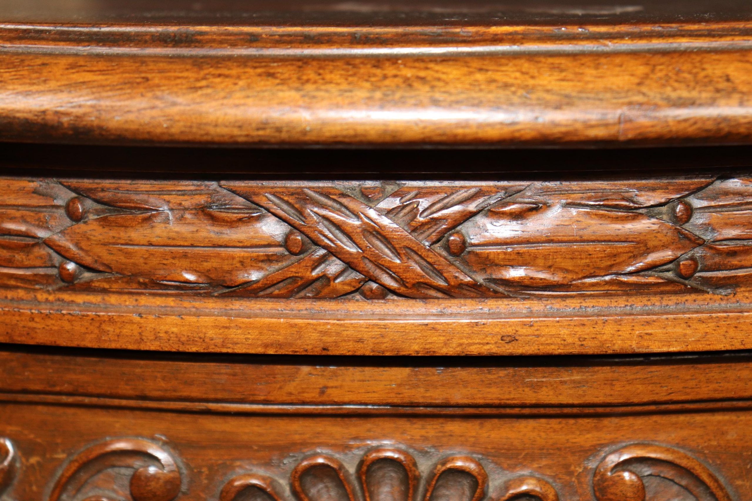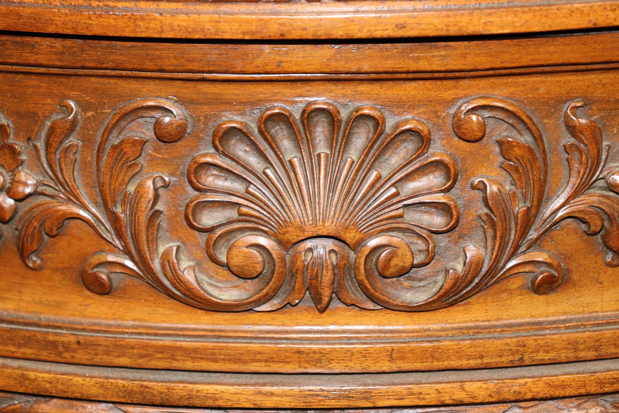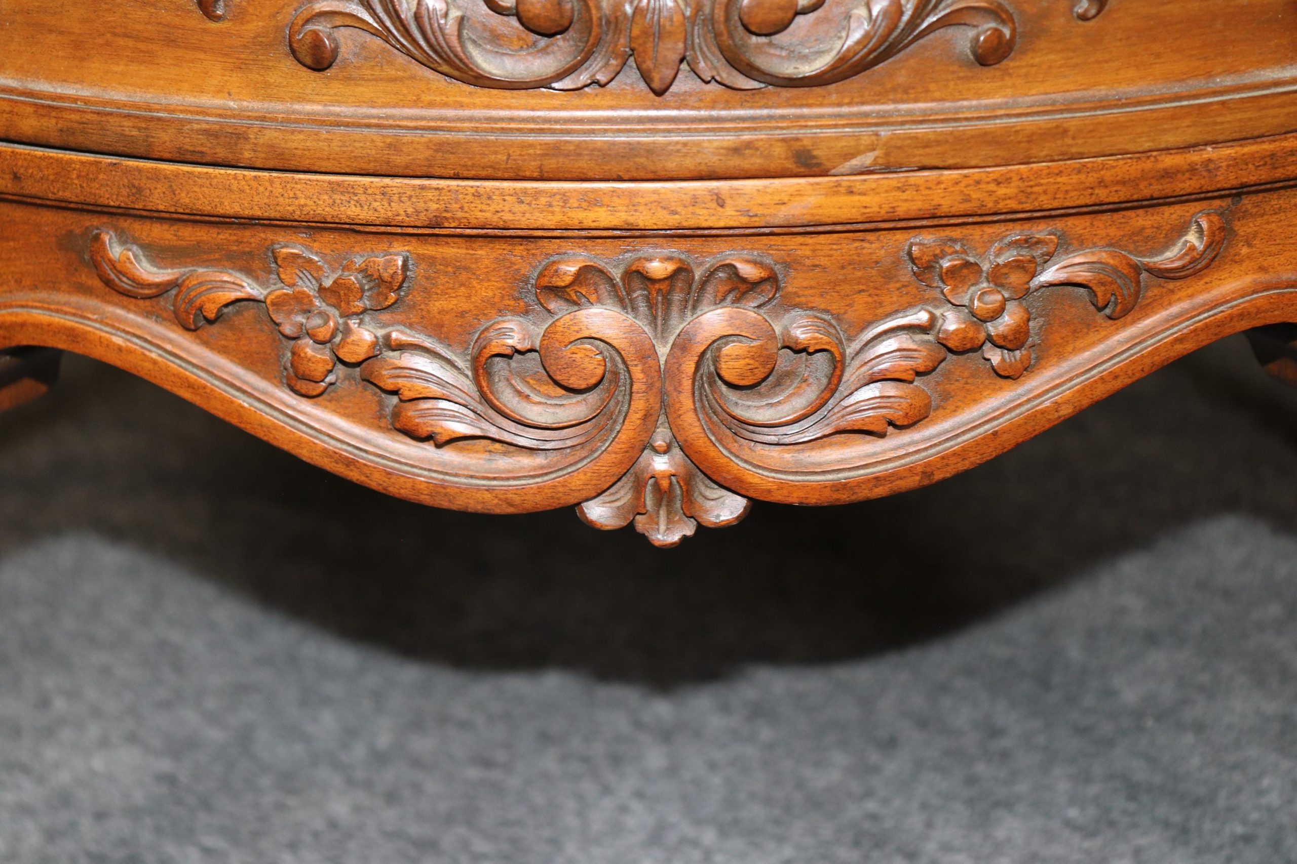 This 1960s vintage pair of Georgian style carved demilune nightstands / end tables is perfect for you and your home! One nice thing about this pair is its ability to not only be used in a variety of areas such as your living room, bedroom, office, or entryway as end tables but they could also be used as nightstands. The nightstands are equipped with 2 drawers, perfect for storing your personal belongings. This pair is bound to bring a sense of sophistication and character into your home or place choosing and will certainly be a topic of conversation at your next gathering or event! Antique furniture and vintage pieces have stood the test of time and this pair is no exception! With their quality materials and great craftsmanship this pair is bound to last you and your family for many years to come! The pair is in good antique/vintage condition with the exception of some light surface scratches and minor finish loss, but otherwise really good condition!