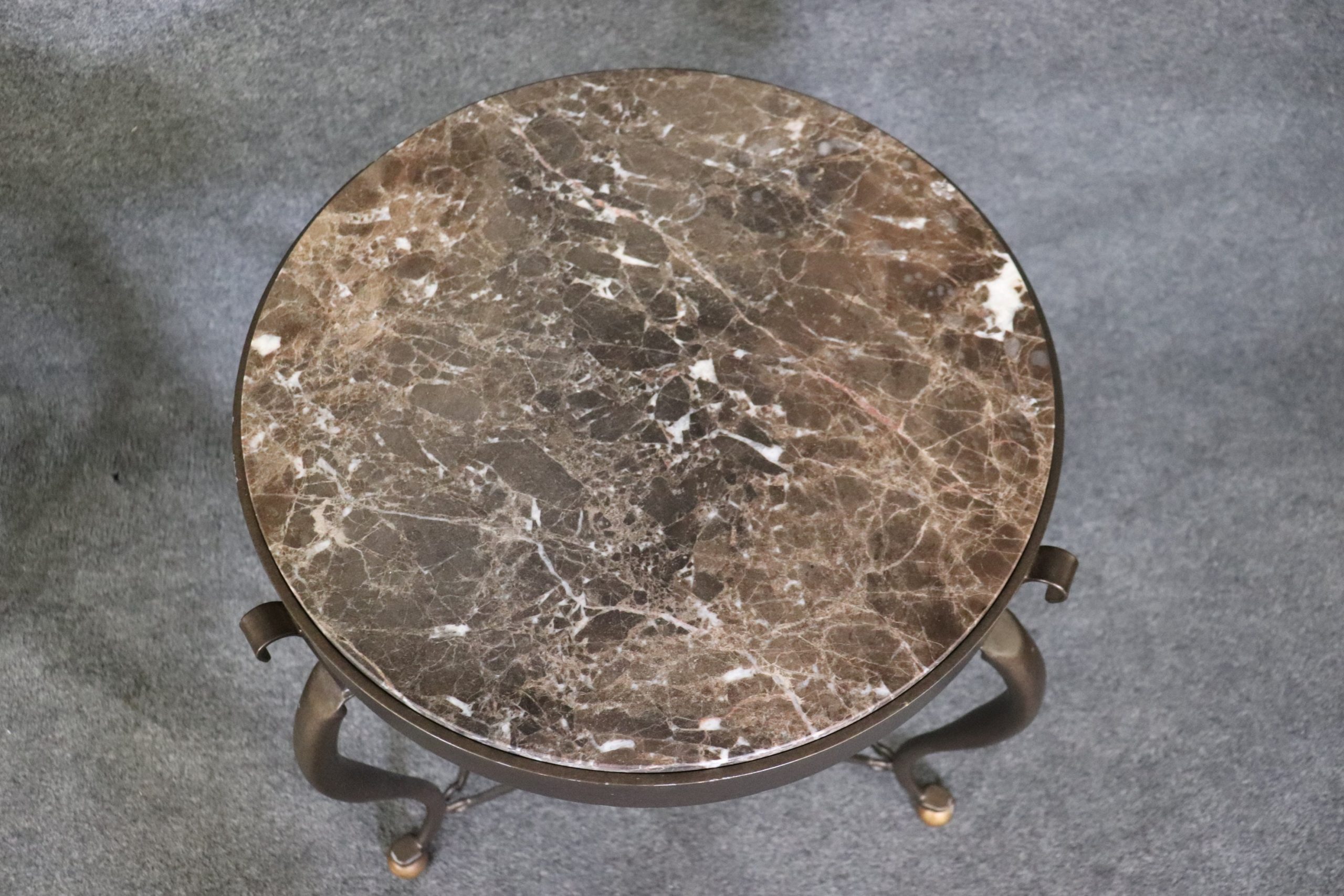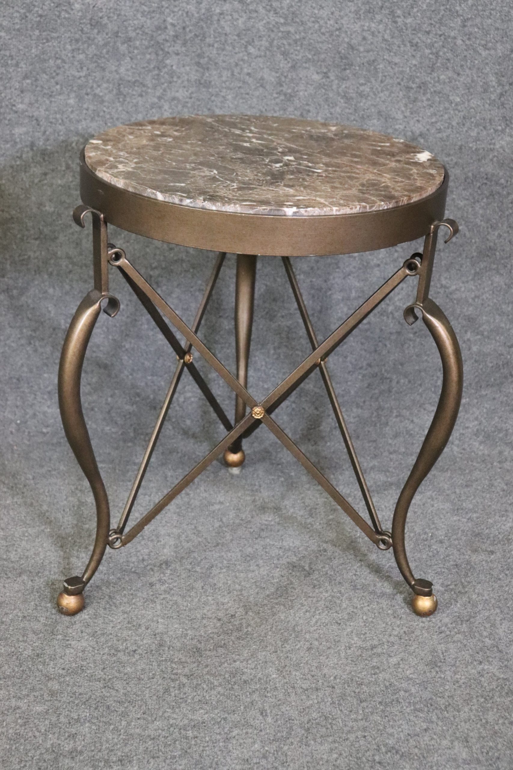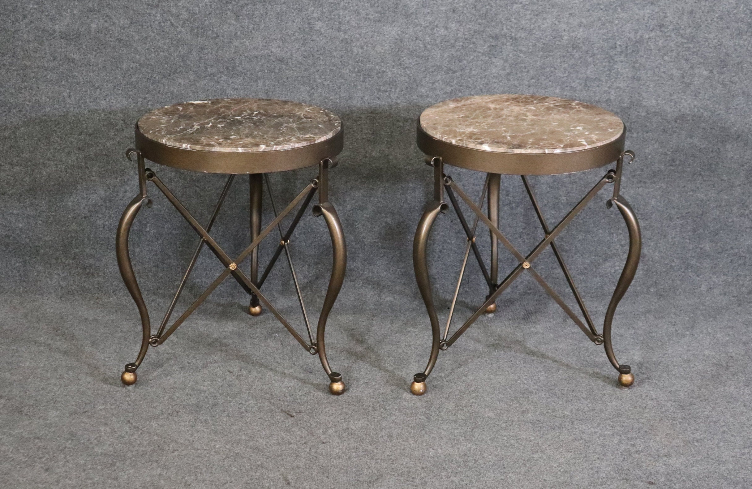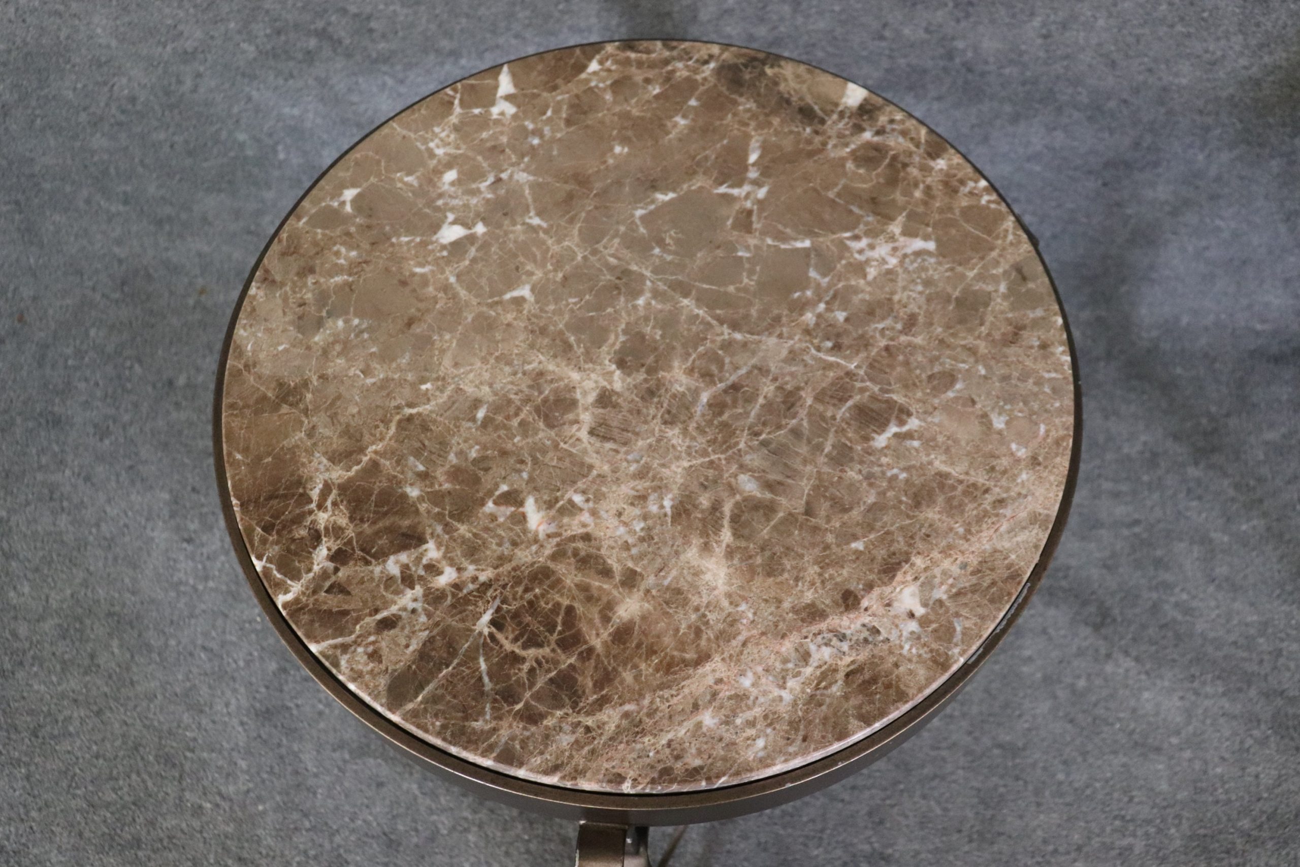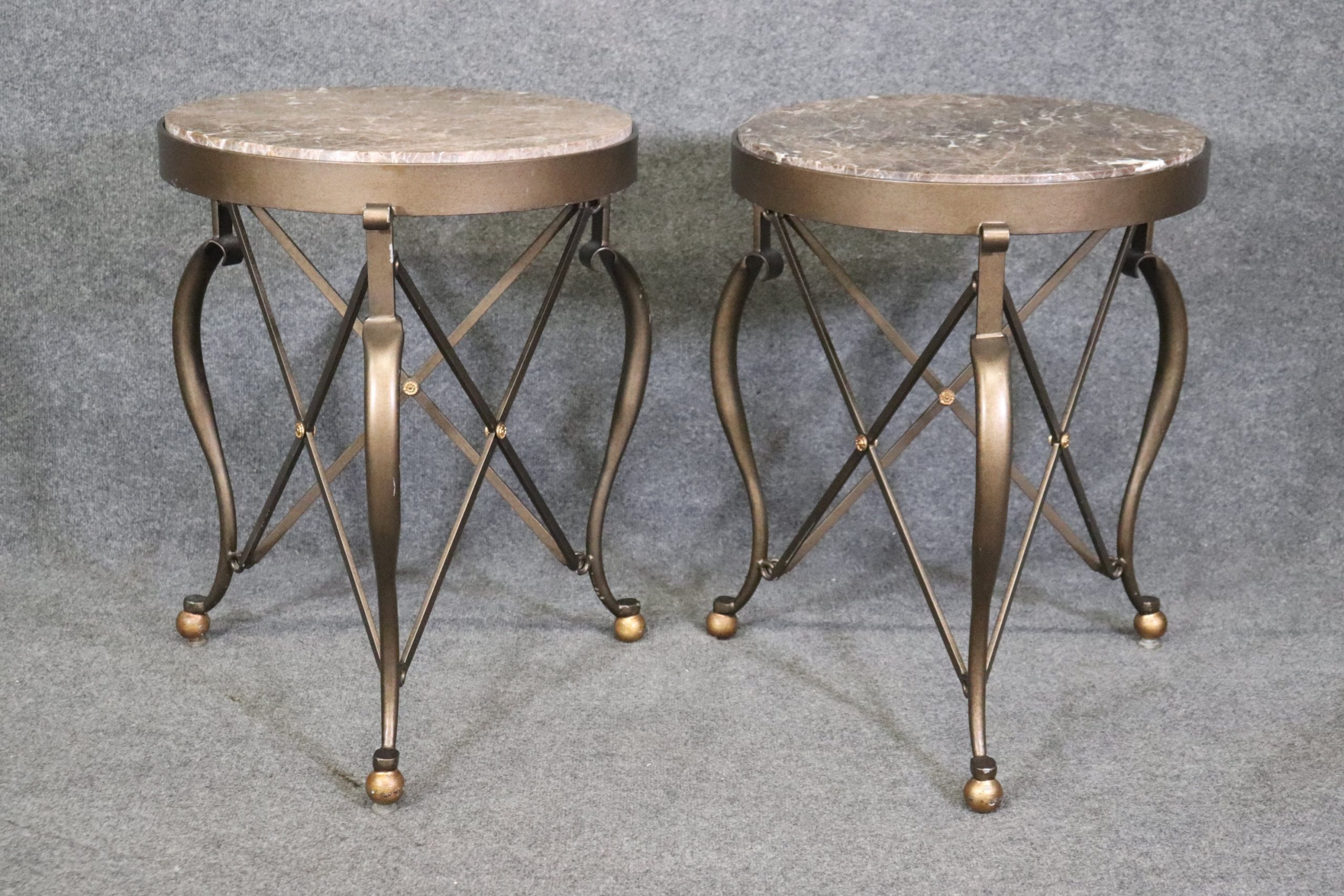 Pair of Vintage Modern Restoration Hardware Style Marble Top End Tables Furniture, Modern Decor