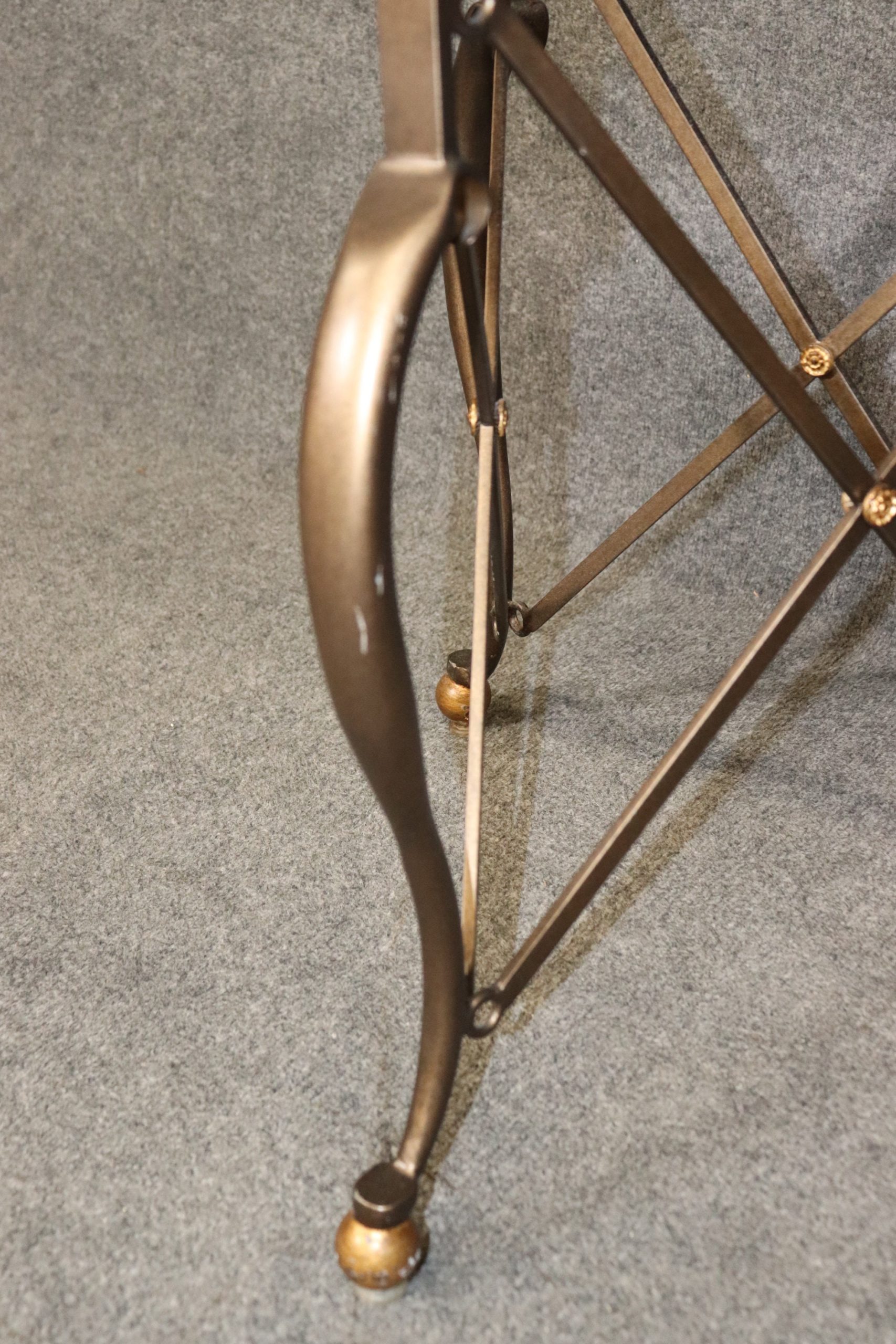 This pair of vintage modern Restoration Hardware style marble top end tables has a minimalistic design but packs a big punch! This pair of end tables is made of the highest quality and are perfect for you and your home or place of choosing. This pair is perfect to be used as a pair of end tables or side tables for your living room, or they can be used on each opposing side of an entry way as mini accent tables and can also be used as night stands if you’d like. A really nice quality about these tables is their ability to be paired with a variety of other styles you may already have in your home and will certainly be a conversation starter at your next gathering! The pair is in good vintage condition with light surface scratches and some minor oxidation to the base as to be expected with items of age but otherwise good condition.