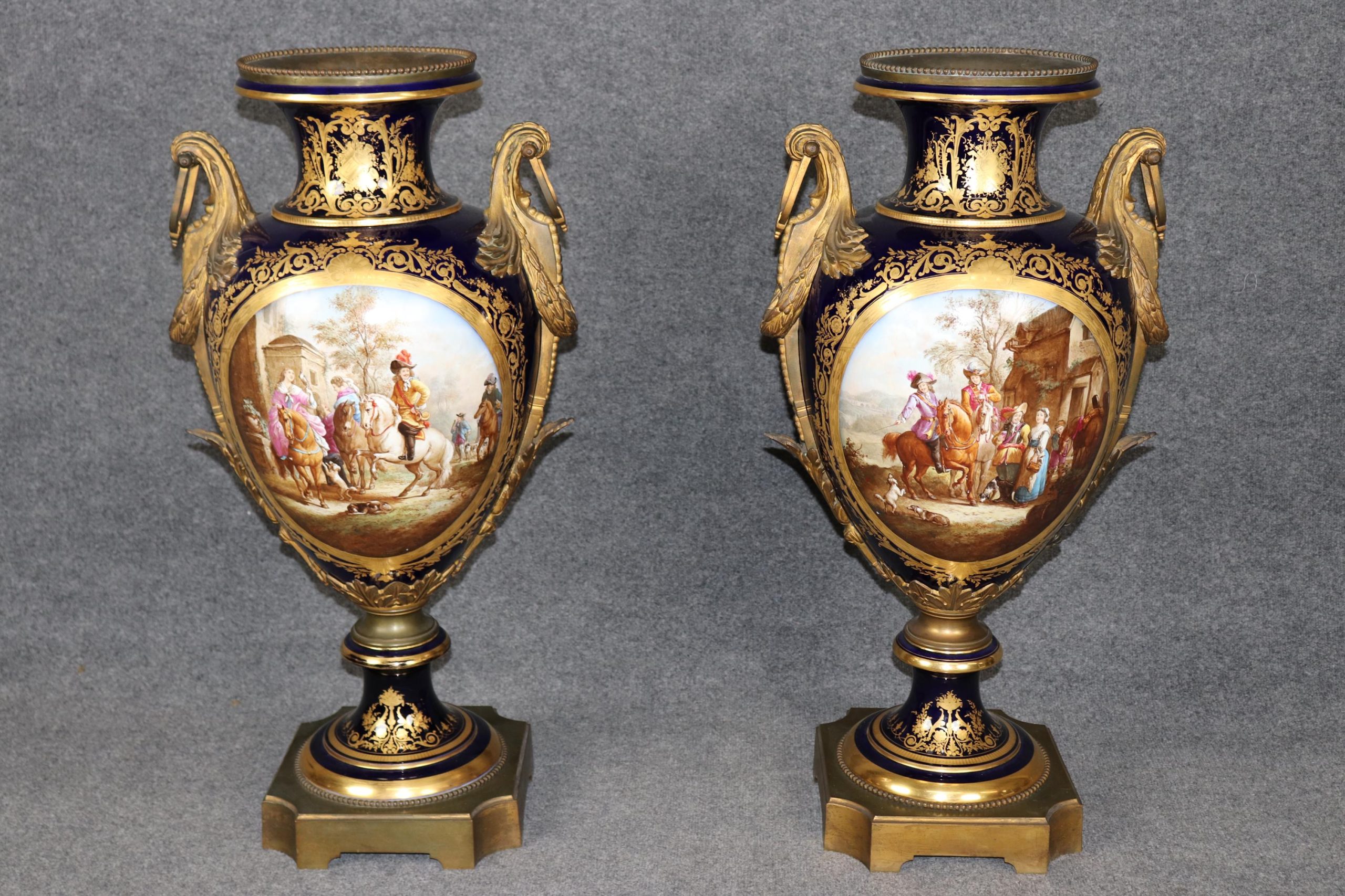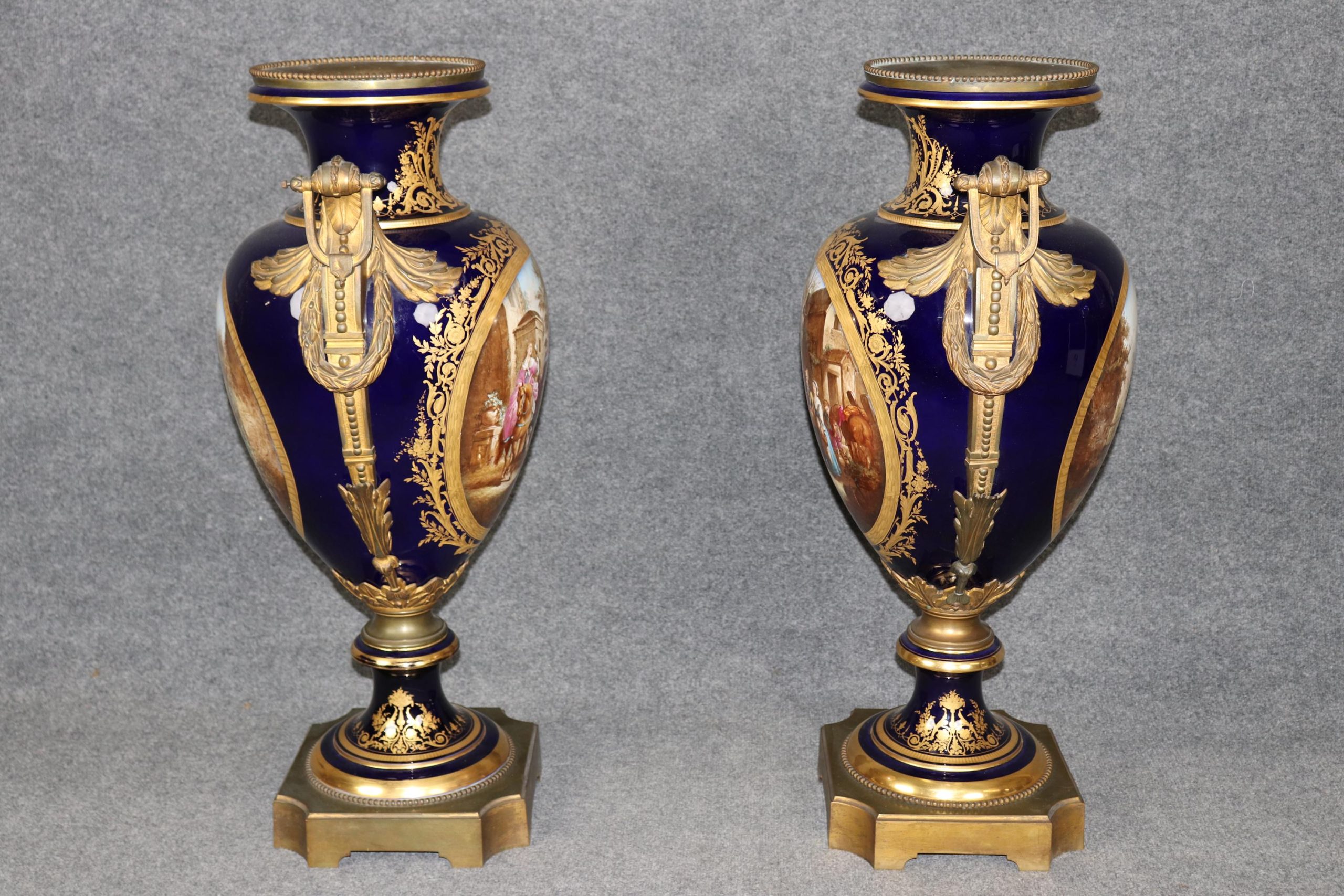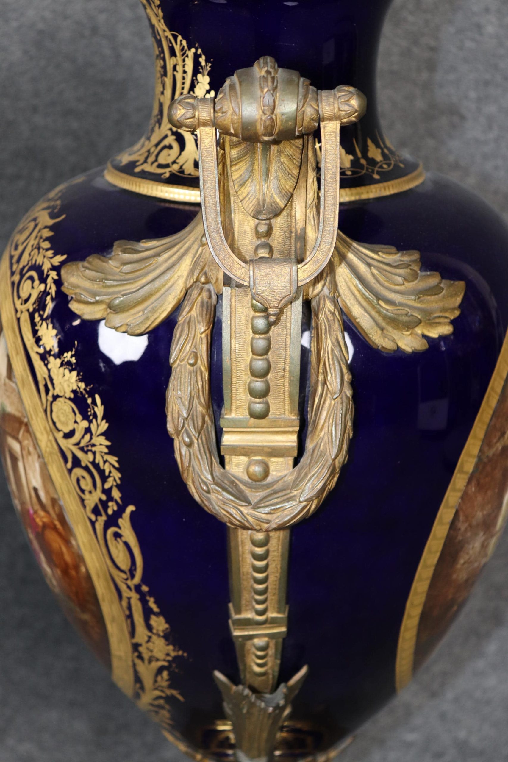 Palatial Pair of Cobalt Blue Vases Attributed to Sevres, Antique Furniture