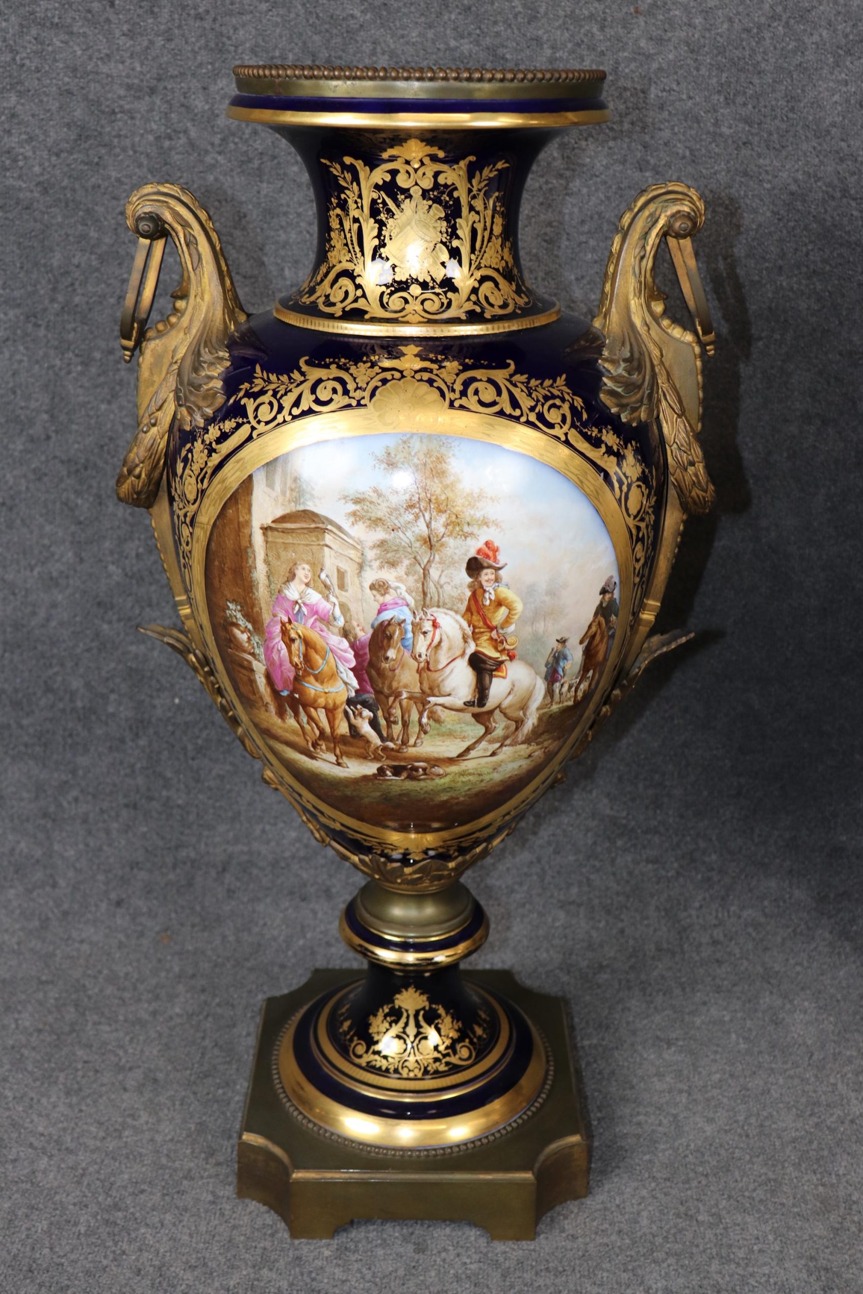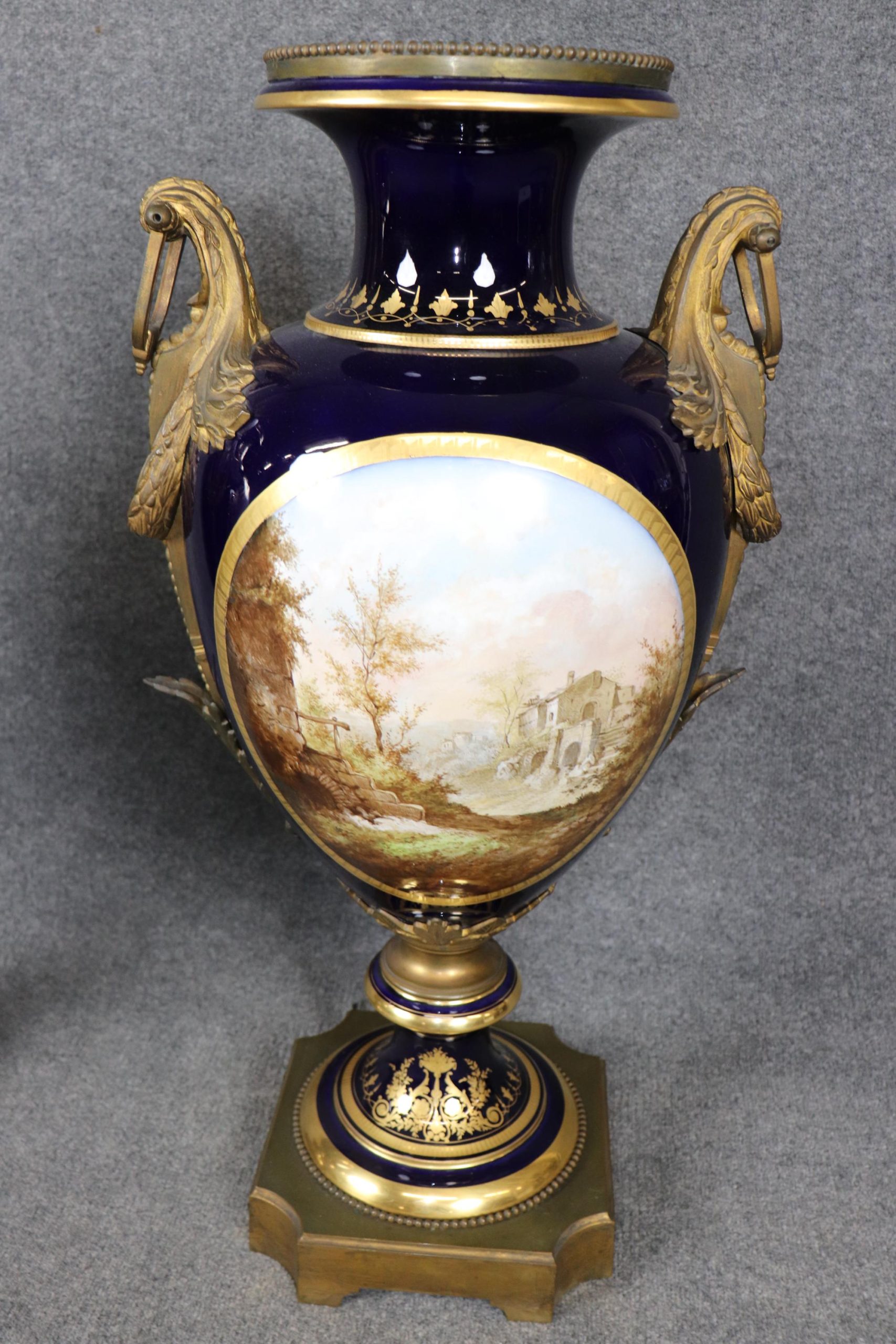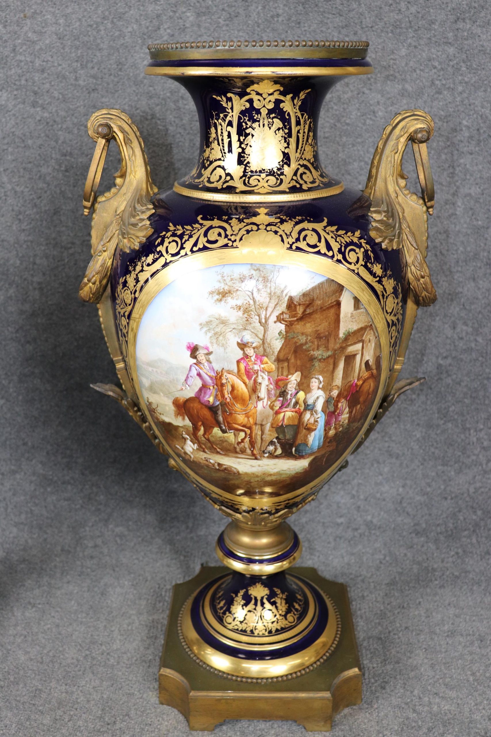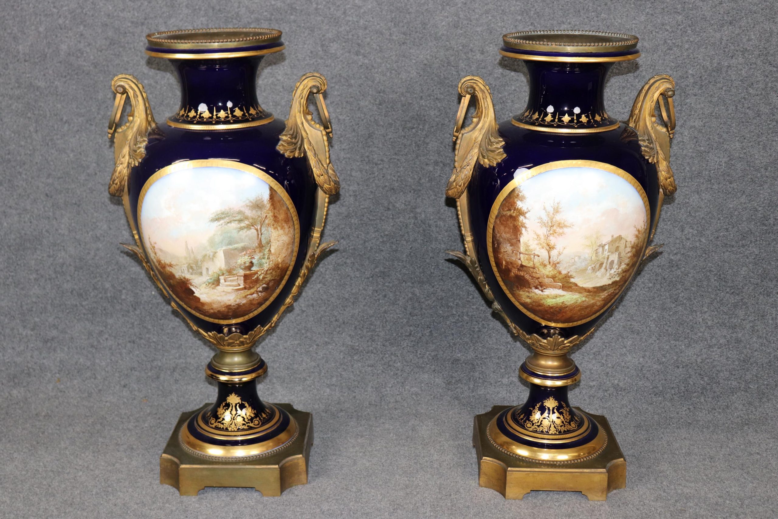 Palatial Pair of Cobalt Blue Vases Attributed to Sevres, Antique Furniture